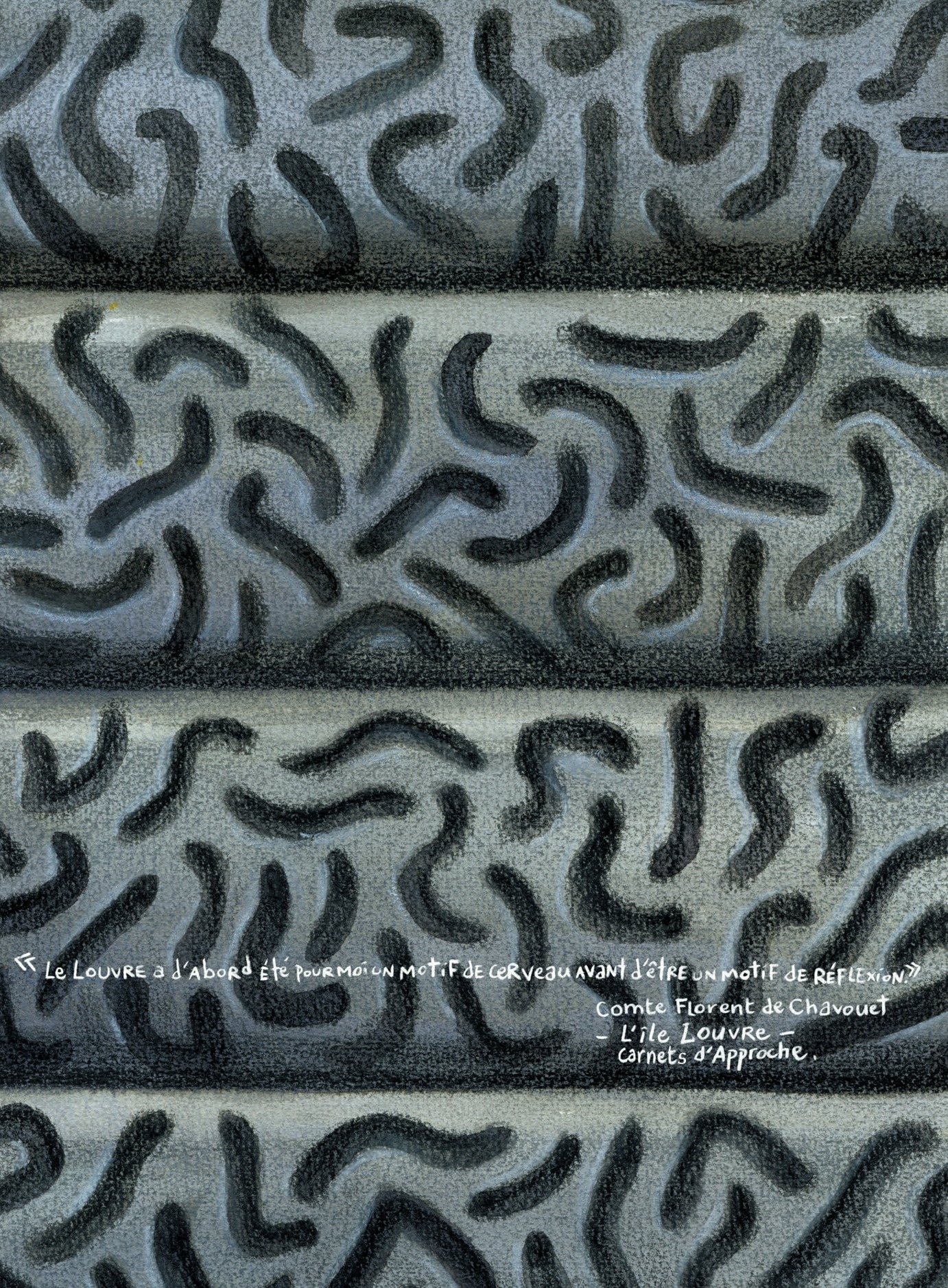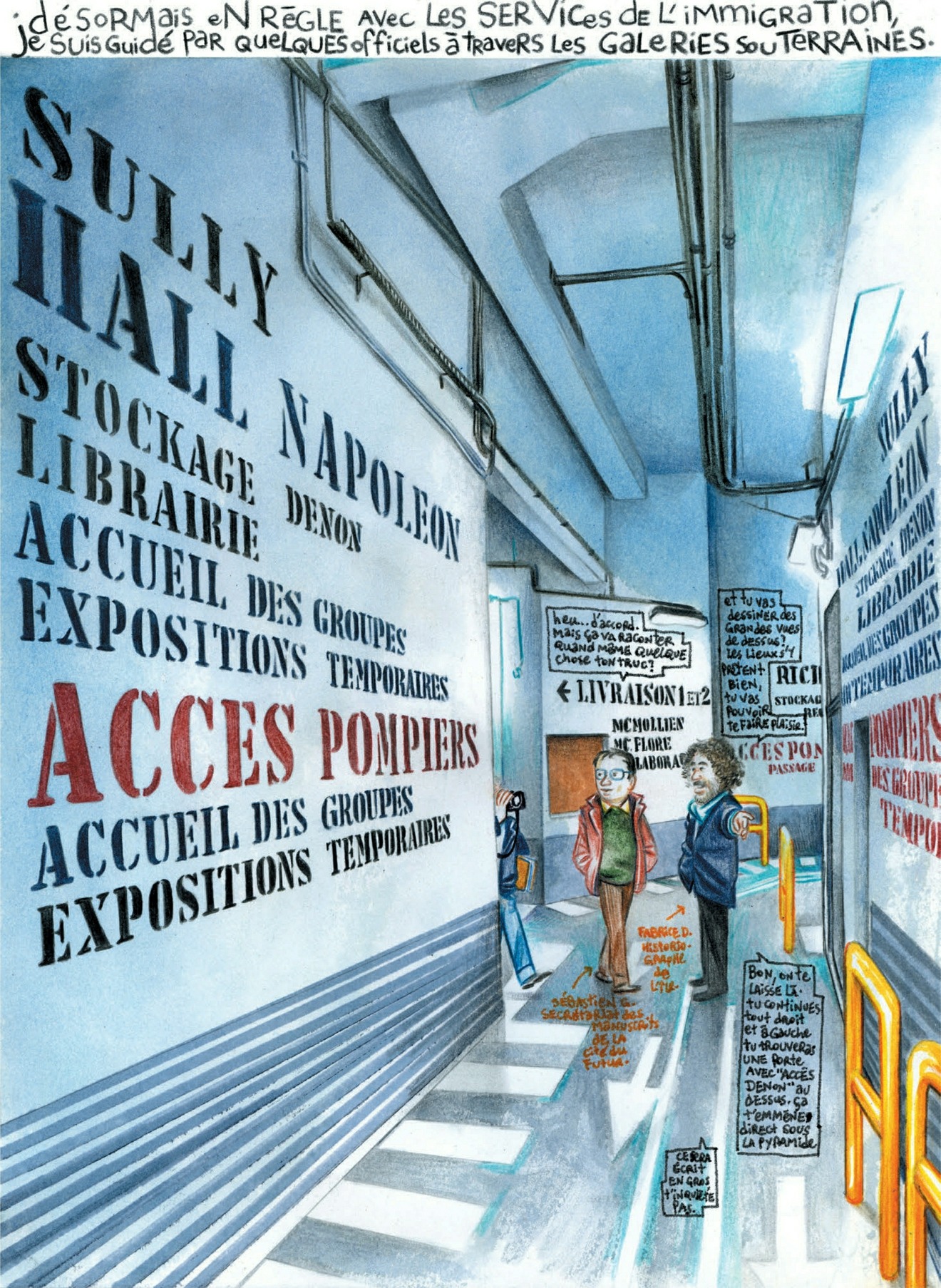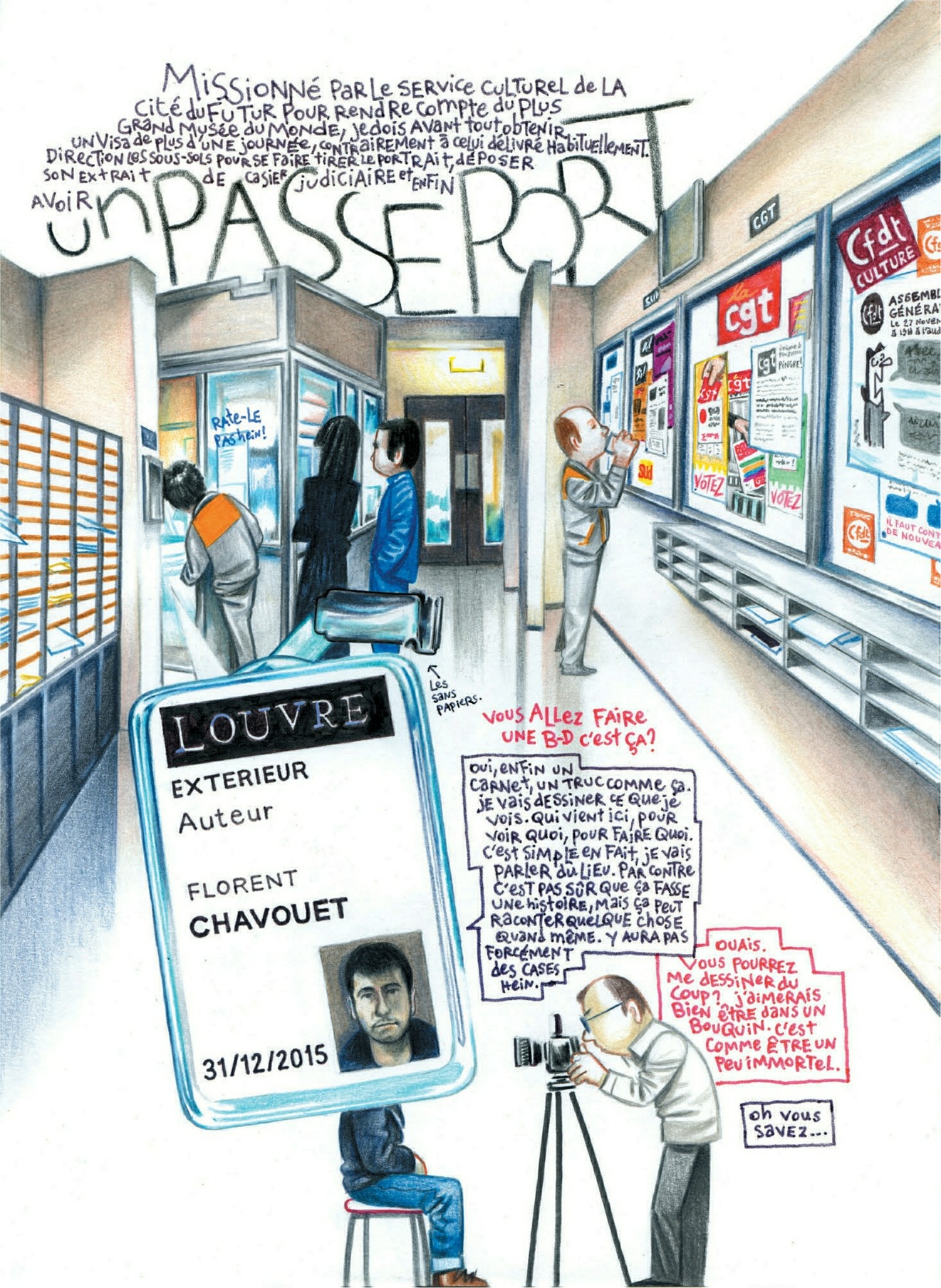 Le musée du Louvre est devenu île, sous les crayons de couleurs de Florent Chavouet. Muni d'un pass délivré par les autorités du musée, il se rend sur ce territoire insulaire à la rencontre de ses habitants (ceux qui travaillent dans cette institution), de ses visiteurs (les touristes du monde entier) et de ses paysages (l'ensemble des salles et des oeuvres exposées). Carnet de voyage en main, l'auteur s'attache à nous décrire cette île-musée et ses traditions. Au fur et à mesure de ses déambulations, il nous plonge ainsi dans la vie quotidienne du Louvre, restituant avec un sens du détail digne des plus grands enlumineurs !