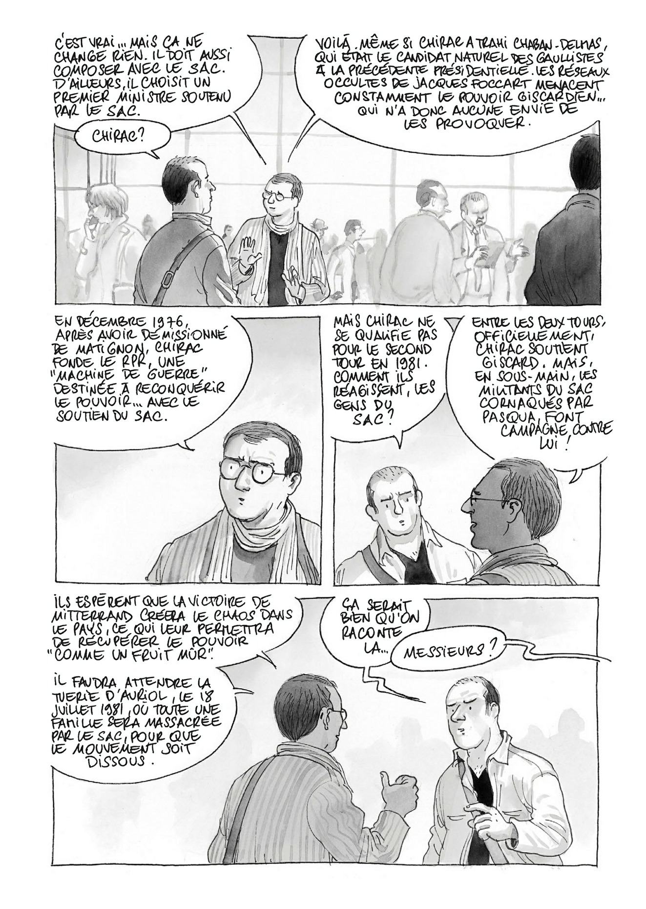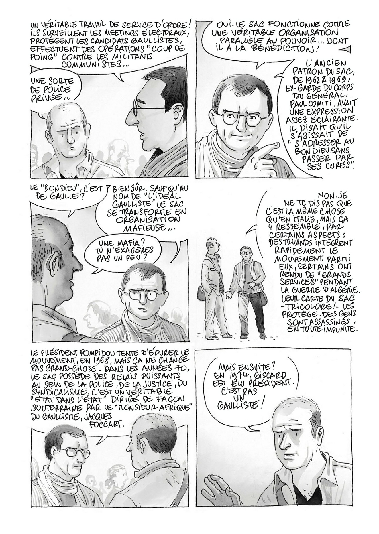 Assassinats de magistrats, de journalistes, de syndicalistes, et même de ministres : il n’y a pas que l’Italie qui a connu des "années de plomb" dans les années 70. La France aussi ! En partant à la rencontre des témoins de cette époque, en nous faisant visiter les archives enfin ouvertes sur le SAC, la milice du parti gaulliste, Étienne Davodeau et Benoît Collombat nous emmènent là où la vie politique d’une grande démocratie s’est parfois égarée...