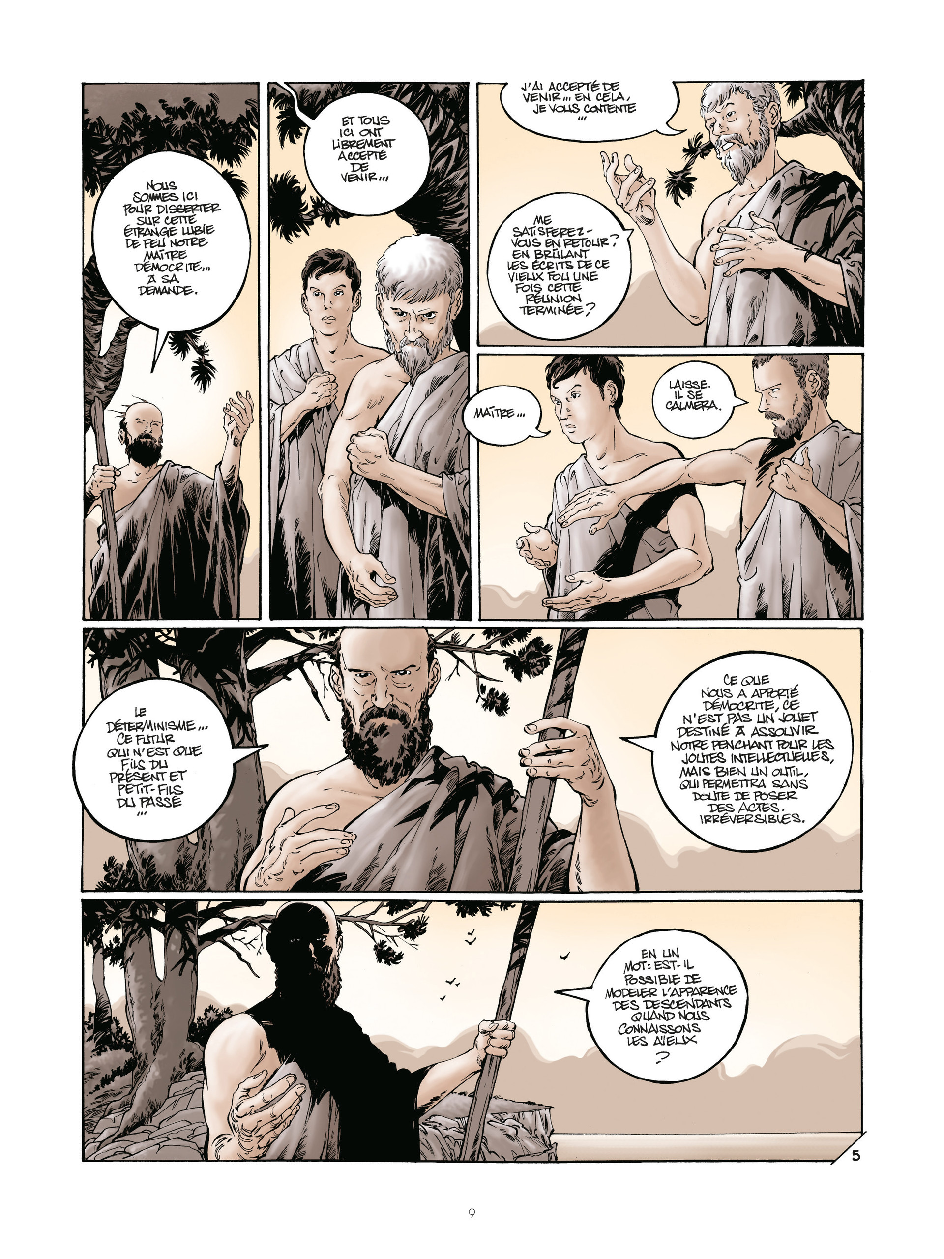 Grèce, 1934. Un jeune archéologue allemand découvre des manuscrits anciens au fond d'une grotte. Ils ont été rédigés par de grands philosophes tels que Platon ou Aristote, sur le thème du déterminisme. Par jeu, ces penseurs ont tenté de prévoir l'avenir du monde en se basant sur les éléments qu'ils en connaissaient. Et ils semblent avoir réussi. Que faire quand on a dans les mains toutes les clés pour faire perdre ou gagner une terrible guerre à venir ? Peut-on rester un patriote dans un pays dirigé par les nazis ?
