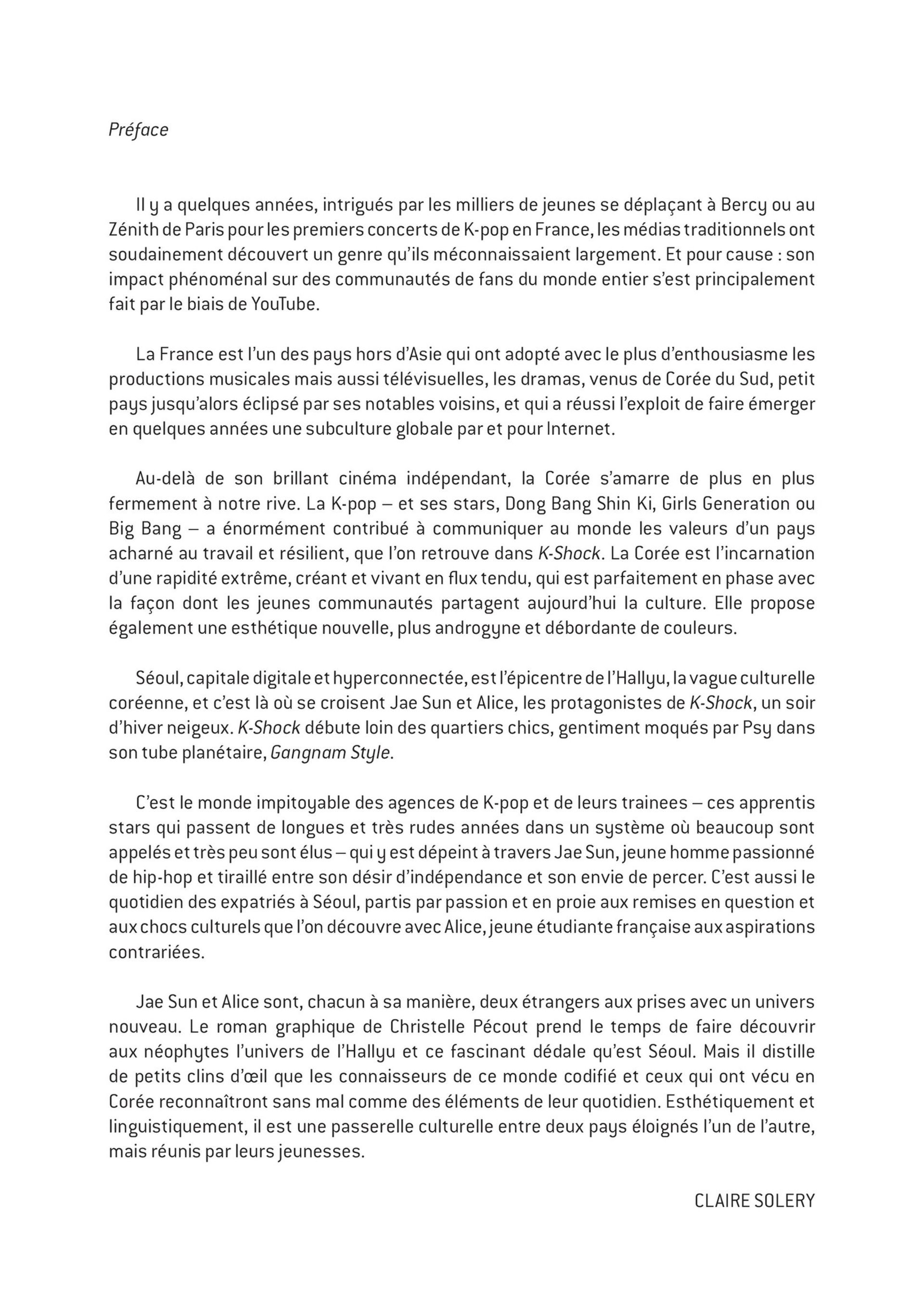 Séoul, de nos jours. Alice, une jeune étudiante française, est venue vivre ici par passion pour la K-Pop – la fameuse musique pop sud-coréenne qui fait fureur sur internet. Un peu désabusée, elle se rend vite compte que ce pays et sa culture ne se livrent pas facilement. Elle fréquente surtout des expatriés, comme elle, ou des anglophones. Mais sa rencontre avec Jae Sun, jeune coréen issu d’un milieu populaire, rappeur amateur et sur le point de devenir le prochain idol d’un groupe de K-Pop, pourrait changer la donne…