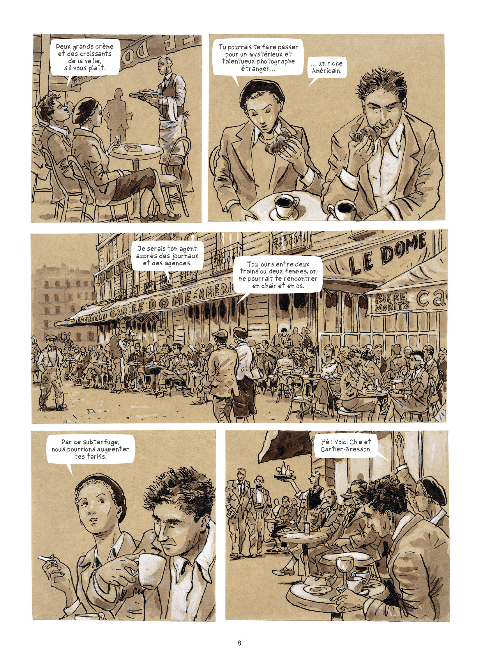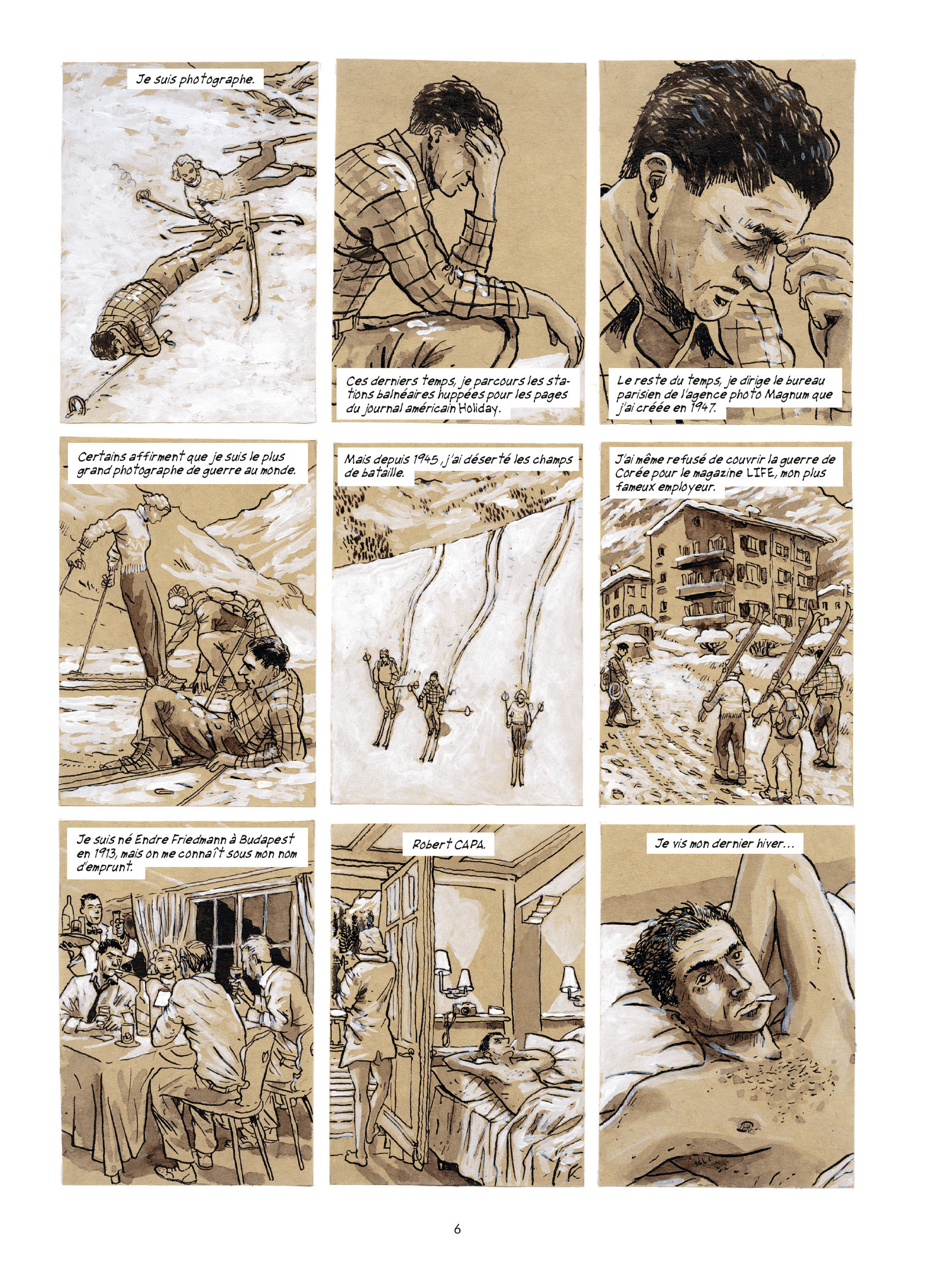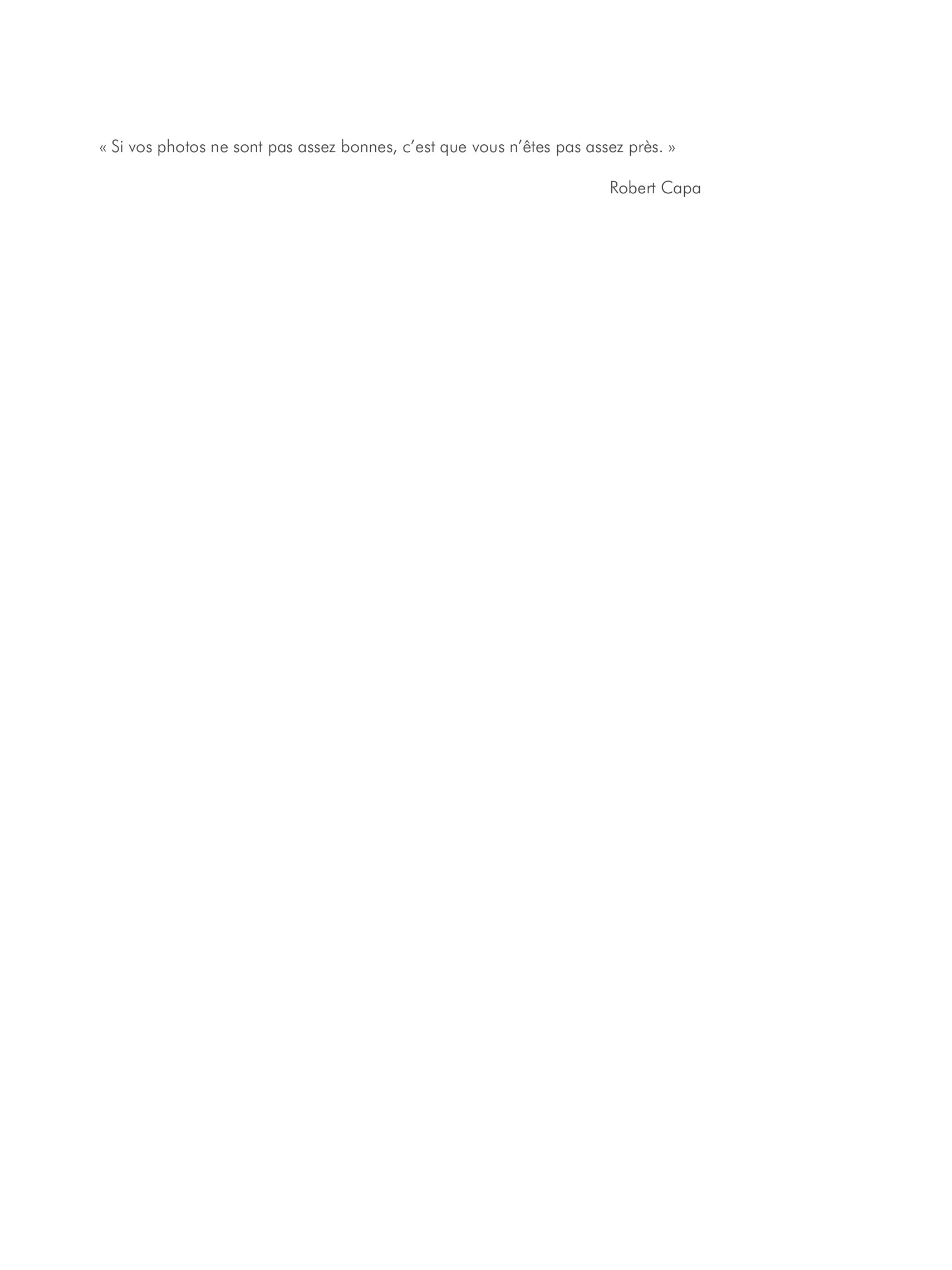 Le plus célèbre des reporters de guerre, auteur polémiqué de LA photo de la guerre d'Espagne, l'un des seuls photographes à avoir couvert le débarquement de Normandie, co-fondateur, avec Cartier-Bresson, de l'agence Magnum, nous est livré ici dans toute sa complexité. Un homme extrême, toujours sur le ! l du rasoir, recherchant le danger et la mort, hanté toute sa vie durant par son unique amour (malgré de nombreuses maîtresses) disparu lors de la guerre d'Espagne. Il n'aura de cesse de braver tous les dangers pour la rejoindre dans une mort en première ligne.