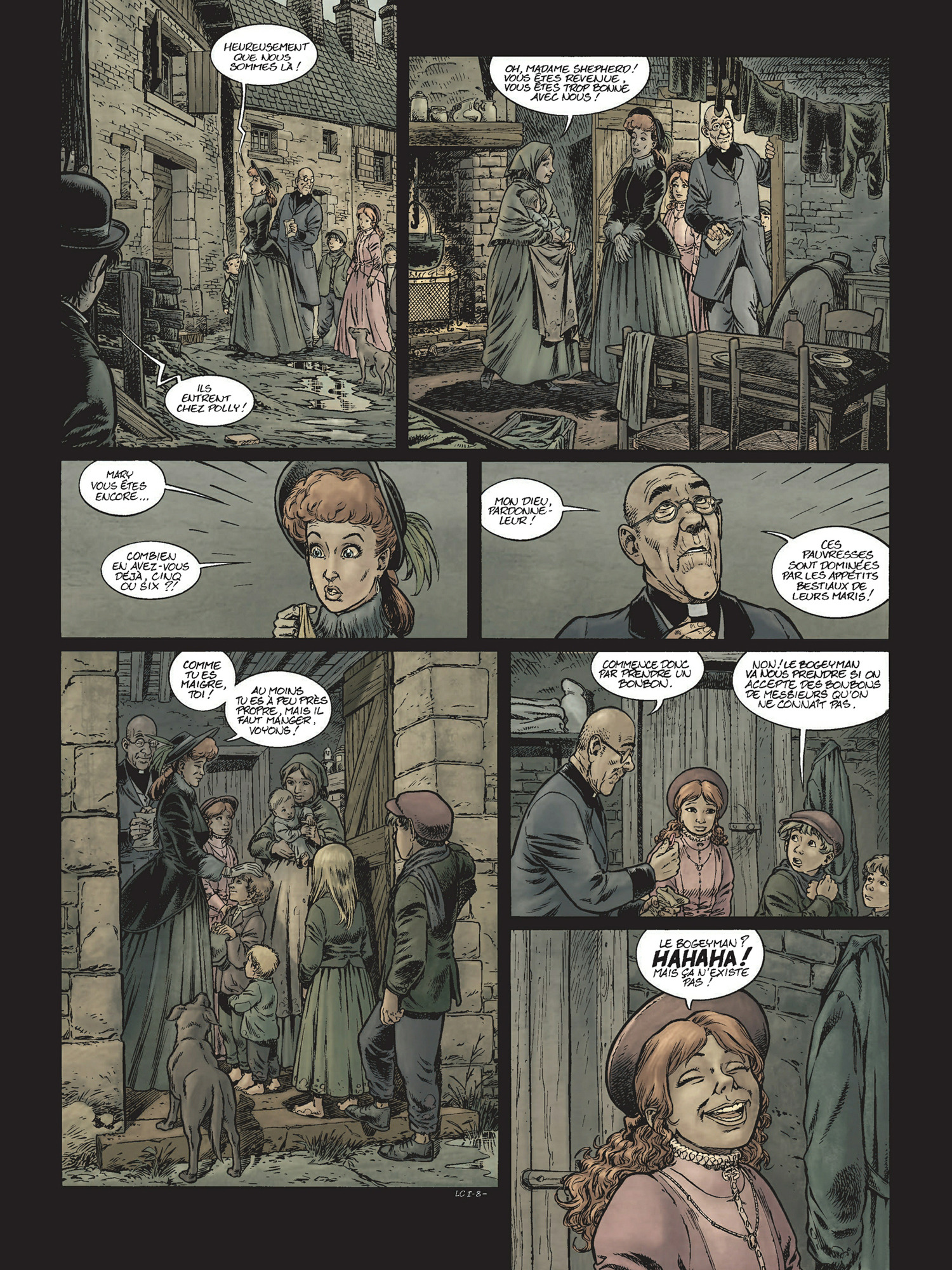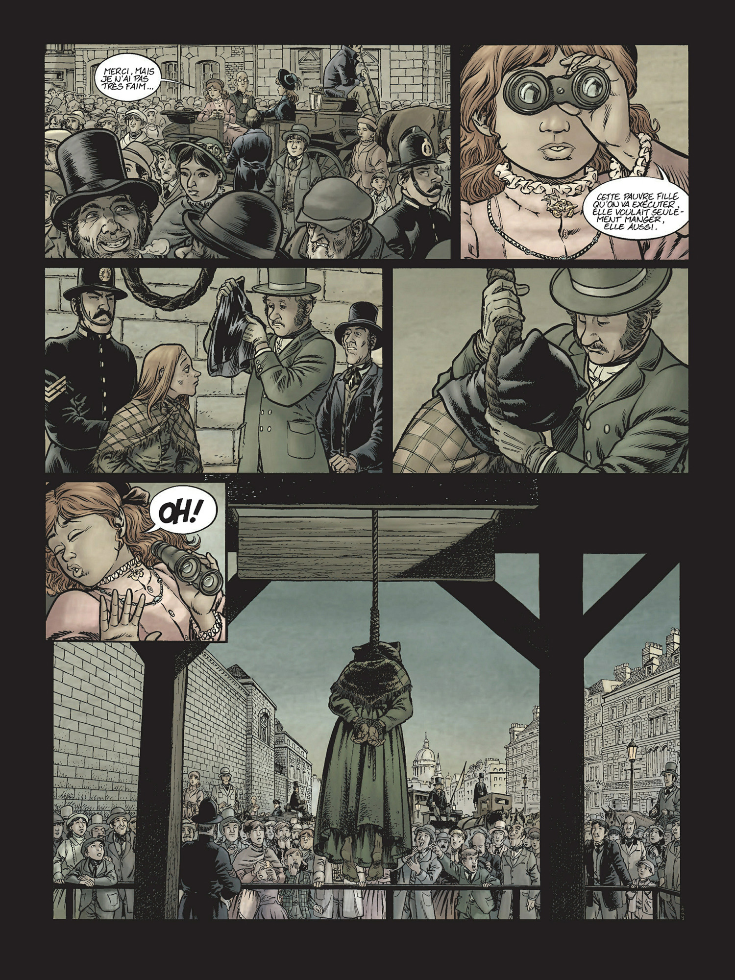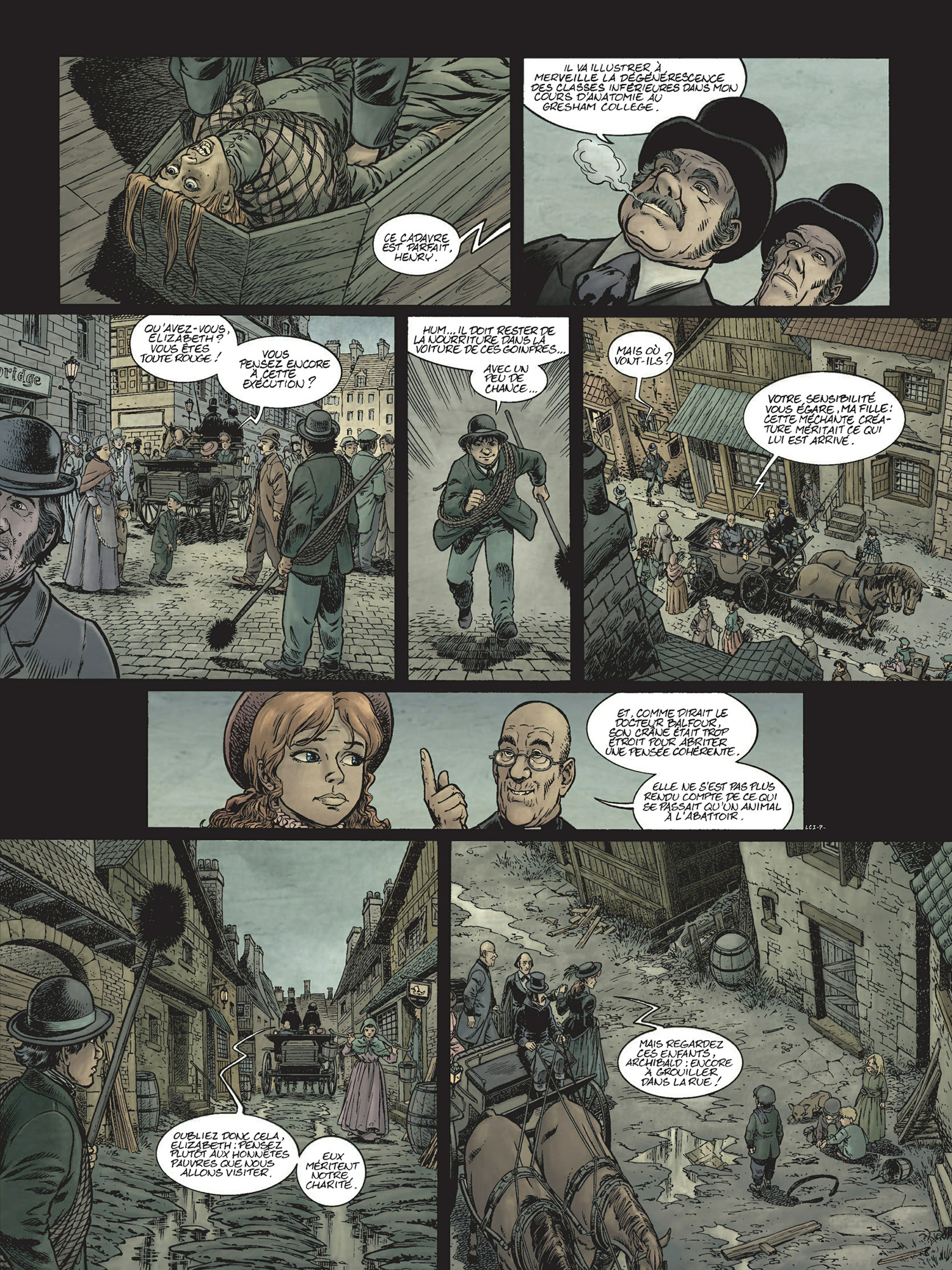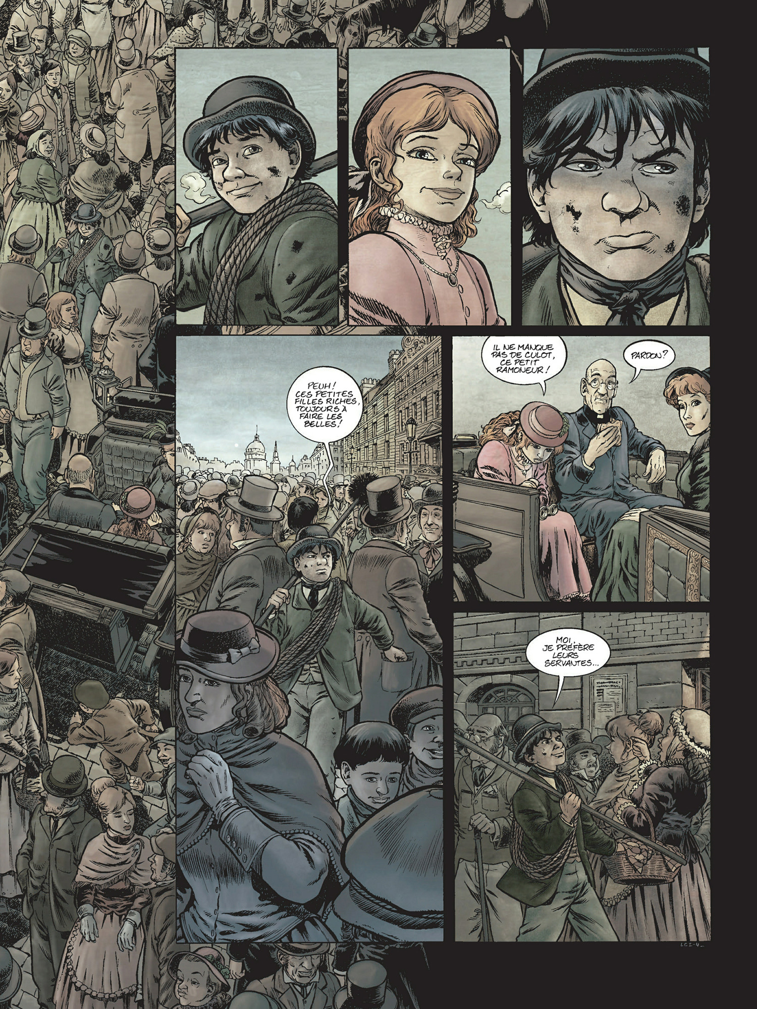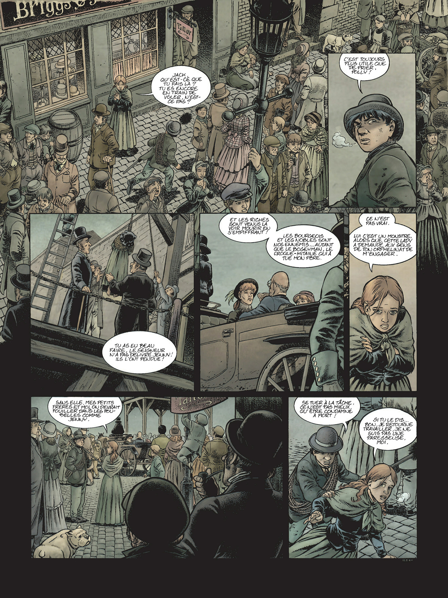 Engoncée dans ses habitudes de petite fille très riche, Liz accepte un système régi par les plus forts. D'autant qu'elle côtoie régulièrement ce beau monde, les dignes représentants d'un pouvoir dur mais juste. Qu'une enfant de 12 ans se fasse pendre en place publique ne l'étonne guère. Elle s'en émeut un peu, mais qui pourrait lui ouvrir les yeux ? Et pourquoi pas ce petit gredin de Jack ? Jack, un joli gars qu'elle a rencontré sur le lieu de l'exécution et qui lui a tapé dans l'oeil. Et sérieusement encore... au point d'accepter de lui parler, de l'écouter... de l'accompagner. Alors qu'avec son attirail de ramoneur, sûr que c'est un malfrat ! Mais elle n'a pas froid aux yeux, la petite. Dans son donjon cossu, elle n'a peur de rien, pas même du Bogeyman, le " croquemitaine ". Ca tombe bien, Jack le connaît ! Il sait même où il habite...ce sera l'occasion de le voir en vrai. Mais quelle surprise pour Liz ! Dans son antre immonde, le Bogeyman engraisse de jeunes enfants destiné à être...mangés. Et pas par n'importe qui. Par des gentlemen de la bonne société, membres d'un club très sélect dont le président ne serait autre que son propre père...