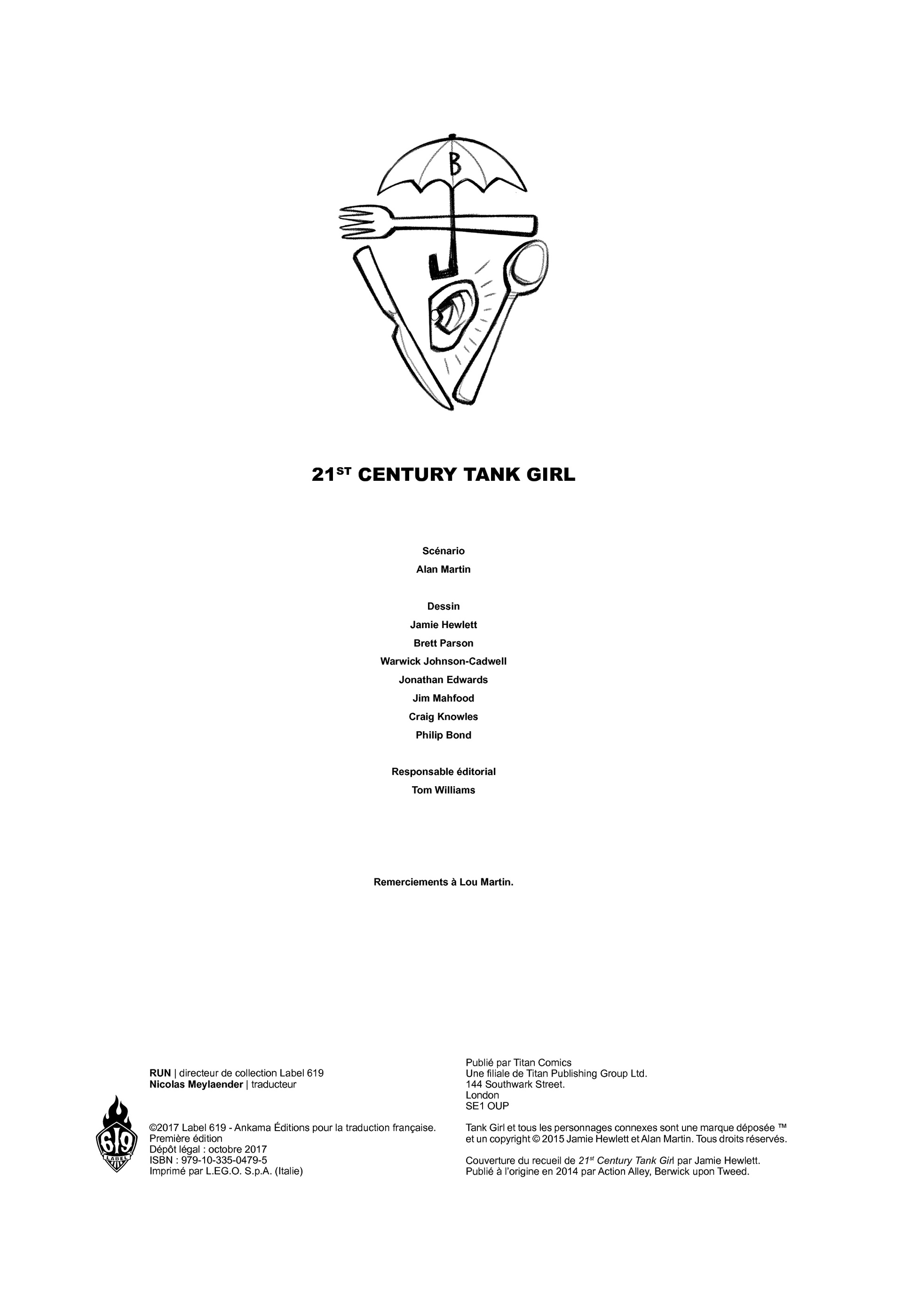 Après une pause de vingt ans, Jamie Hewlett (Gorillaz), cocréateur de Tank Girl, reprend les armes ! Pour 21st Century Tank Girl, Jamie rejoint son binôme Alan Martin et une équipe de six dessinateurs (vétérans et nouveaux venus) pour vous délivrer une bombe ultime de stupidité. Tout le monde à terre, protégez vos parties intimes et préparez-vous à un carnage épique !