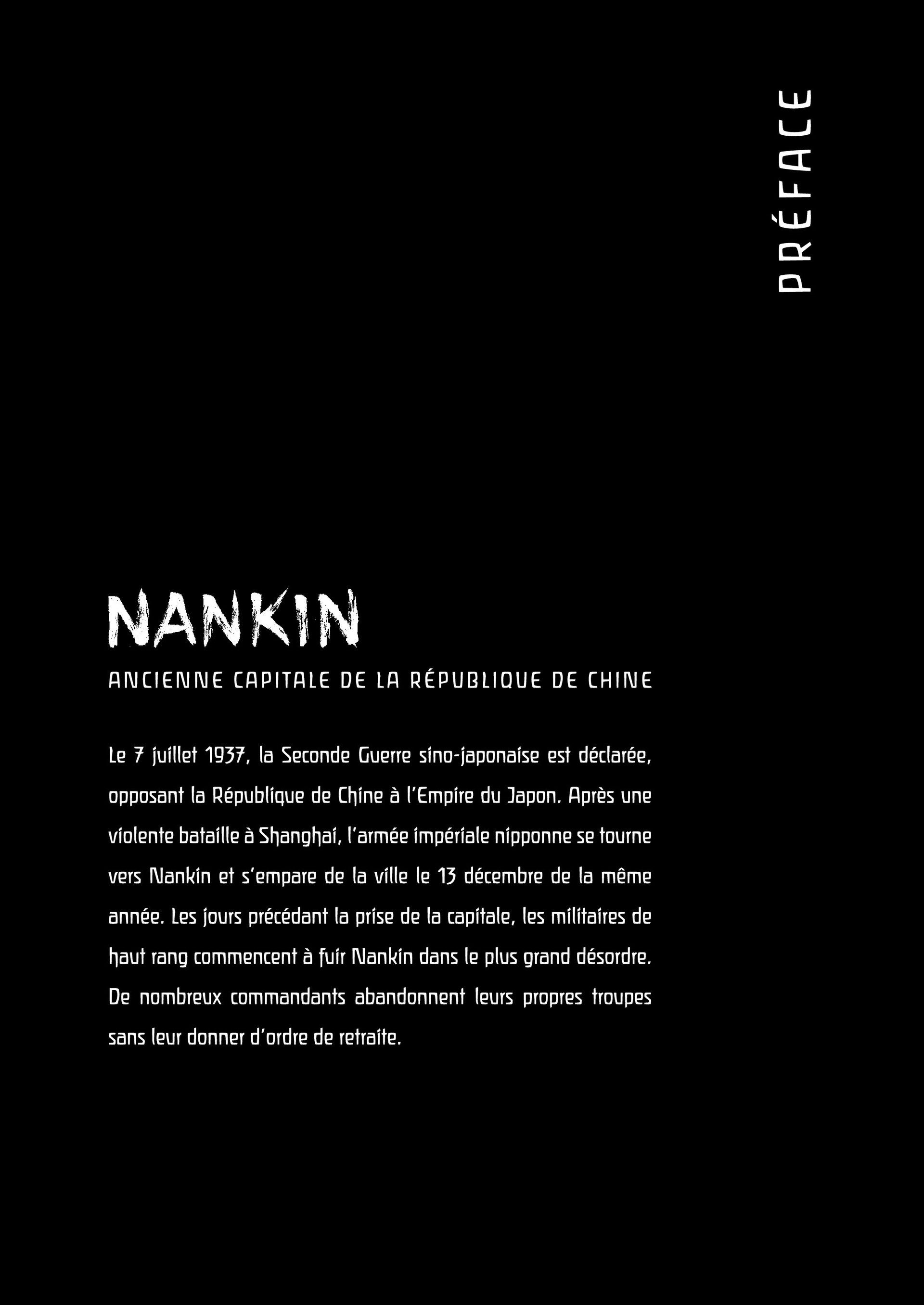 Après des mois de conflit à Shanghai, l'armée japonaise entre dans Nankin et massacre la population. Dans la ville fortifiée, entre les patrouilles et les décombres, deux soldats chinois tentent d'échapper à l'horreur...