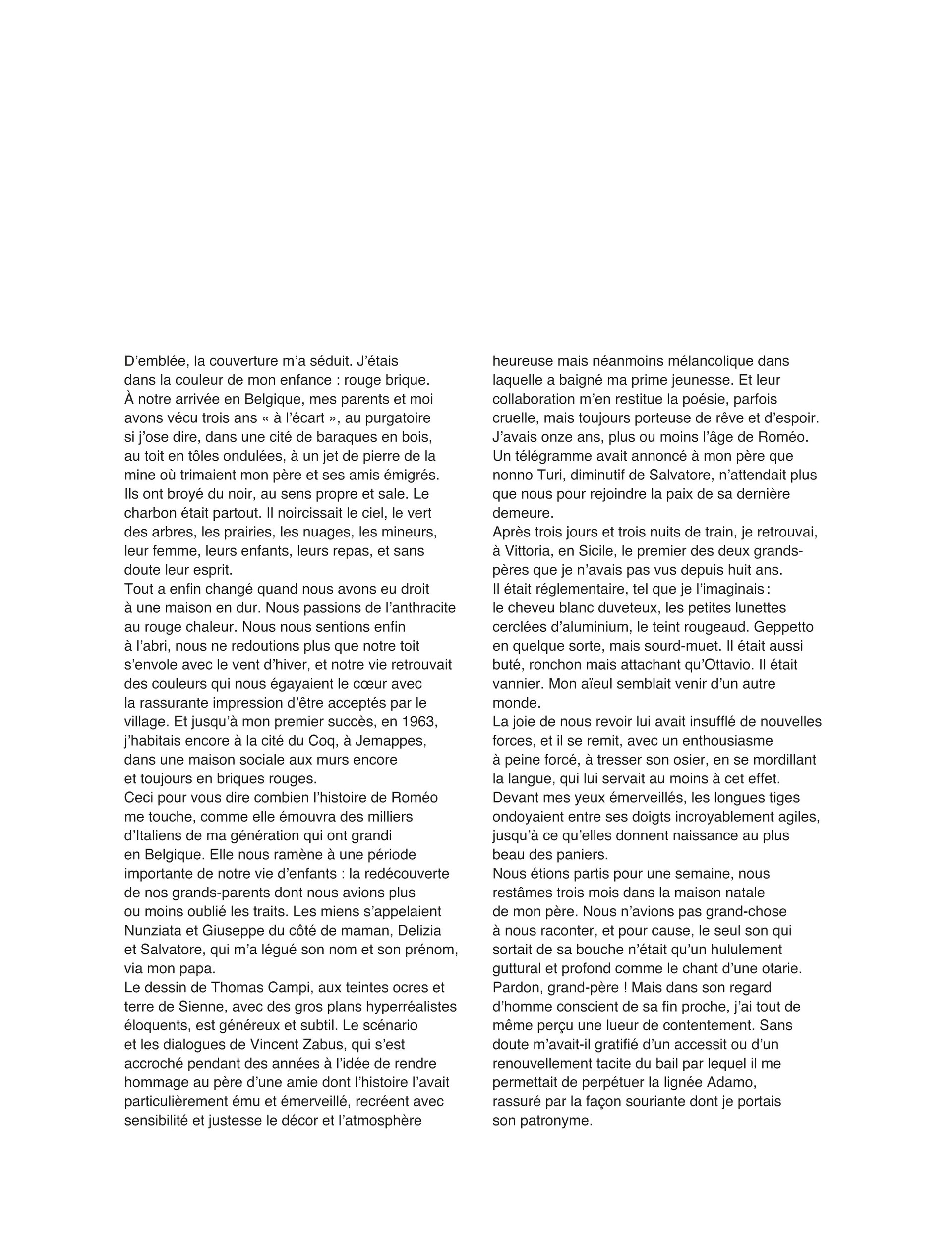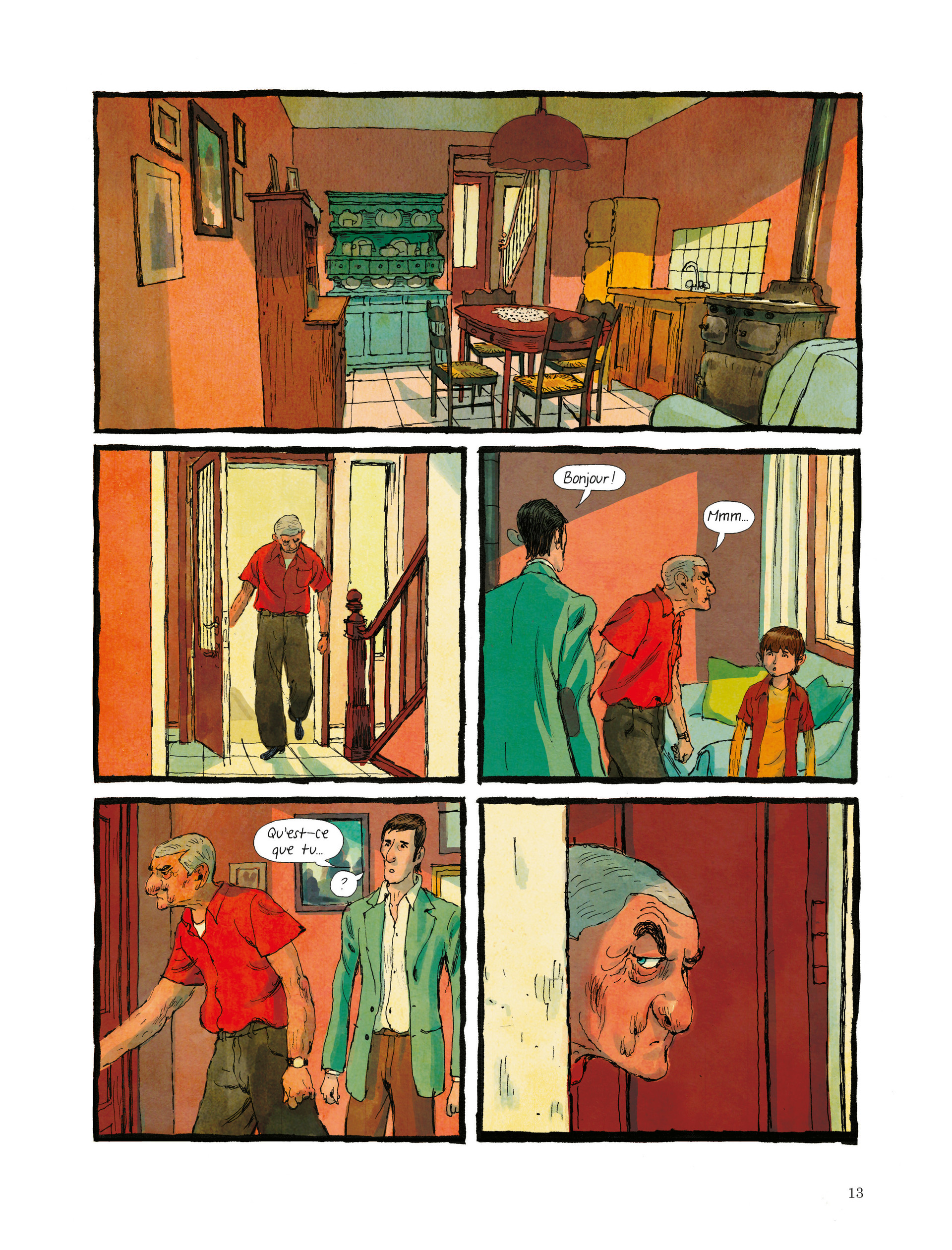 Touchante rencontre que celle racontée dans cett BD, entre un grand père au crépuscule de sa vie et un petit fils qui ne le connait pas. « Le vieux chiant » comme il l’appelle, a subit les évènements sans aucune prise sur eux, et le bilan qu’il fait de son existence n’est que renoncement, misère, trahison et souffrance. Il le dit doucement. Sans se plaindre vraiment. Une sorte de colère rentrée...