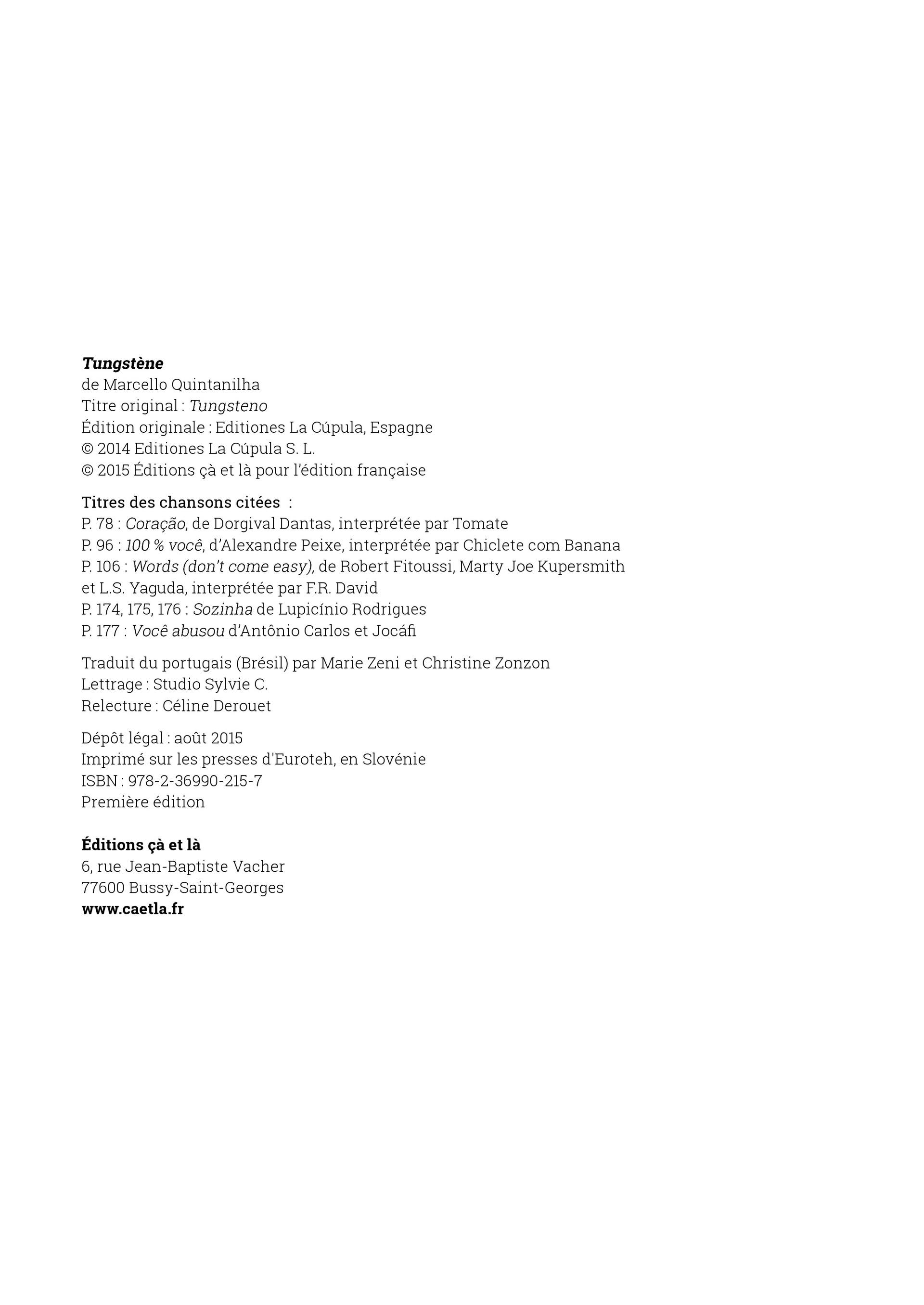 Salvador de Bahia, Brésil. Les chemins de quatre habitants de la ville se croisent au pied du fort de Notre-Dame de Monte Serrat. Caju, dealer à la petite semaine, M. Ney, militaire à la retraite, Richard, brillant policier, et Keira, avec laquelle il vit une relation chaotique, se retrouvent tous impliqués dans un incident d'apparence anodine qui va dégénérer en fait-divers. Polar à la construction minutieuse avec en toile de fond le Brésil d'aujourd'hui, Tungstène explore les réactions d'un petit groupe d'individus poussés dans leurs retranchements et proches du point de rupture.