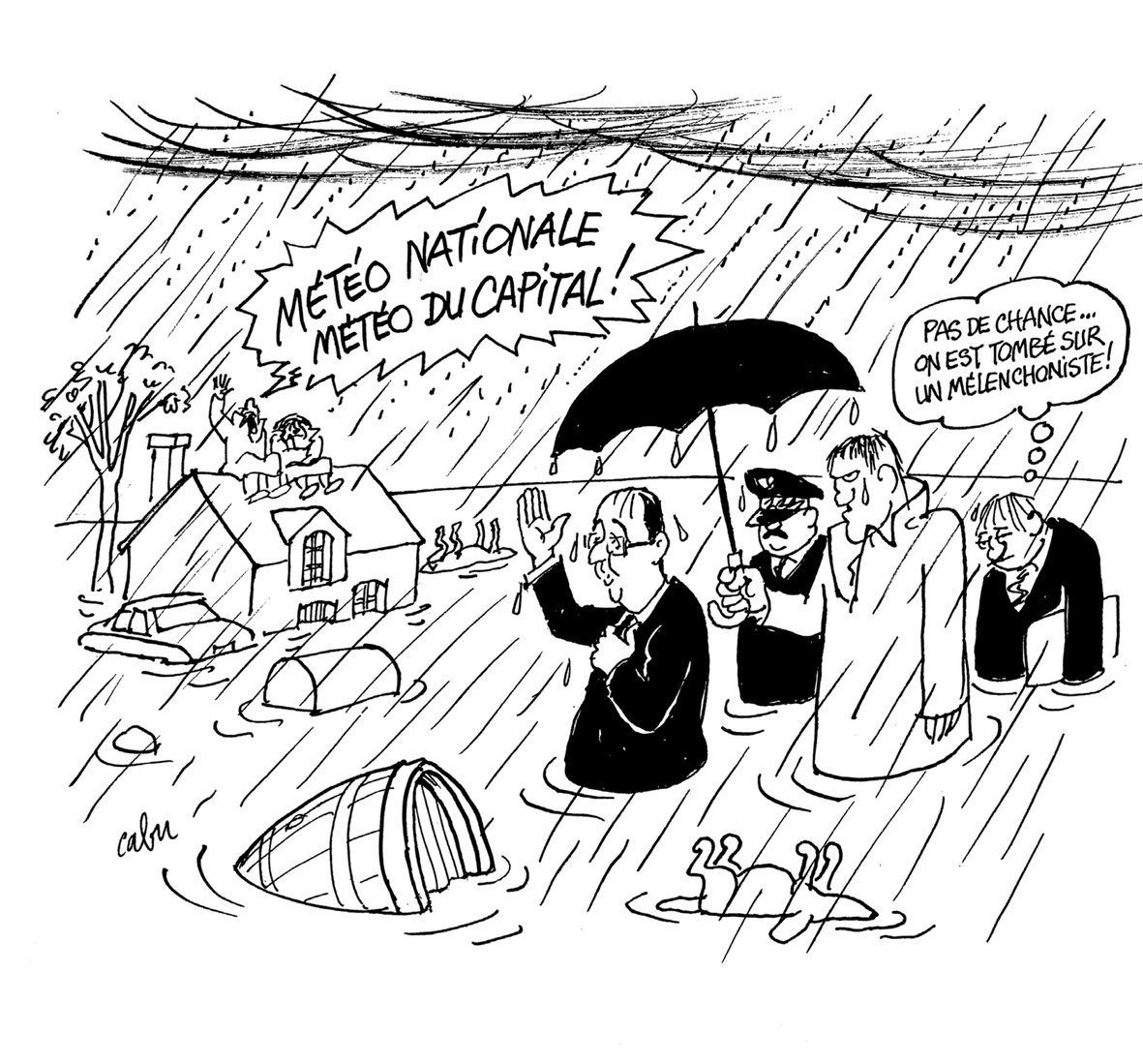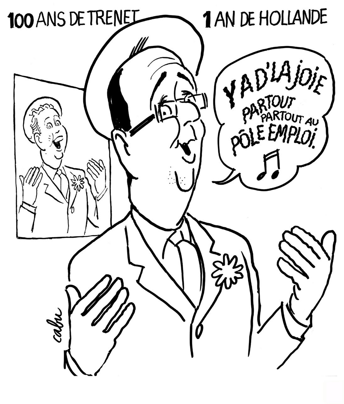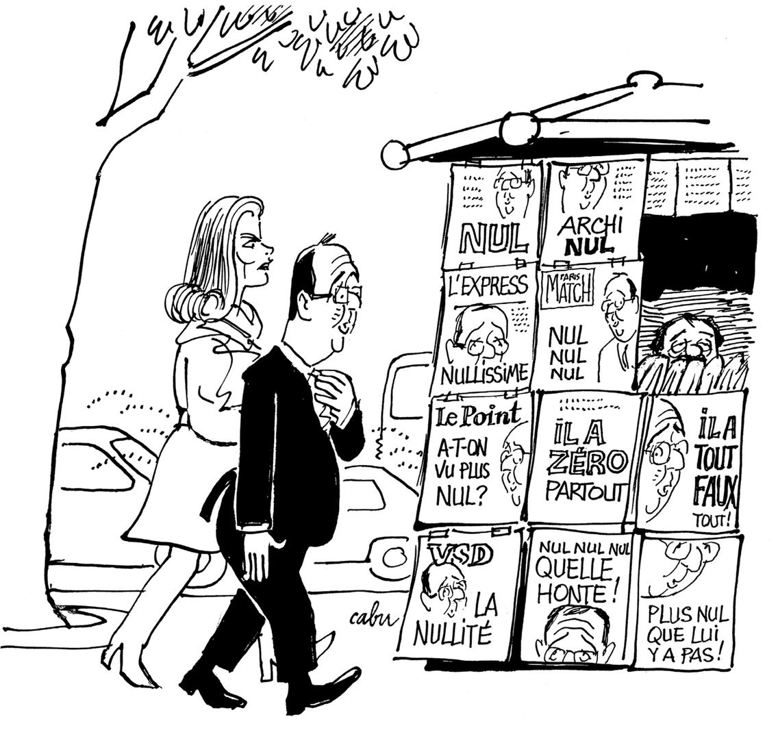 Cabu s'amuse de tout. Du président de la République récemment élu, de sa politique incertaine, de son Premier ministre, de sa Première dame, de ses escapades amoureuses. Et il continue joyeusement avec l'opposition de droite, le Front national d'extrême droite, les intégristes religieux de tous poils. Cabu n'épargne personne, c'est pour ça qu'il est drôlement cruel.