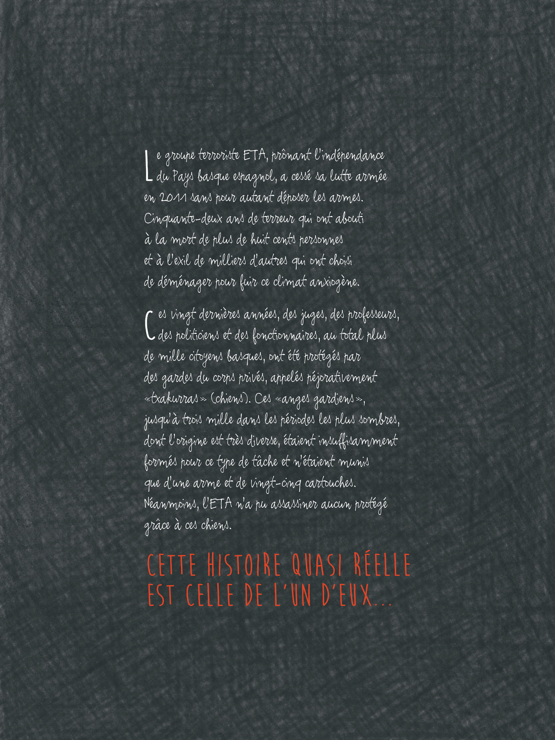 Dans son petit village d'Andalousie, Miguel a tout pour être heureux : une famille aimante et un travail de vendeur de bonbons qui le rend très populaire parmi les enfants de la région. Mais Miguel a un rêve. Il veut devenir écrivain. Or, il en est persuadé, on ne peut écrire que si on a vécu une vie passionnante. Il décide de changer de vie et postule pour devenir un garde du corps au service de l'Etat. Sa première affectation l'envoie au Pays Basque, où les membres du gouvernement doivent tous être protégés en permanence. Une nouvelle vie commence, partagée entre l'angoisse, l'ennui et la camaraderie. Jusqu'au jour où tout bascule...