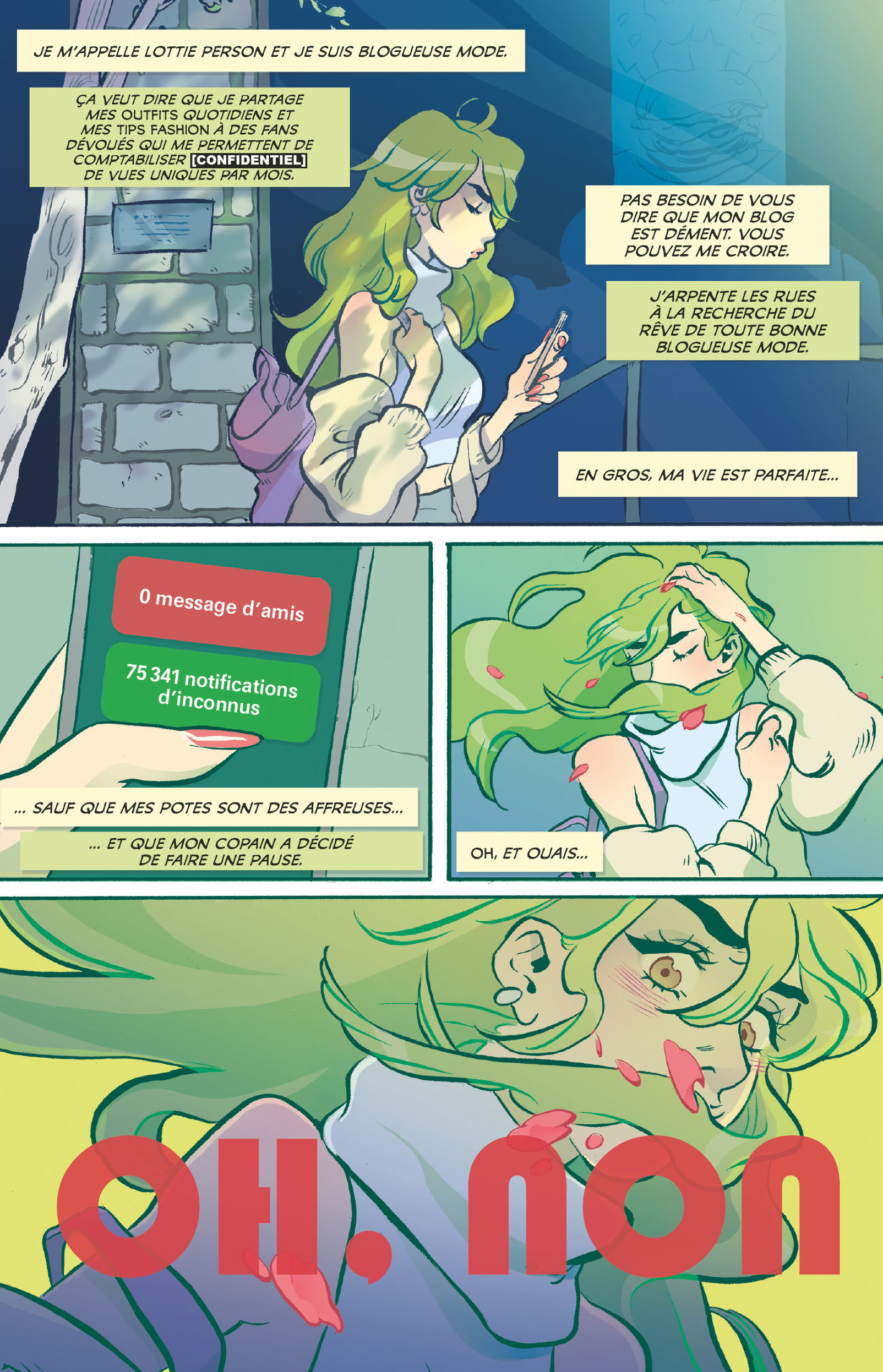 Il y a des jours où tombent entre nos mains d’excellentes bandes-dessinées qu’on n’aurait pas forcément lues, mais qui nous marquent pour toujours.Et il y a Snotgirl.Le pitch, déjà. Lottie Person est née en 1990. C’est une blogueuse mode à succès mais trrrrrrrrrèèèèès malheureuse parce que la vie qu’elle affiche sur Internet ne la reflète pas vraiment (premier soupir).Ne partez pas maintenant...