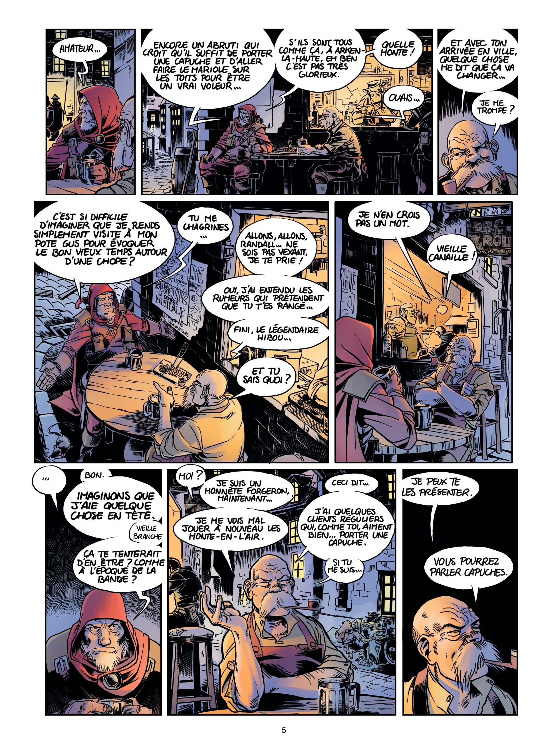 La grande cité d’Arken-La-Haute doit être irréprochable pour la visite imminente de l’émissaire royal. Aussi l’incompétent Duc d’Obarrion se voit-il contraint d’assumer son rôle de dirigeant, délaissé depuis trop longtemps: maintenir l’ordre dans les rues, percevoir les taxes, régler le délictat problème des elfes, des gobelins et des trolls qui ternissent le tableau d’une cité humaine idéale. La mission pourrait être réalisable si un légendaire voleur, Le Hibou, n’avait choisi ce moment pour reprendre du service.