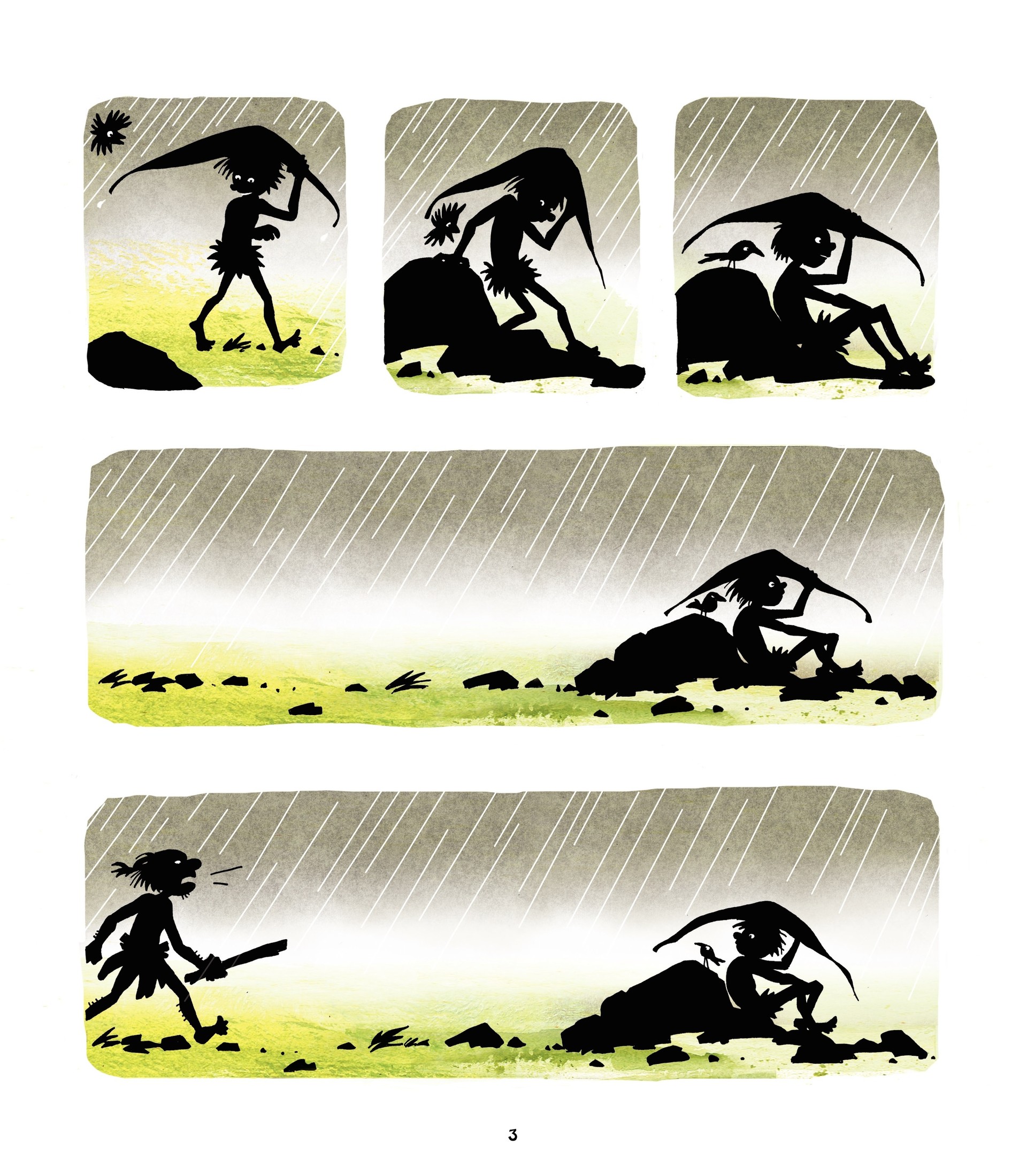 Recueil de cinq histoires en bandes dessinées sans paroles, cet album tout en ombres chinoises et en poésie s’adresse d’abord aux enfants de 4 à 6 ans : il leur propose de découvrir des aventures rocambolesques et touchantes autour du monde de la préhistoire…tout en faisant travailler à plein leur imaginaire ! Quatre des cinq histoires de cet album sont complètement inédites, la cinquième étant reprise de l’album «Trois Bons Amis» de V. Wagner, prix Libbylit à Namur.