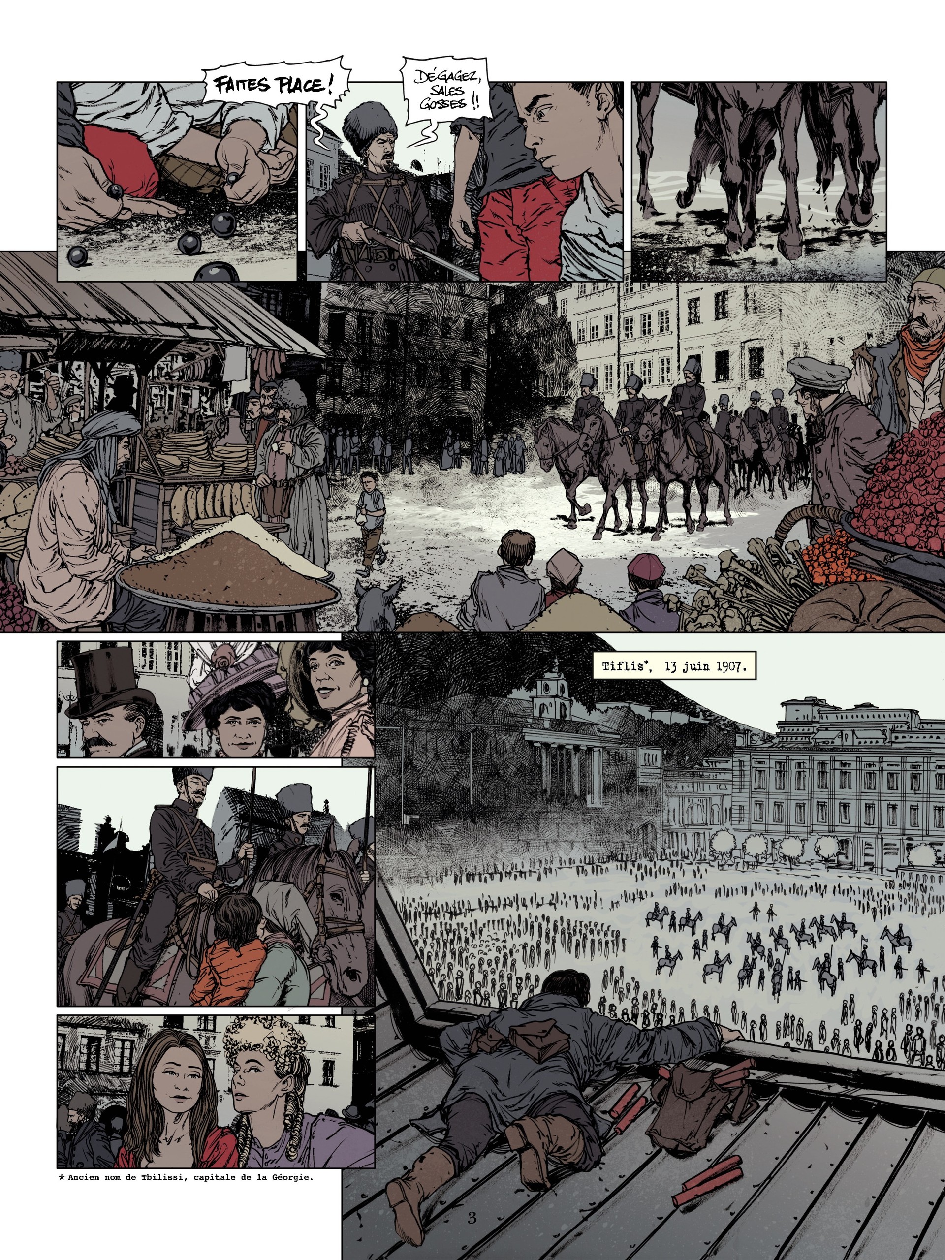Moscou, 1931. Staline décide de raconter sa jeunesse à un secrétaire du Parti. Il revient sur son surnom, Sosso, ses parents, son acharnement à être le chef de bande, le séminaire où il lit des livres interdits, ses tueries, ses pillages, ses rencontres, le nationalisme. Lorsqu'il rencontre Lénine, il entre en clandestinité pour échapper à la police du tsar.