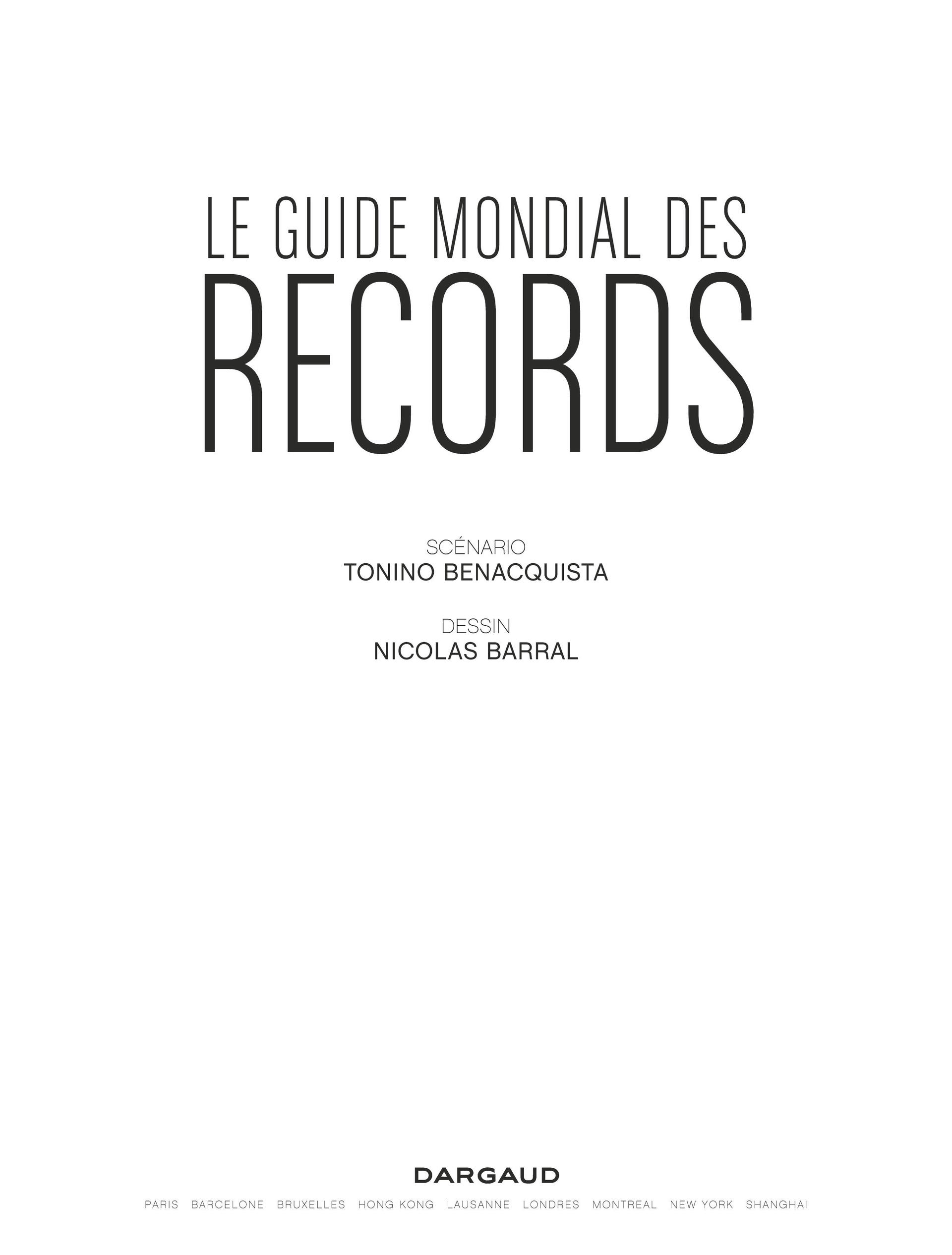 Après Dieu n'a pas Réponse à tout et Les Cobayes, Tonino Benacquista et Nicolas Barral se lancent dans un nouveau one shot. Paul Baron est un des vérificateurs du Guide Mondial des Records, il passe son temps à peser des courges, à assister à des concours aussi divers qu'étranges, à contrôler tout ce que les hommes peuvent inventer pour tenter de se distinguer de la masse. Activité plutôt inoffensive, sauf lorsque l'un des candidats tente de battre un record d'assassinats.