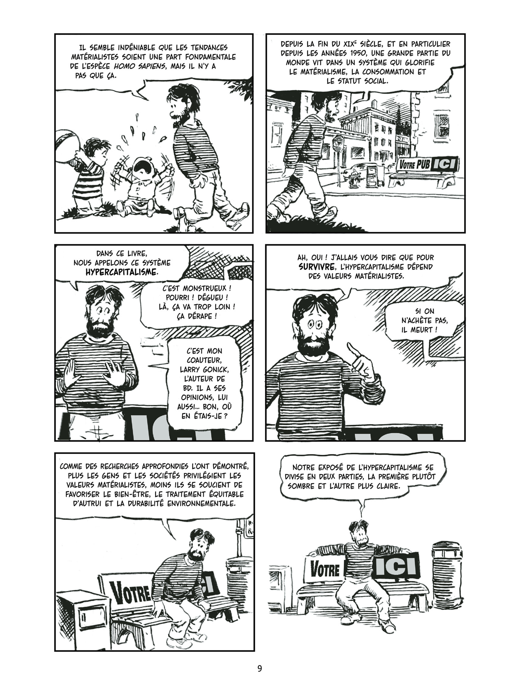 Hypercapitalisme explique comment l'économie moderne, en portant aux nues la loi du marché, en privatisant à tout crin, menace le développement de l'humanité, la justice sociale et la planète tout entière. Avec humour, Larry Gonick, cartoonist renommé, et Tim Kasser, professeur de psychologie, montrent aussi comment remettre la notion de bien-être au coeur de nos échanges.