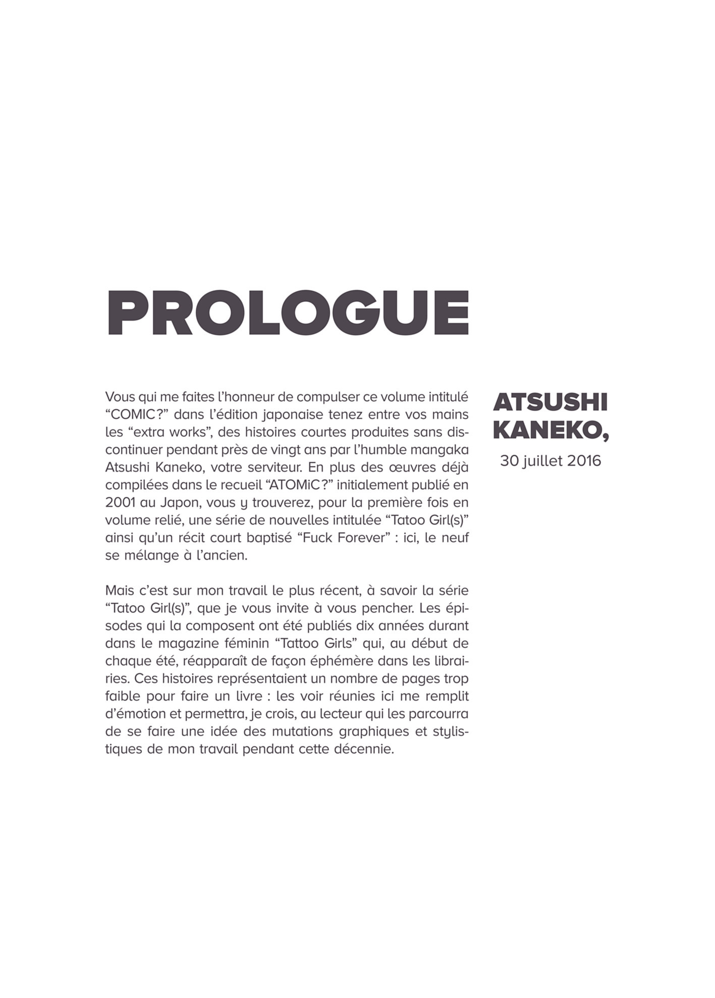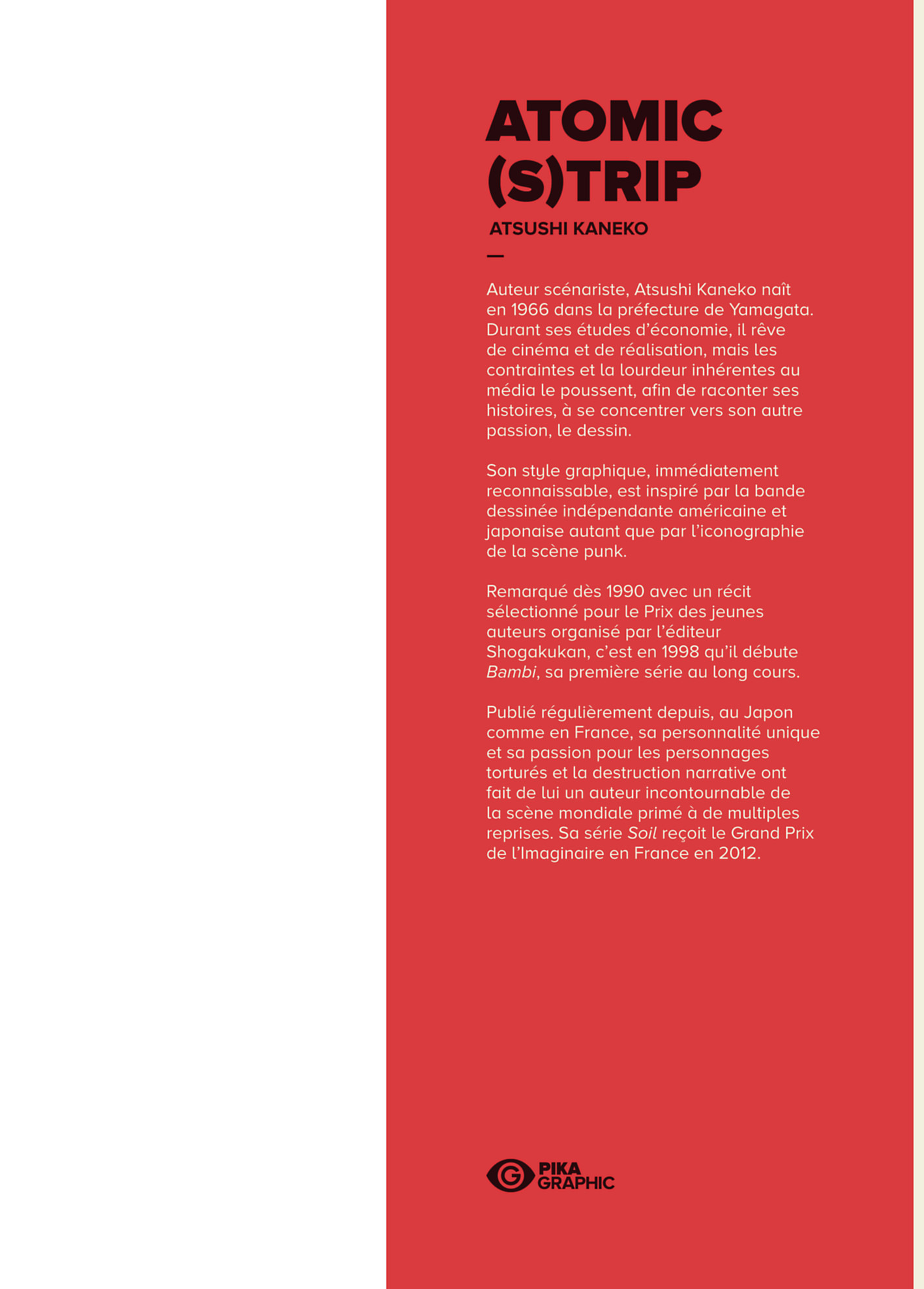 Atsushi Kaneko, l'enfant démoniaque du monde du manga, qu iourdit dans l'ombre au mépris des frontières et des genres, revient avec un concentré de son art. Sous forme d'un recueil de récits courts issus de ses travaux de 1997 à 2015. Il nous livre un ouvrage unique où la couleur, la bichromie et le noir et blanc se succèdent au fil des pages et témoignent du style protéiforme du maître Kaneko !