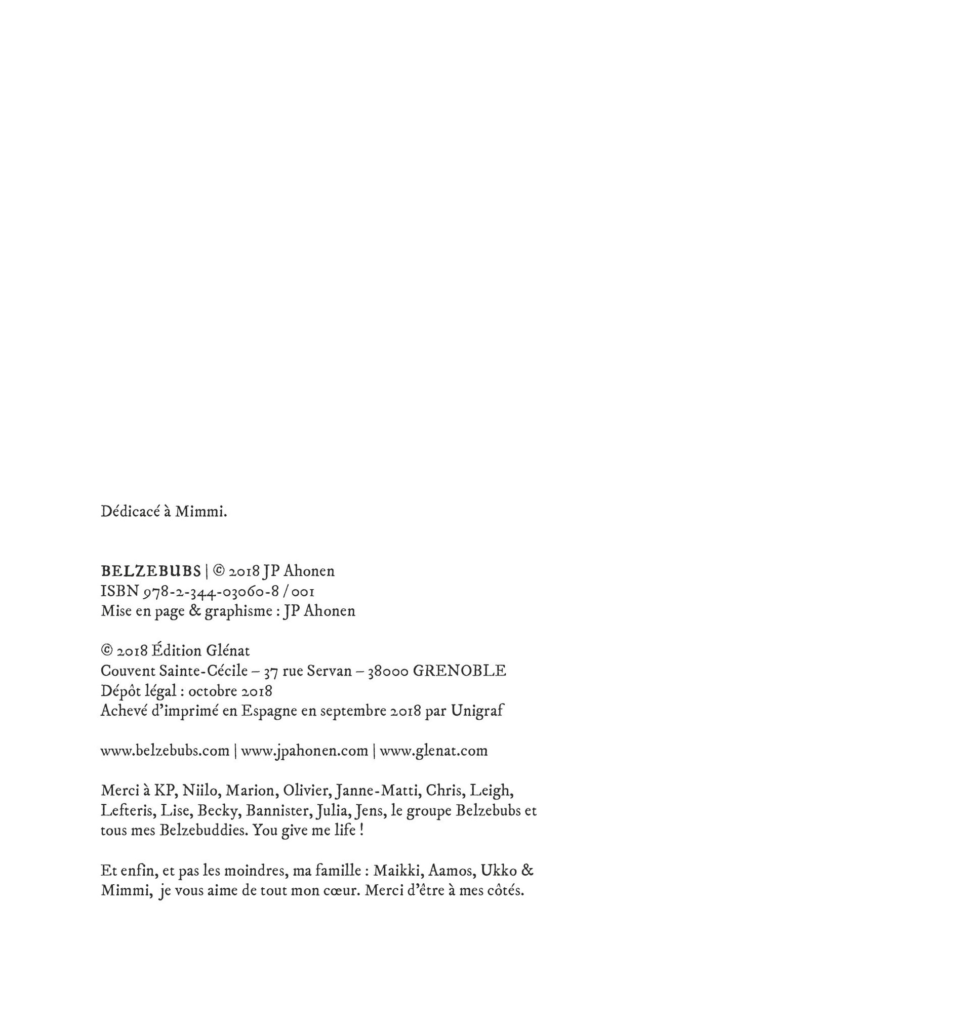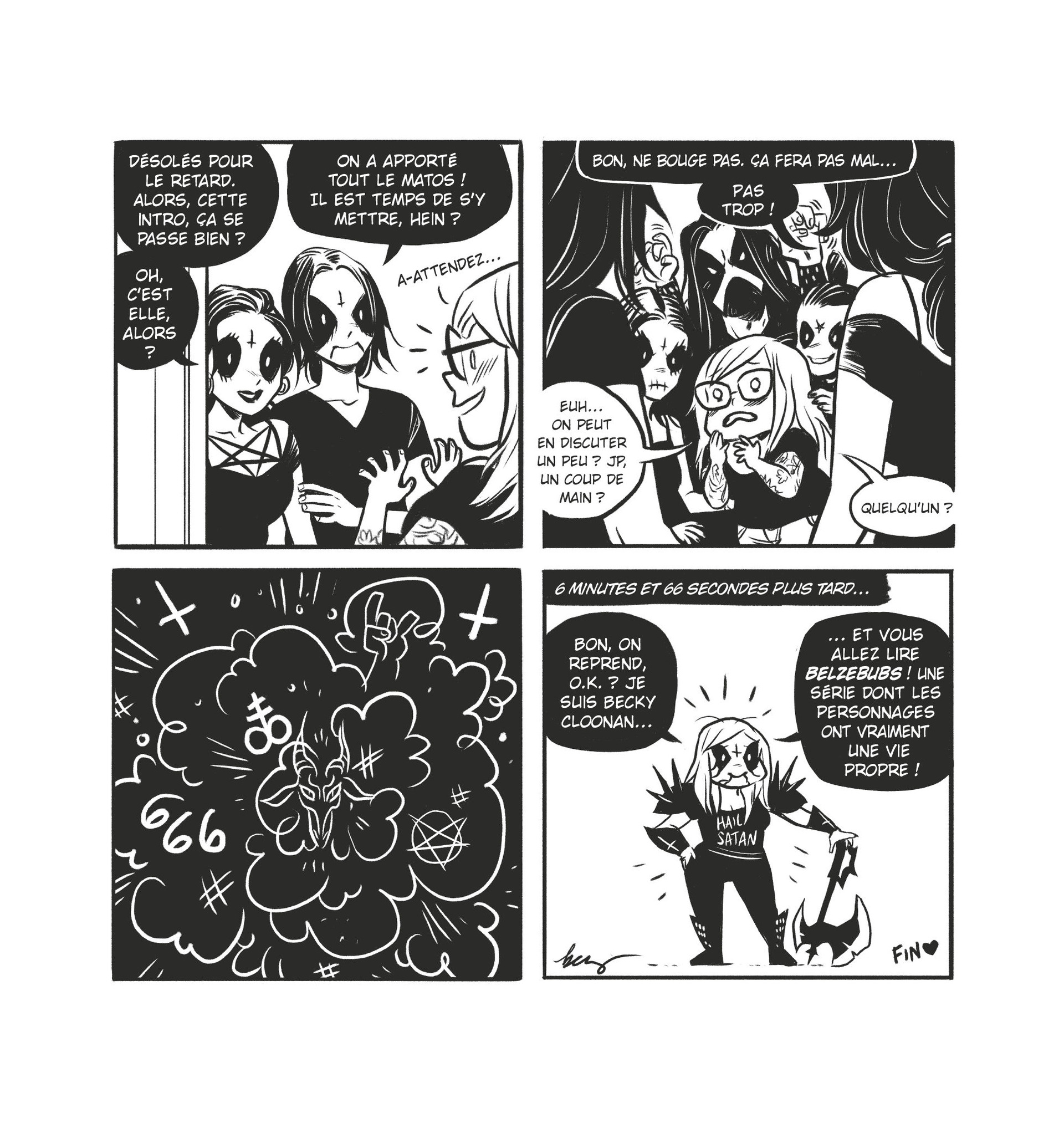 Vous aimez le noir, les têtes de mort et les pentacles ? Chez vous, le metal n’est pas une musique, mais une religion, et l’intégrale de Lovecraft votre bible ? Alors bienvenue dans l’univers satanique déjanté de Belzebubs ! Entre The Osbournes et La Famille Addams, JP Ahonen, auteur finlandais épris de rock et metal, nous dresse à travers cette série de strips les chroniques drôles et décalées d’une famille de métalleux qui vivent leur passion au quotidien quelles qu’en soient les circonstances, entre riffs de guitare, rites païens et invocations démoniaques.