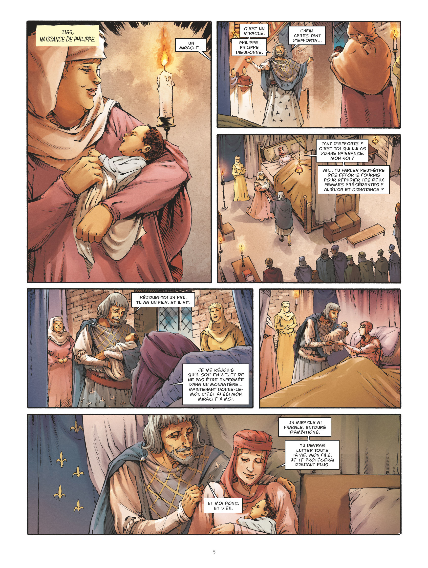 À sa naissance en 1165, Philippe II est accueilli comme un véritable miracle par son père Louis VII déjà âgé de 45 ans. En grandissant, il apprend ce qui structure le rôle d’un roi : le système féodal et l’idéal chevaleresque. Mais il découvre également les rapports ambigus faits de respects et de défis qu’entretient son père avec Henri II, roi d’Angleterre et d’Aquitaine. À son accession au pouvoir, dès l’âge de 15 ans, il entreprend de réformer en profondeur le royaume mettant fin à l’époque féodale tandis que perdure La rivalité avec le souverain anglais. D’autant que Philippe surnommé « Auguste » découvre avec le fils d’Henri II un adversaire de choix : le célèbre Richard Ier, héros des Croisades, surnommé « Cœur de Lion ».