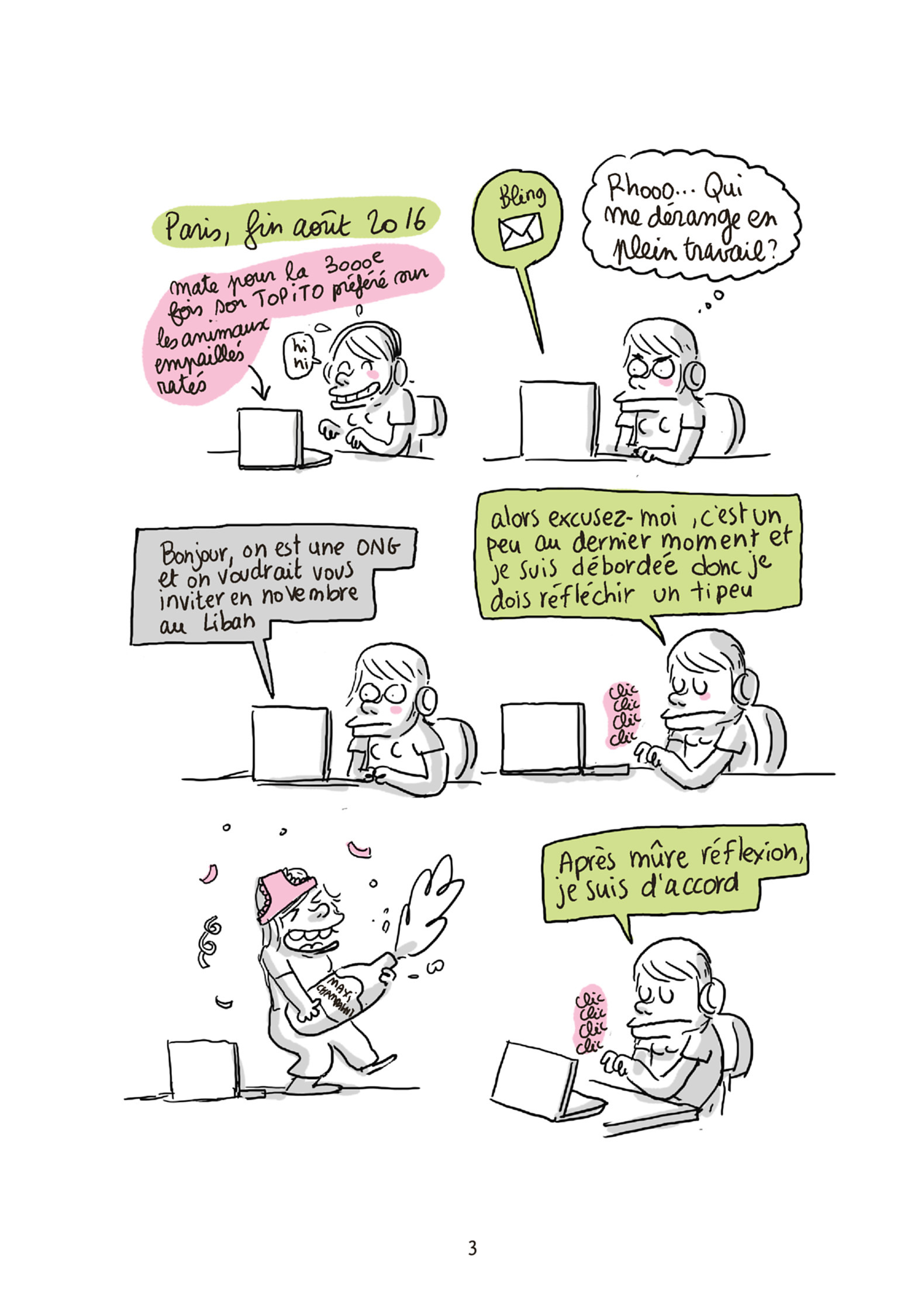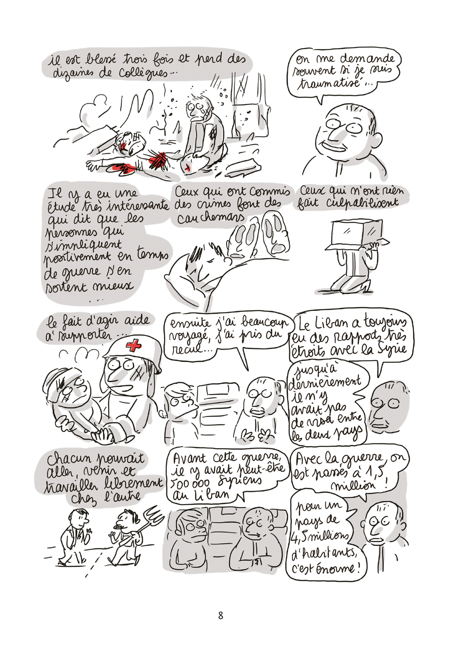 De la trivialité des salles de gym ou des soirées de l'upper-class libanaise aux problématiques de la condition féminine, du harcèlement sexuel ou encore des tensions religieuses, Lisa Mandel réussit l'habile tour de force de nous dessiner un Liban aux multiples facettes. Le dénominateur commun de ces notes ? L'humour, évidemment.