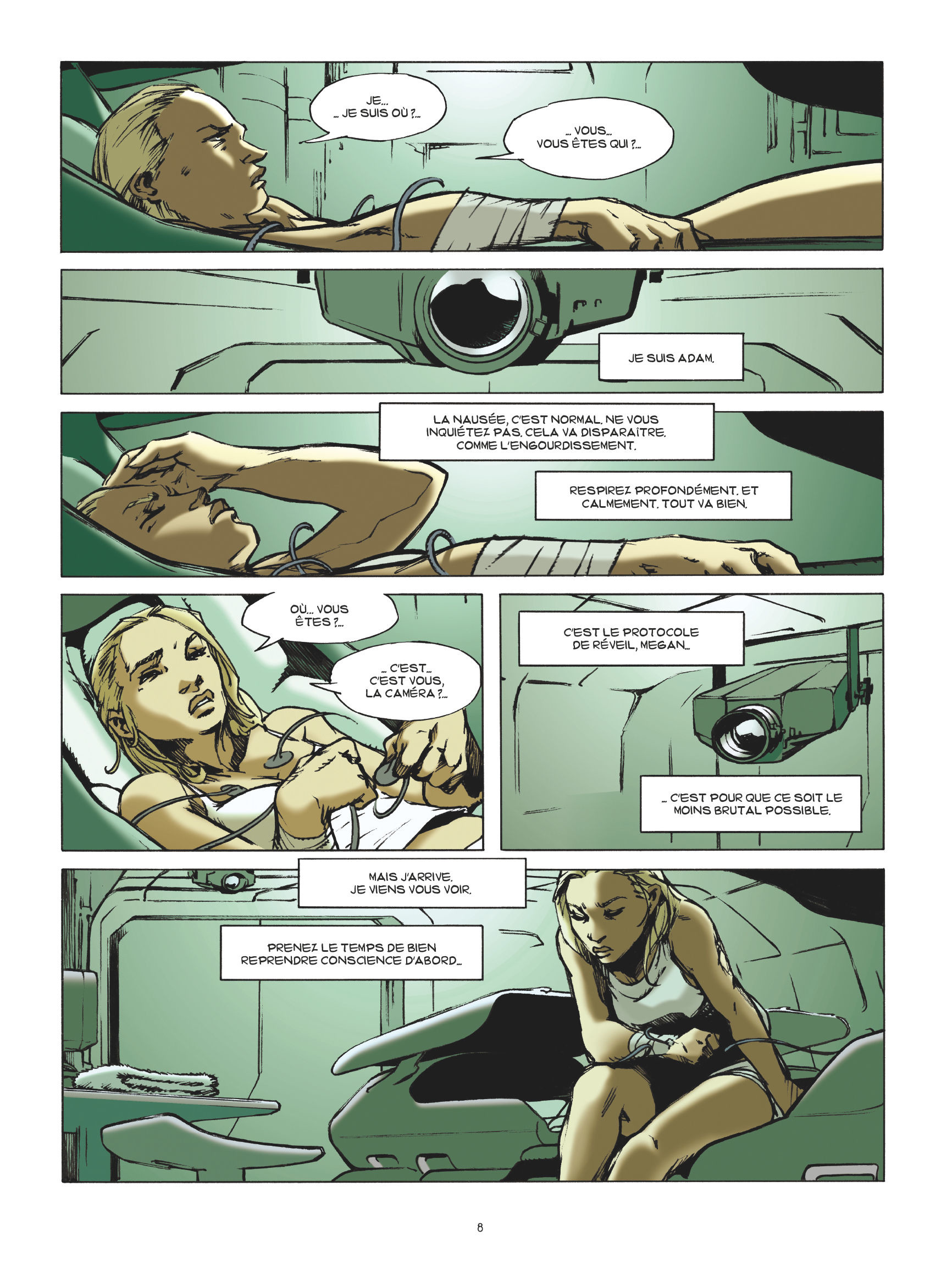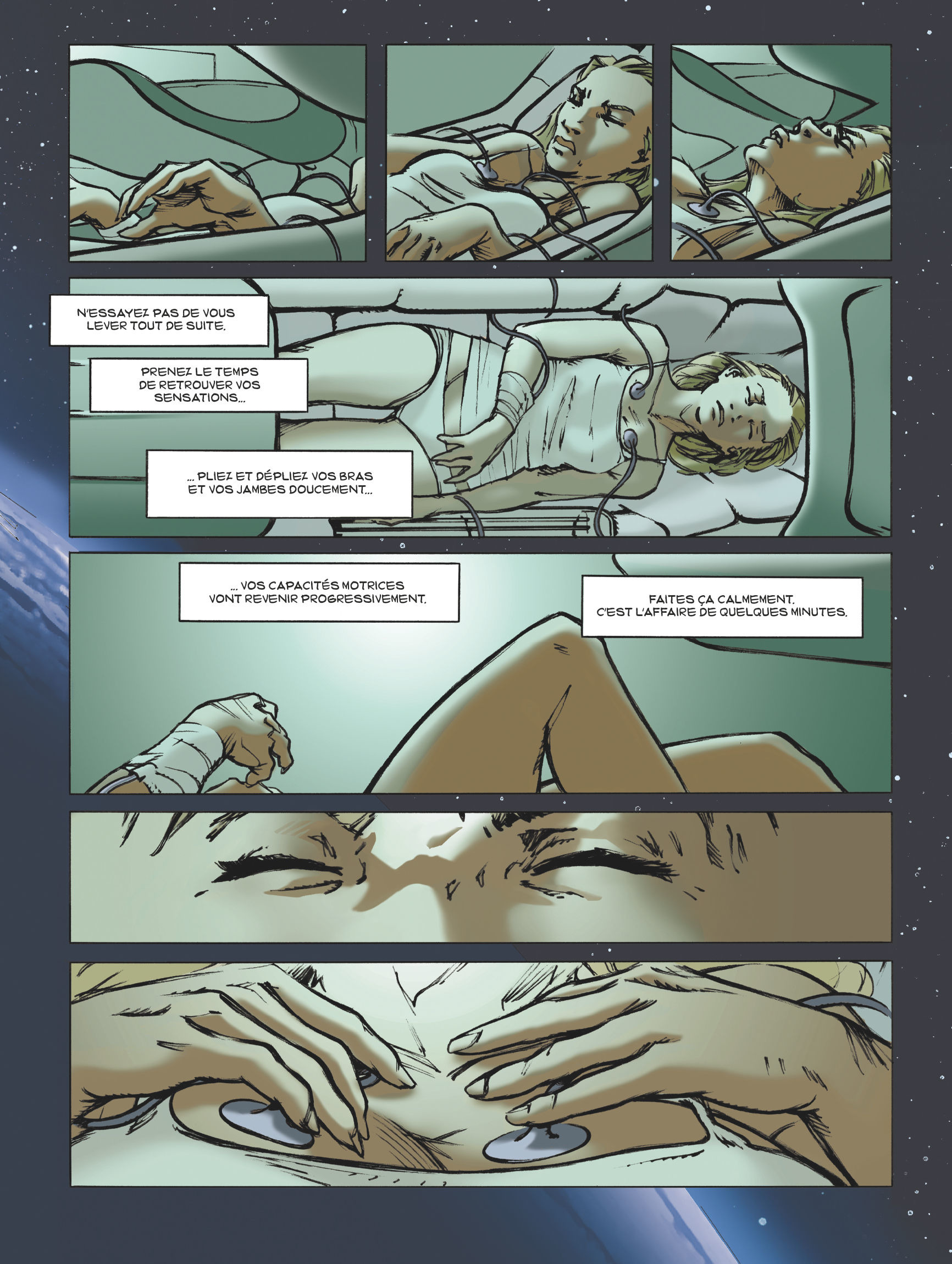 Huis clos. Megan Rausch se remet mal de sa léthargie : nausées, troubles de la mémoire, paranoïa... Malgré les traitements et la bienveillance de son partenaire de bord, la jeune passagère glisse au fil des jours dans la folie... Aucun signe de vie, au sol. À part eux, tout est mort. Stérile. À quoi bon avoir survécu au cataclysme, si tout retour sur Terre semble impossible ?