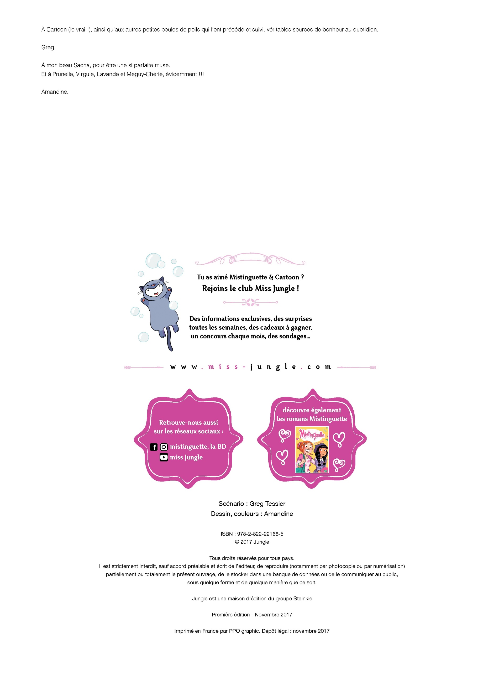 Cartoon, le chat facétieux de Mistinguette, n’a que trois mois lorsqu’il arrive dans sa nouvelle maison. Attendu avec grande impatience par sa jeune maitresse, et un peu moins par son père qui sera à l’origine de bien des maladresses, le craquant matou effectuera ici ses premiers pas au sein de la famille Blin !