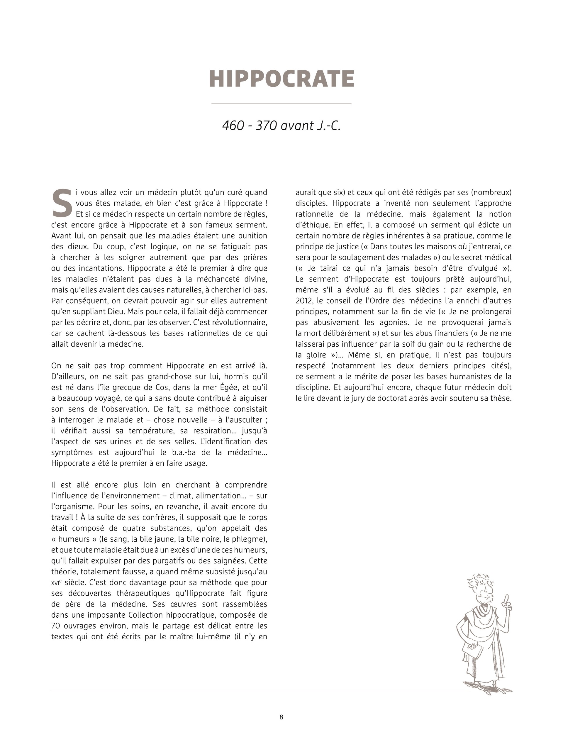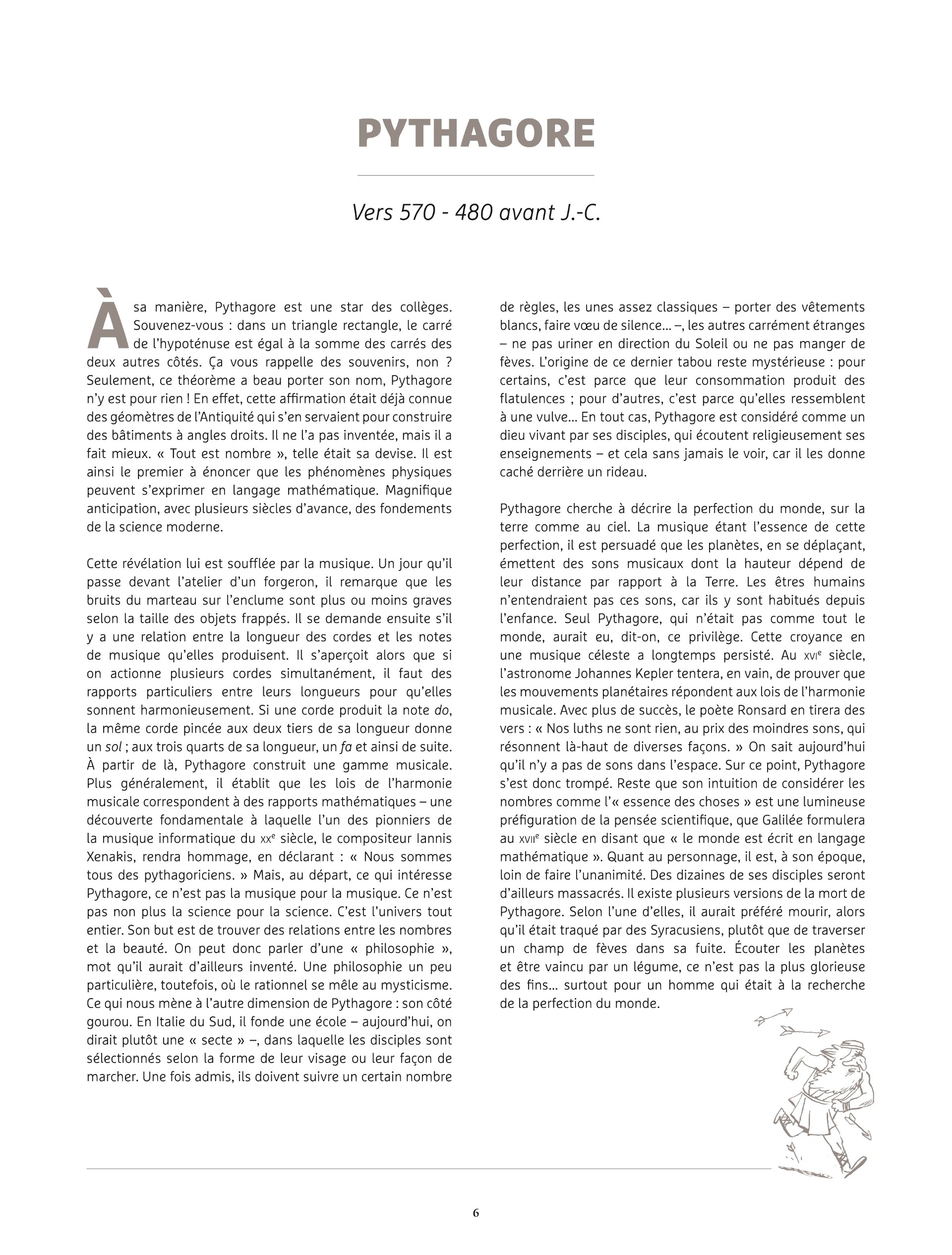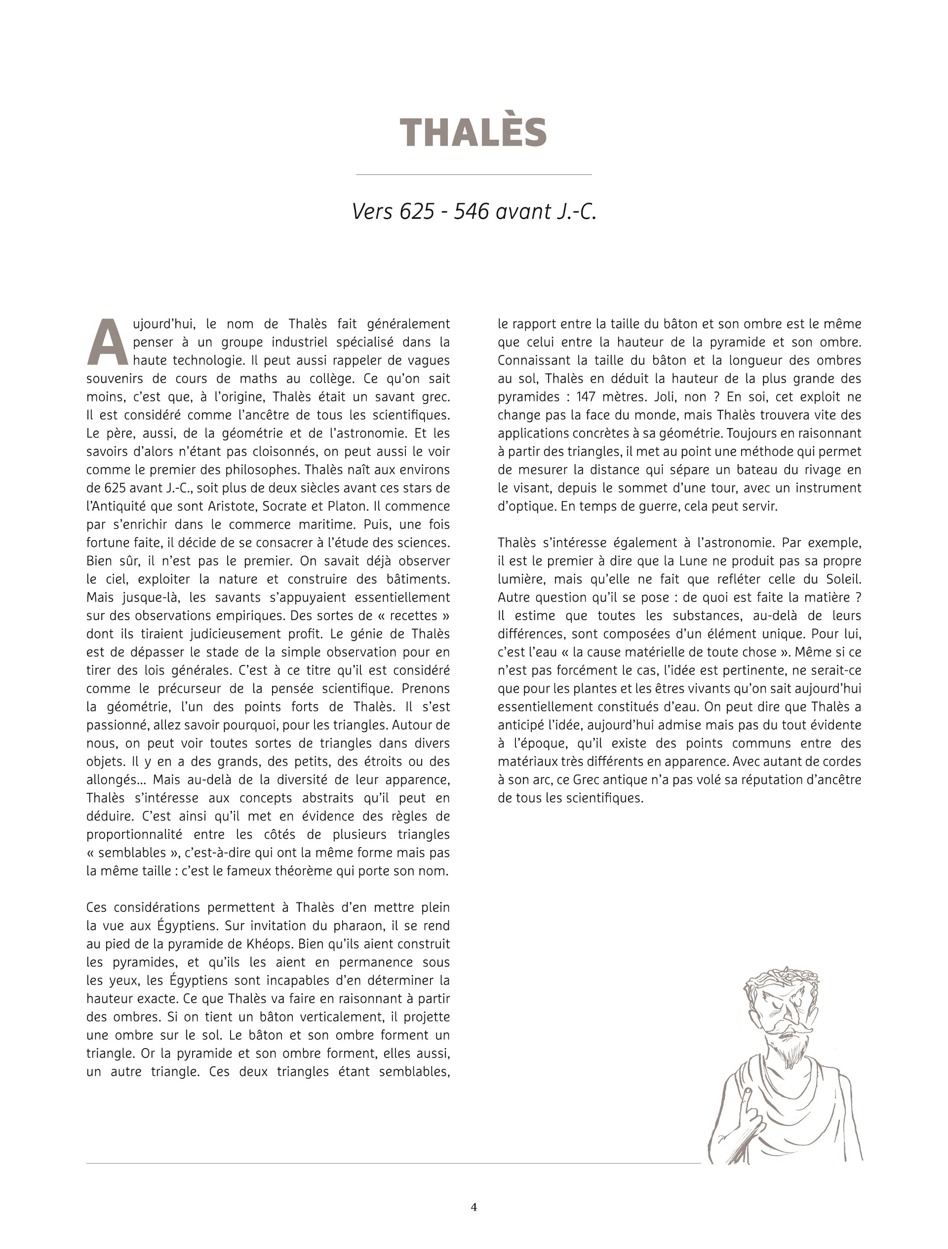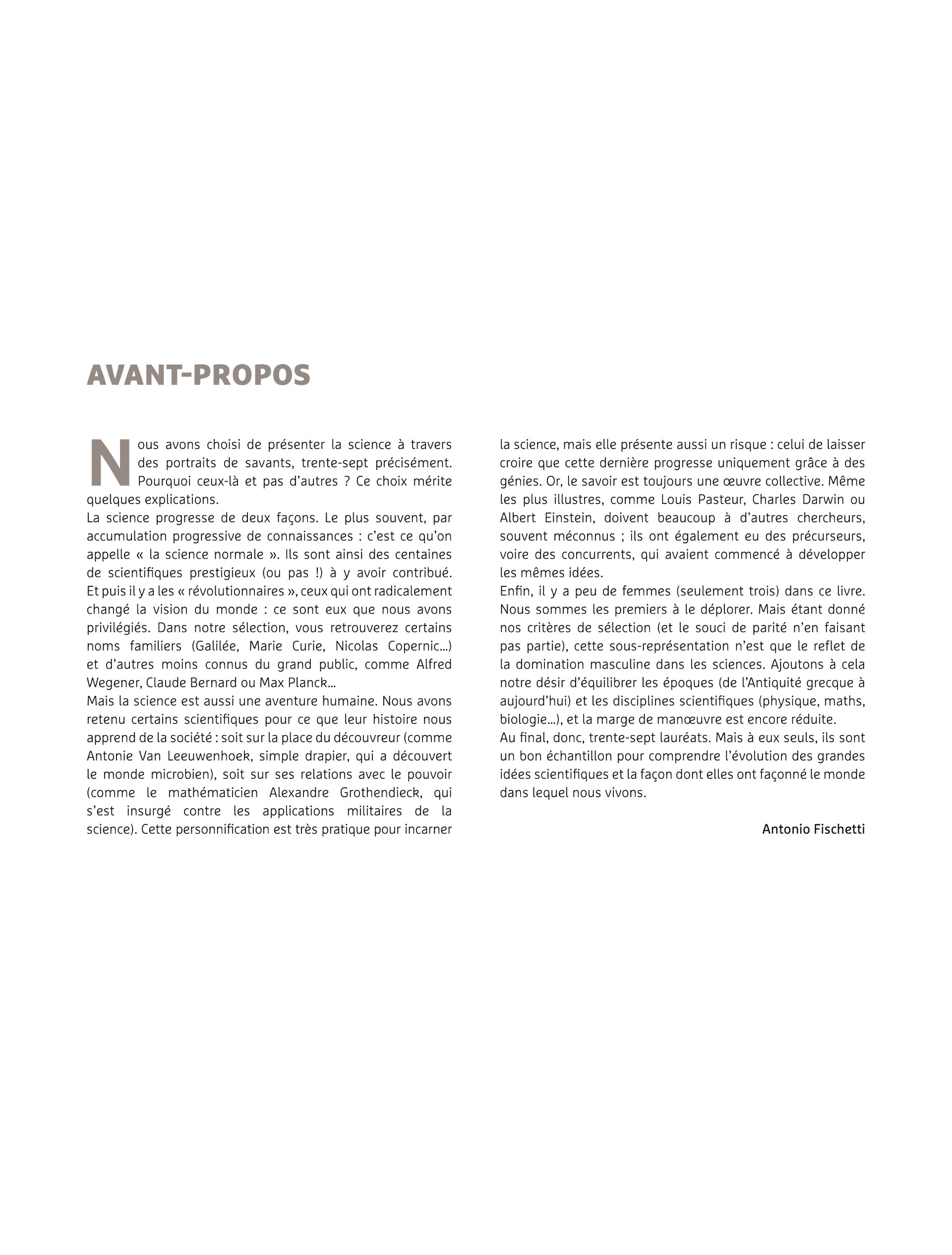 Les époques sont balayées, depuis les anciens Grecs, tels Pythagore ou Thalès, jusqu'à des scientifiques encore vivants, comme la généticienne Emmanuelle Charpentier.