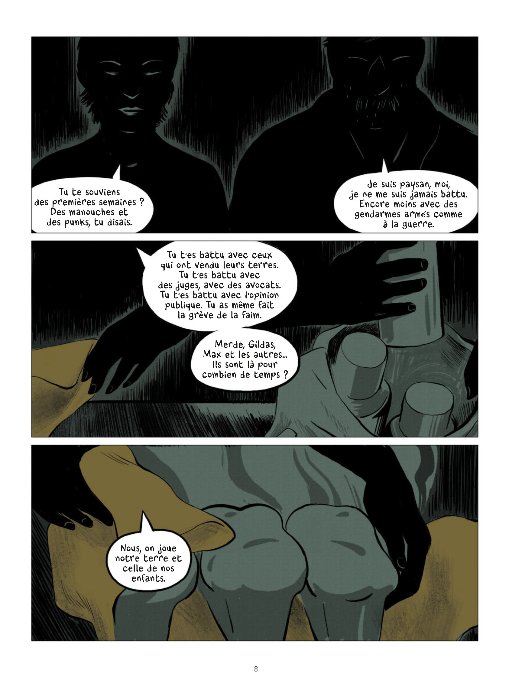 Le 17 janvier 2018, le projet est officiellement abandonné. Entre ces deux dates, les zadistes résistent, s’organisent collectivement, cultivent, avec l’aide des paysans restés sur place, des terres dans le bocage, rêvent d’une autre façon de vivre : « Nous sommes une armée de rêveurs (rêveuses) et pour cette raison nous sommes invincibles. »