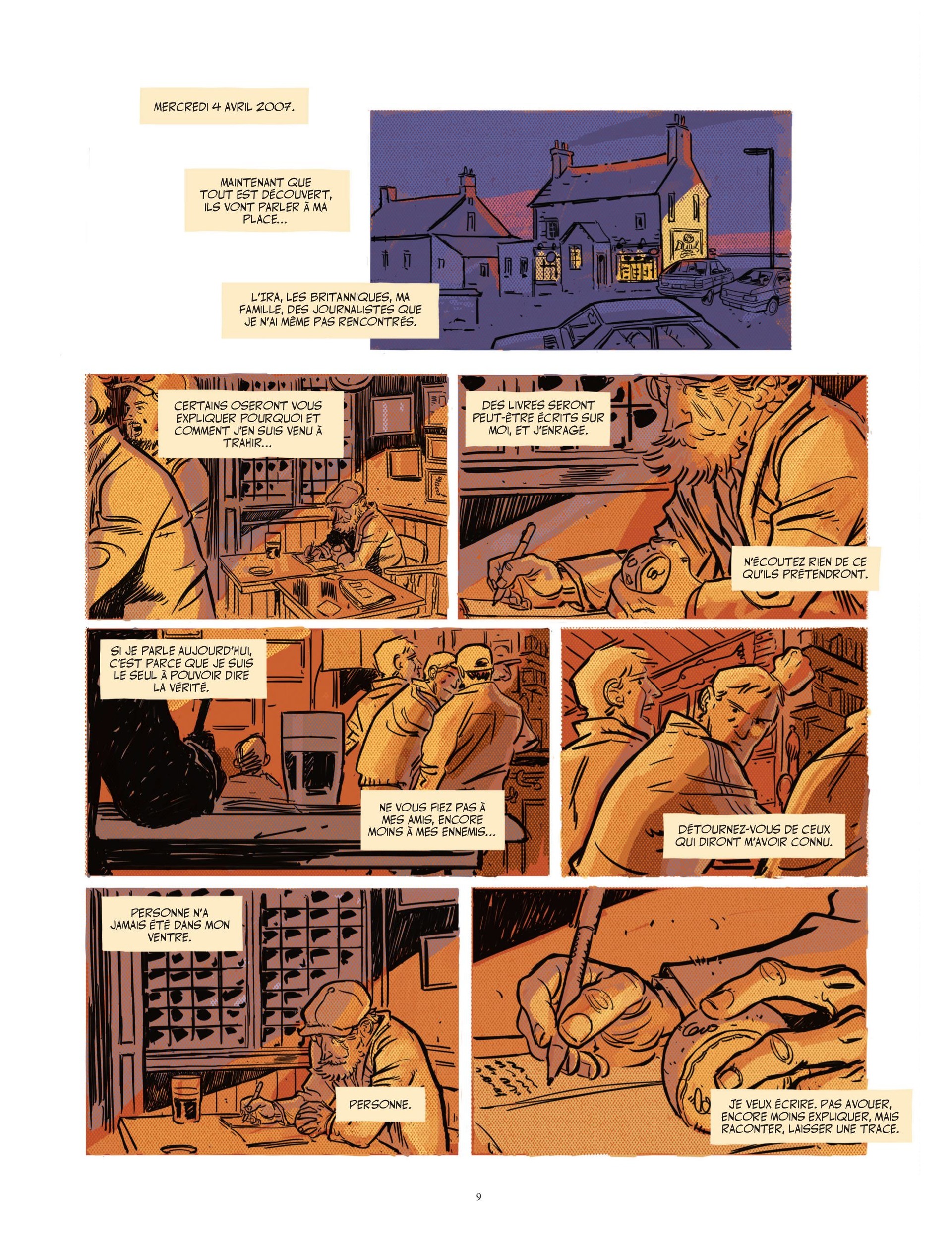 Tyrone Meehan figure mythique de l'IRA et traître à la cause nationaliste irlandaise pendant une vingtaine d'années a été dénoncé par les Anglais. "Maintenant que tout est découvert, ils vont parler à ma place. L'IRA, les Britanniques, ma famille, mes proches, des journalistes que je n'ai même jamais rencontrés. Certains oseront vous expliquer pourquoi et comment j'en suis venu à trahir. Des livres seront peut-être écrits sur moi, et j'enrage. N'écoutez rien de ce qu'ils prétendront. Ne vous fiez pas à mes ennemis, encore moins à mes amis. Détournez-vous de ceux qui diront m'avoir connu. Personne n'a jamais été dans mon ventre, personne. Si je parle aujourd'hui, c'est parce que je suis le seul à pouvoir dire la vérité. Parce qu'après moi, j'espère le silence". Tyrone Meehan raconte sa vie gâchée, la violence familiale, sa confusion jusqu'à sa trahison.