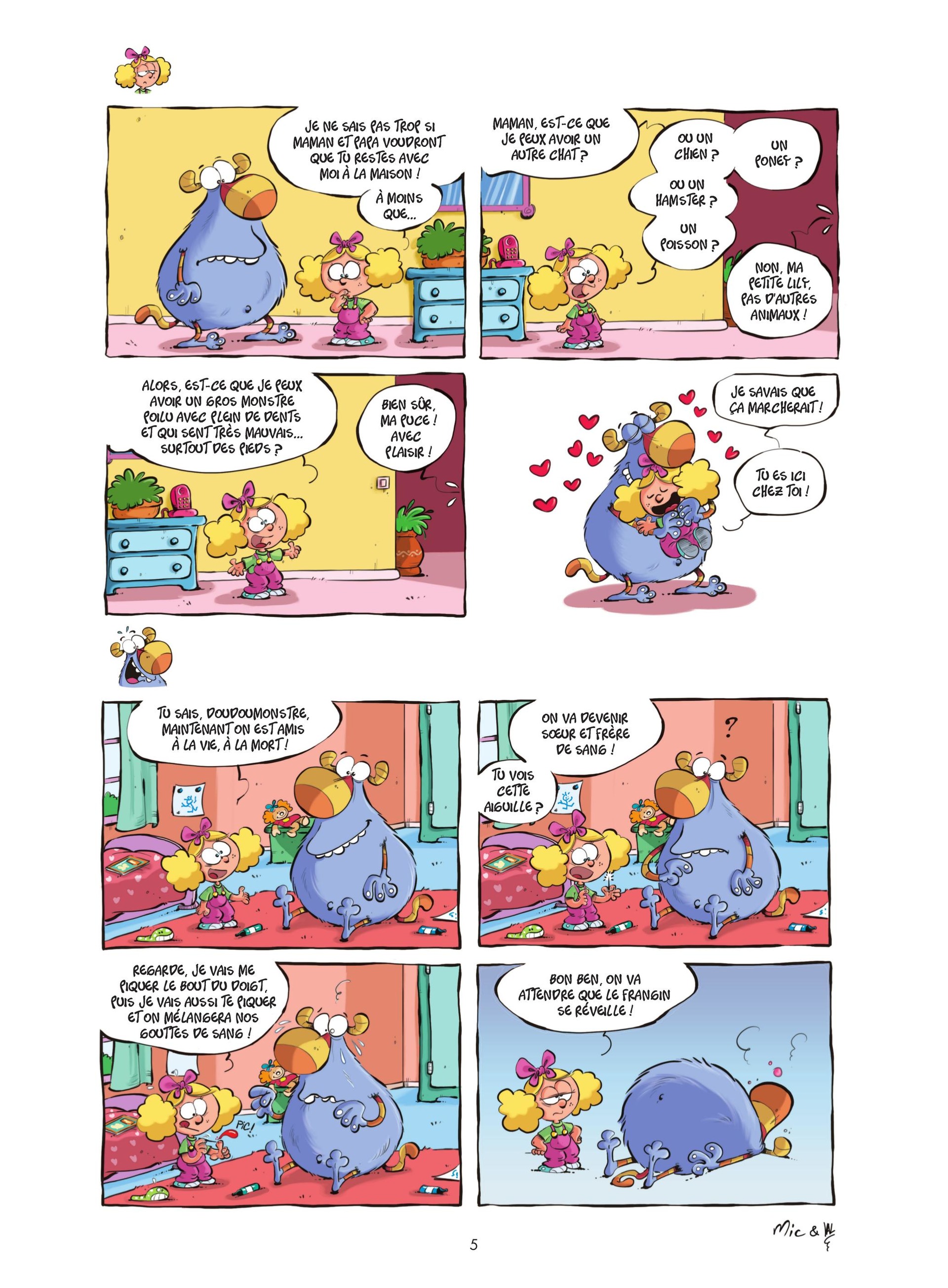 Quand Lily découvre un monstre dans sa chambre, elle n’a pas peur du tout. C’est vrai qu’il est grand, qu’il est fort et qu’il sent des pieds. Mais il sait faire des bulles-cœur avec ses fesses et, surtout, il fait des câlins tout doux ! Alors, entre Lily et Doudou-monstre, c’est tout de suite un roman d’amitié qui commence. Et si c’est dur à accepter pour les parents, pour les amis et surtout pour le chat de la famille, ce n’est pas grave. Parce qu’un copain comme celui-là, on n’en trouve pas tous les jours.