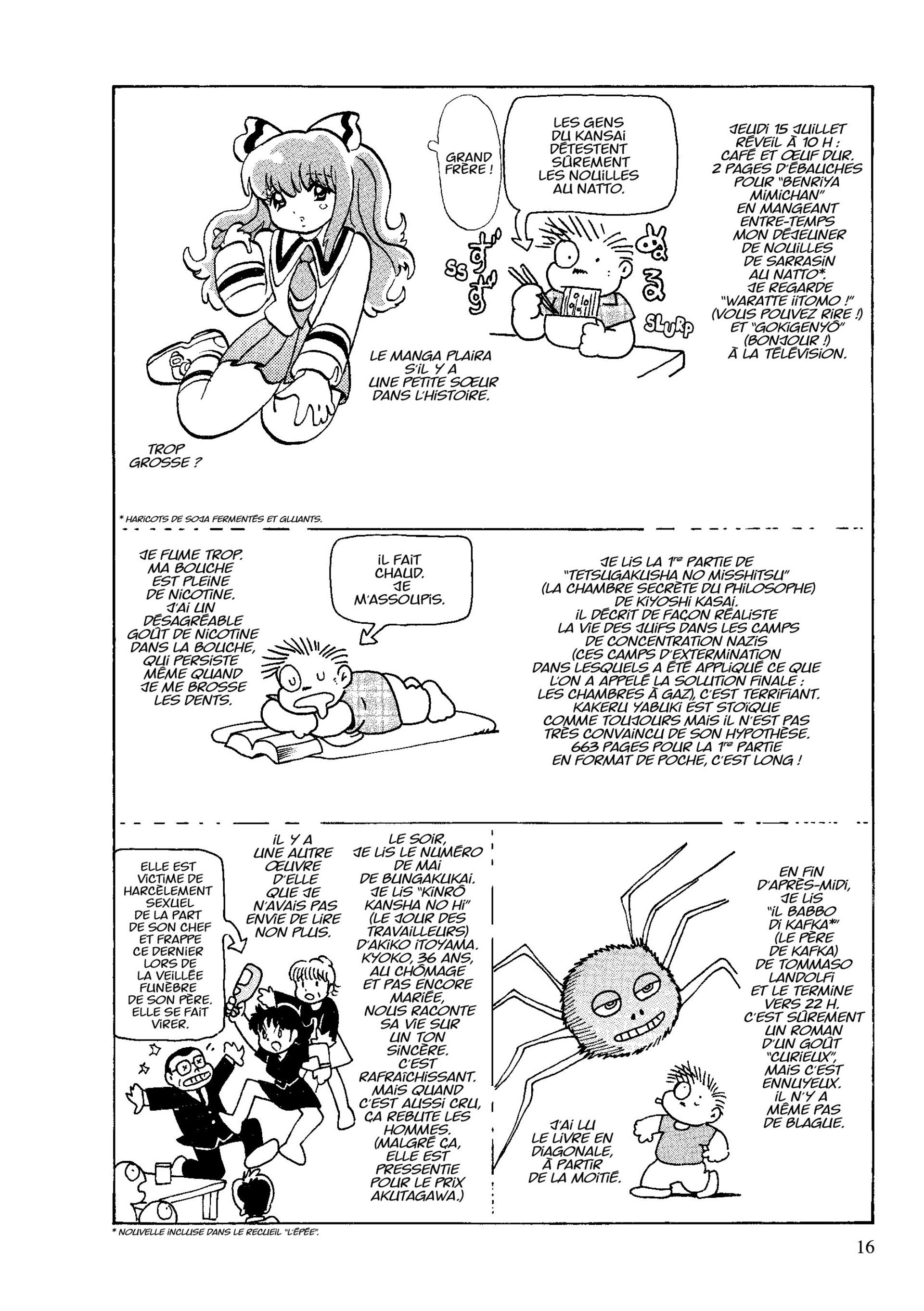 Constamment ponctué d’anecdotes et de réactions à brûle-pourpoint, le récit d’Hideo Azuma n’en demeure pas moins empreint d’une véritable sincérité.