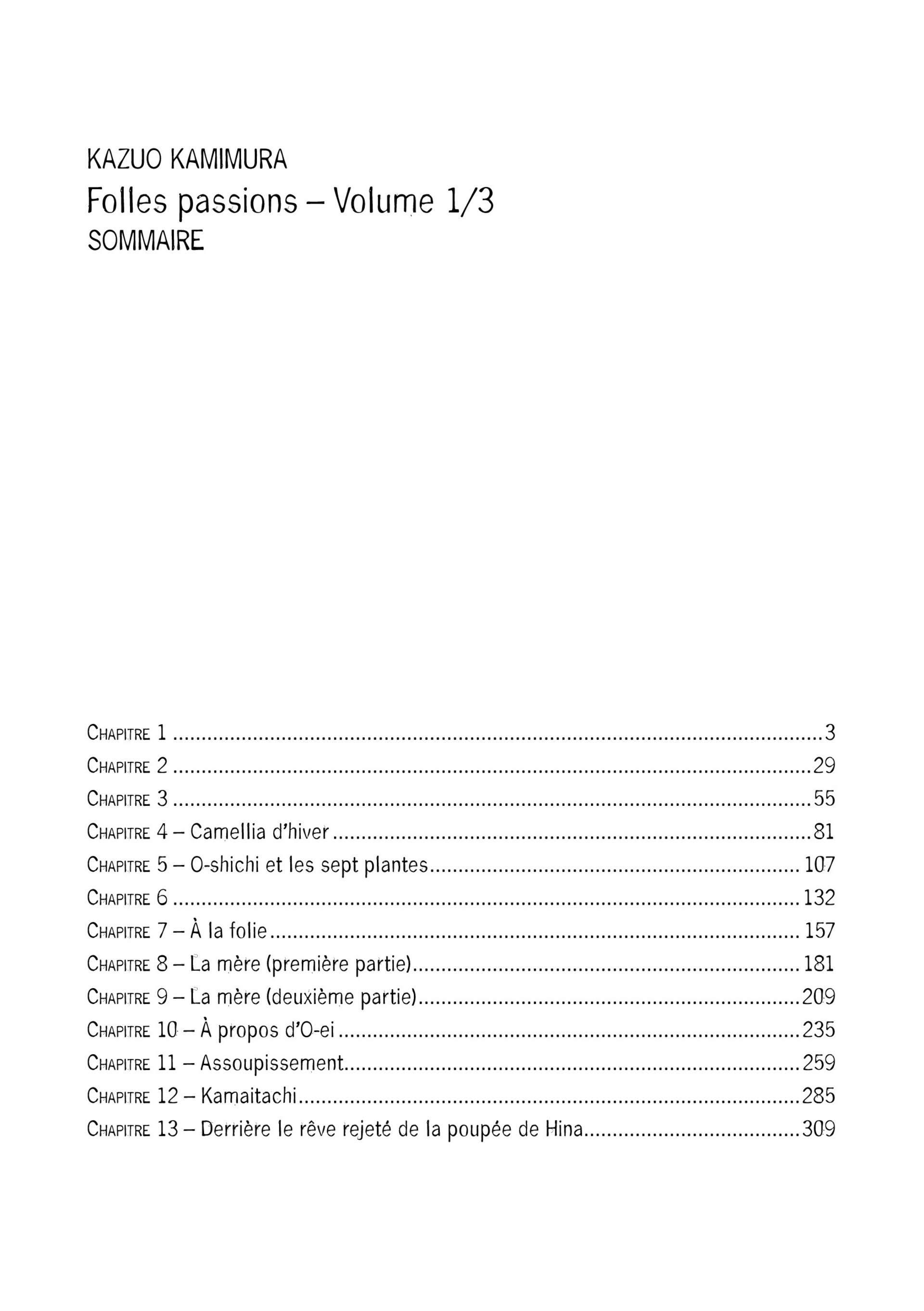 Au fil des chapitres, Kazuo Kamimura nous montre jusqu’où la passion peut conduire les êtres. De celle du dessin pour Hokusai et Sutehachi, à la passion amoureuse des jeunes gens, c’est la force de ces sentiments qui emporte avec violence et déraison qu’il nous donne à voir. Kazuo Kamimura, que l’on a appelé le peintre de l’ère Shôwa, était un grand admirateur de Hokusai. Il a peut être investi une partie de lui-même dans le personnage de Sutehachi, en particulier dans le sentiment du jeune homme de ne pas être à la hauteur de Hokusai.