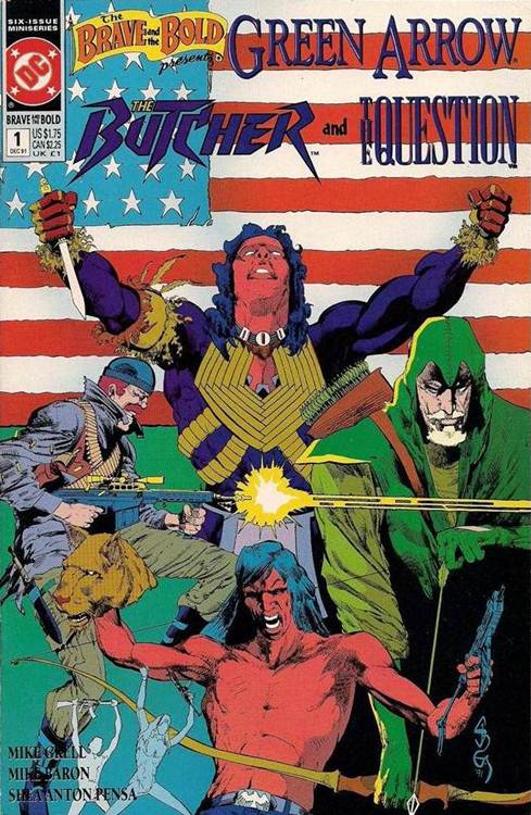 In the good old days, the title THE BRAVE AND THE BOLD stood for the best in team-up action and adventure. Those days are back again as DC Comics revives the original team-up title for a 6-issue miniseries starring Green Arrow, the Butcher, Black Canary and the Question! In the forests of the Pacific Northwest, Green Arrow uncovers a strange alliance of American Indians and Irish terrorists. In Seattle, Black Canary looks into a scalping murder of a lumber industry executive. John Butcher infiltrates an Amerind terrorist group...and Vic Sage, the Question, has questions about everything that's happening!