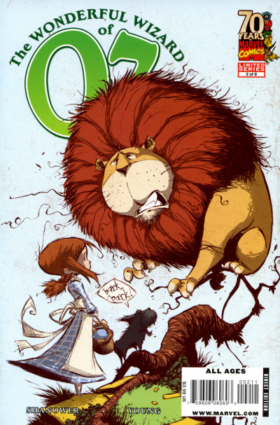 Double origin issue! Find out how both the Scarecrow and the Tin Woodman came to be. Romance and dismemberment, spontaneous life and evil spells—this issue has all sorts of surprises. Plus, you’ve never seen a Cowardly Lion before like Skottie Young’s big bashful ball of fur! Join young Kansas farm girl Dorothy on the road through the Land of Oz as she collects companions with severe identity issues.