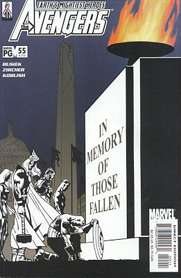 6Dans Avengers #55, solidement dessiné par Patrick Zircher, Kurt Busiek range en quelque sorte les jouets, tout en faisant quelques rappels à certains de ses épisodes précédents. Dernier adieu s'ouvre en effet sur la cour martiale de Carol Danvers, qui a tué le Maître du Monde pendant le conflit contre Kang. L'issue est cette fois plus heureuse pour l'héroïne car les Avengers reconnaissent que l'us...