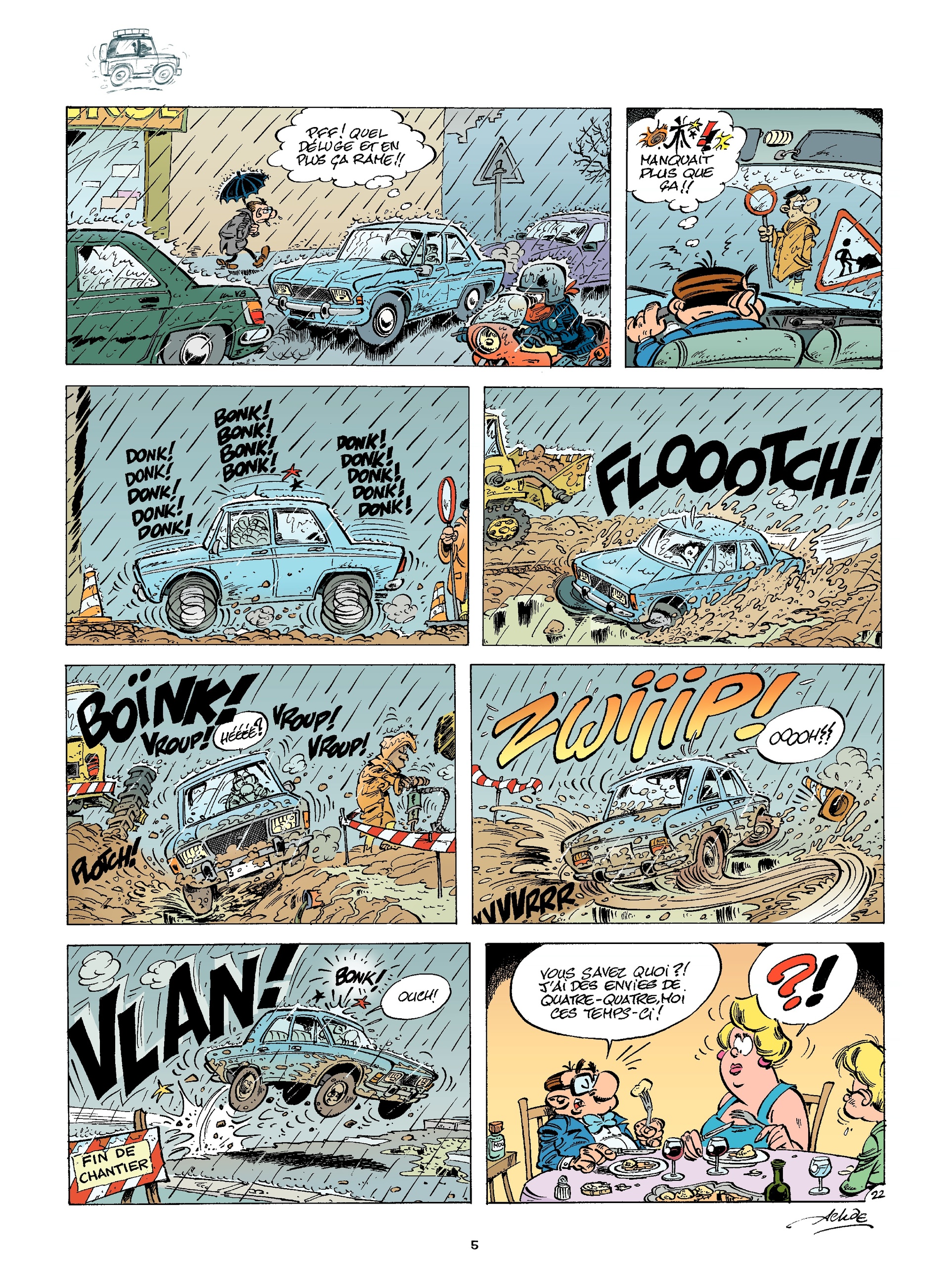 Attachez votre ceinture abdominale, allumez vos zygomatiques, et embrayez sur le rire. La bête noire de cet album qui décoiffe ? Une caisse, une tire, une tôle, un bourrin, un char, une bête, une carriole, une charrette, un carrosse, une bagnole, une vache à lait, une voiture, bref : l’AU-TO-MO-BILE.