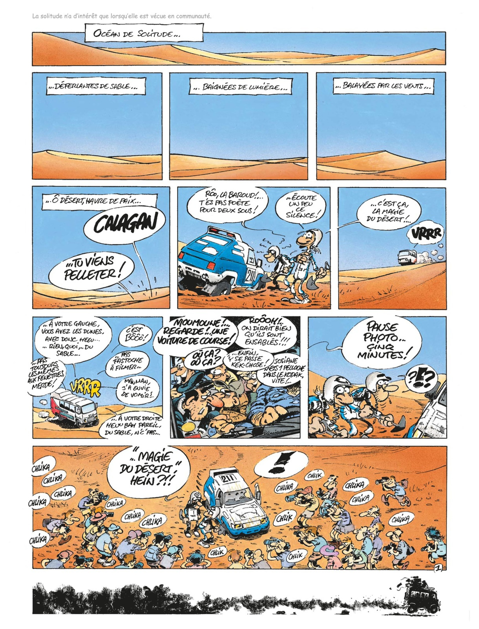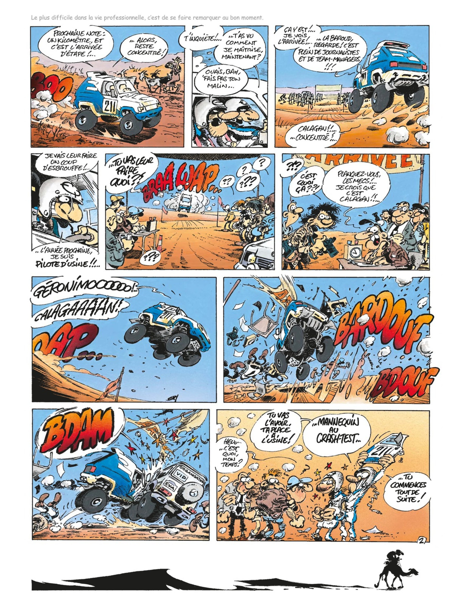 Trouver les bornes lorsqu'on est perdu dans cette foutue brousse, éviter les baobabs, faire face aux crevaisons dans la pierraille, réparer son moteur lorsqu'on est à plusieurs centaines de kilomètres de toute habitation, où manger, comment dormir... voici quelques-uns des problèmes quotidiens que devront affronter Calagan et ses compagnons de route, tous héros de l'impossible.
