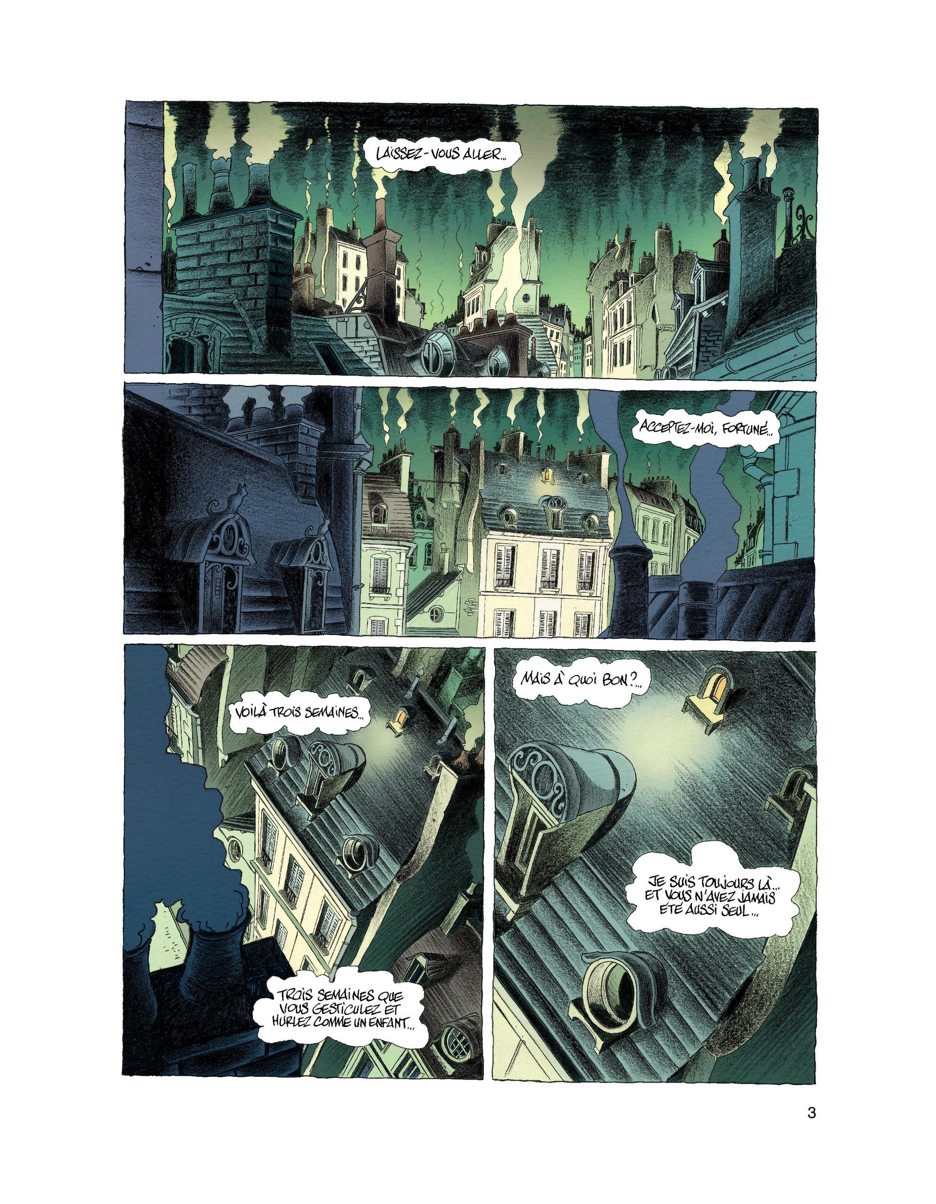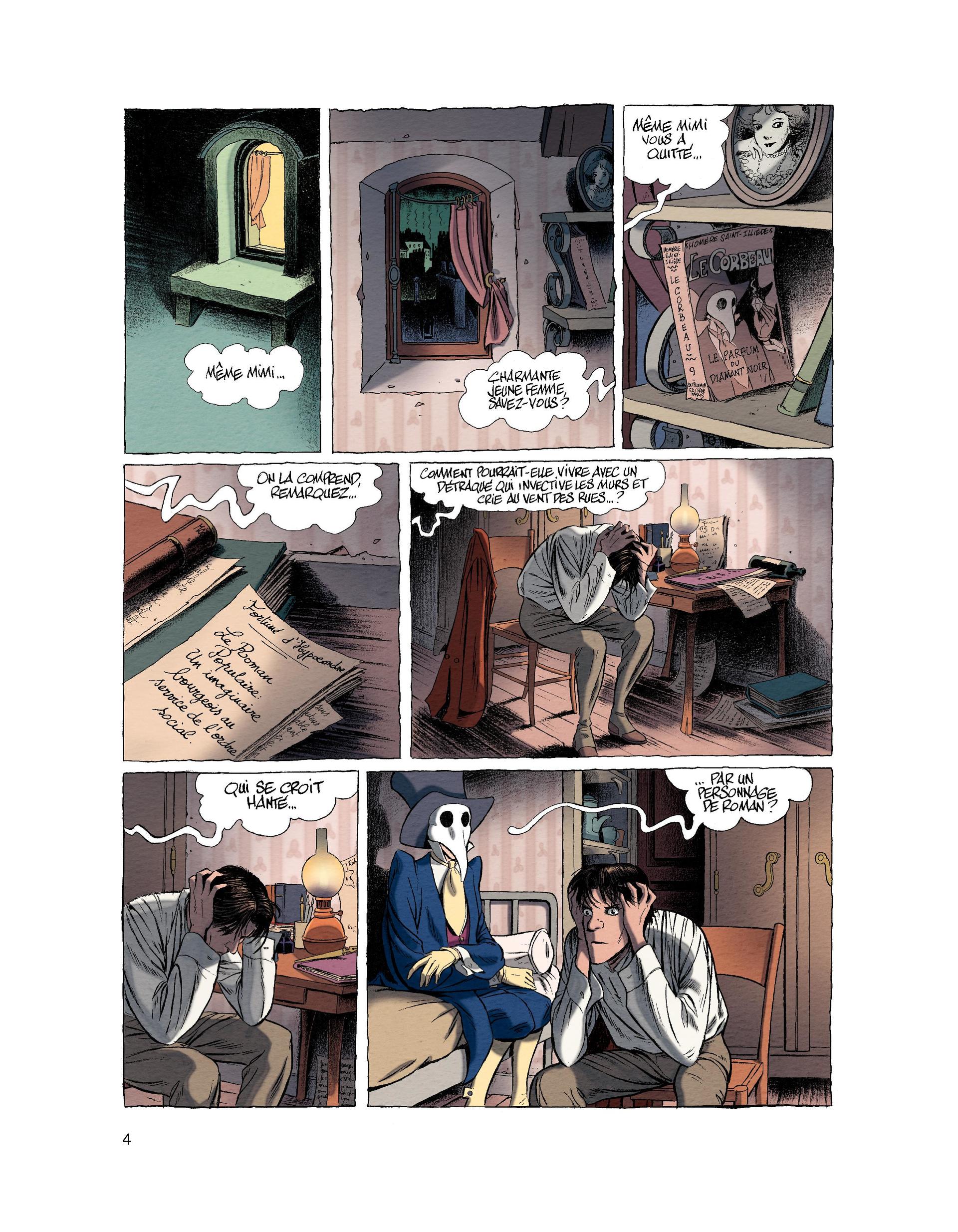 "Le Corbeau" est le héros de romans de gare éponymes, feuilletons à deux sous, aux intrigues aussi rebondissantes que convenues. Fortuné se faisait un plaisir d'étriller cette piètre littérature dans ses critiques. Mais voilà que "Le Corbeau" est devant lui et ne le quitte plus, lui rendant la vie infernale. Il a terriblement besoin de l'aide de Fortuné pour le conduire à son créateur et faire de sa vie un chef d'oeuvre inoubliable en l'immortalisant pour toujours en génie du Mal !