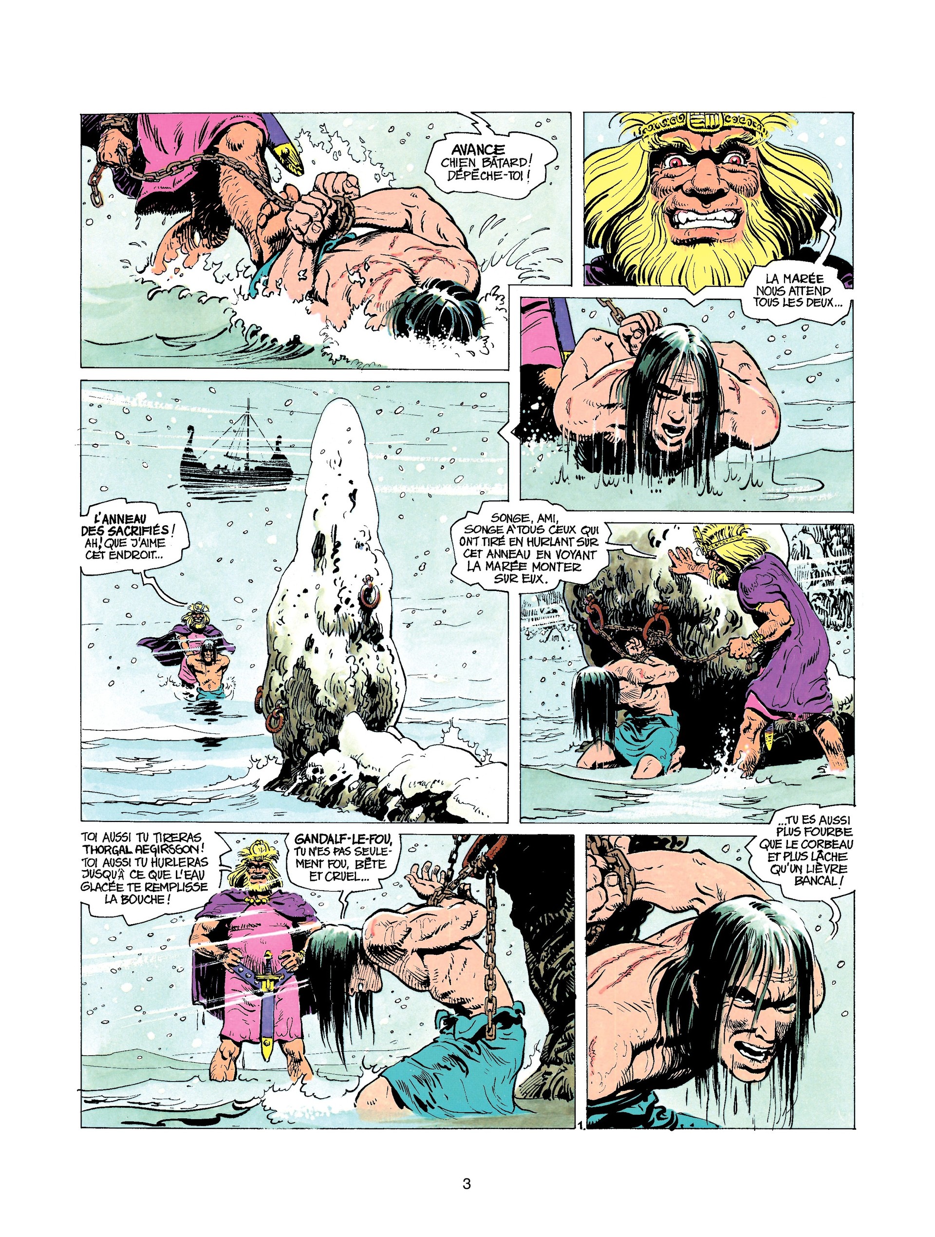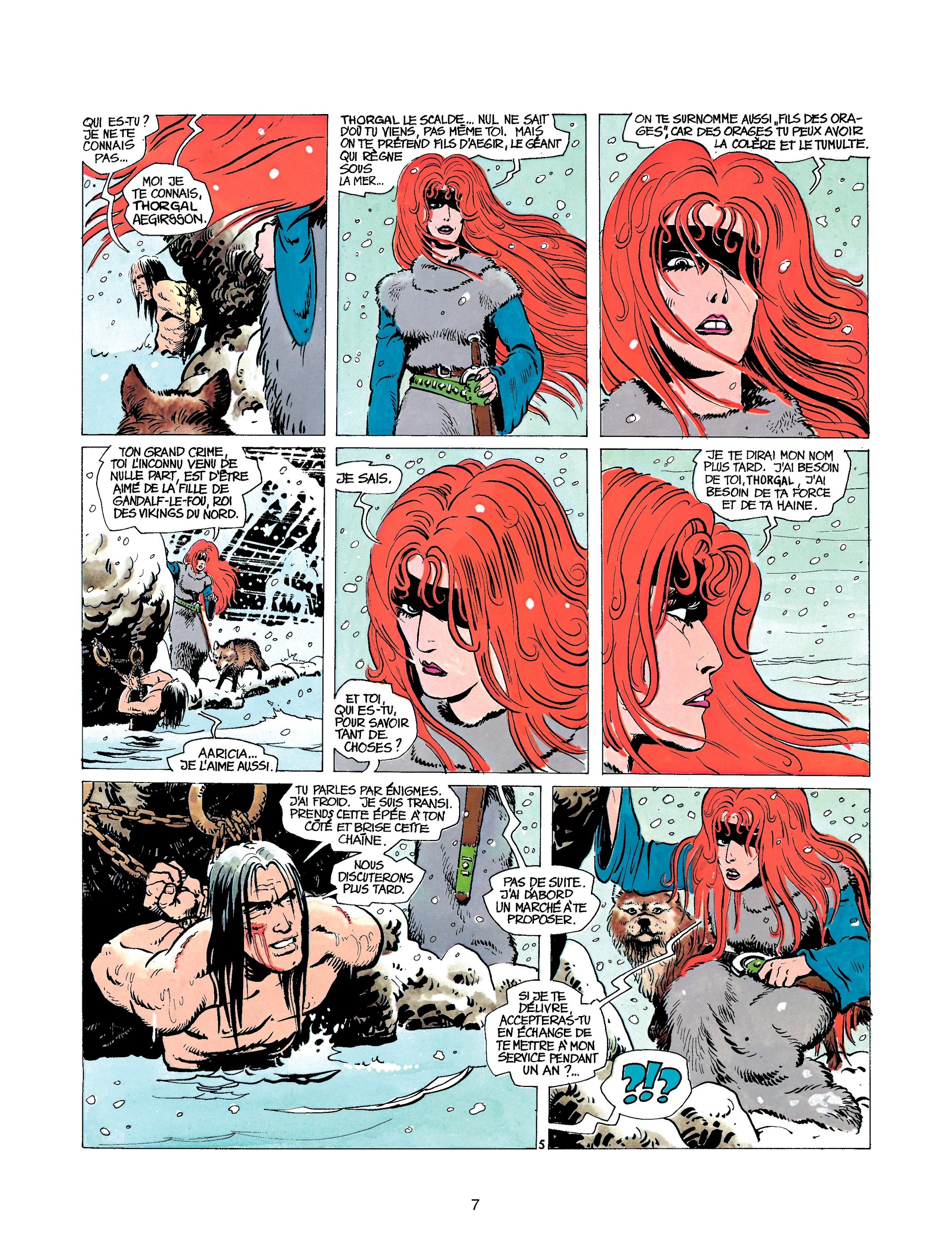Thorgal est condamné à mourir pour avoir aimé et être aimé par la fille de Gandalf-Le-Fou, roi des vikings du nord cruel et sans pitié, Aaricia. Ce dernier l'attache lui même à l'anneau des sacrifiés pendant que la mer monte. Pour éviter la mort, Thorgal accepte le marché d'une femme mystérieuse, venue de nul part accompagnée d'un loup. Elle lui propose un étrange marché : une année de sa vie en esclave soumis contre sa liberté. Sa première mission consiste à ramener les anneaux de Freyr gardés par un nain et un géant...