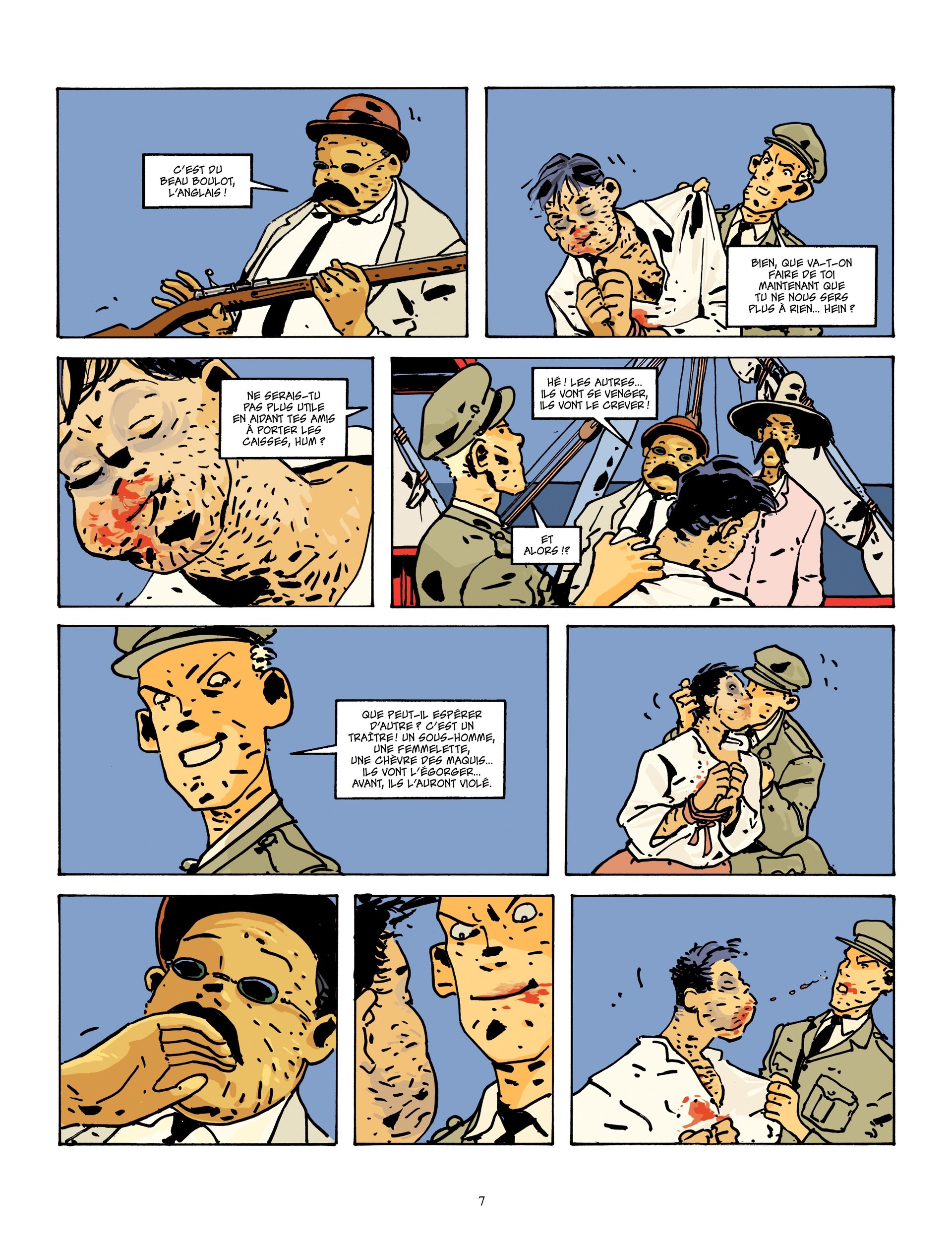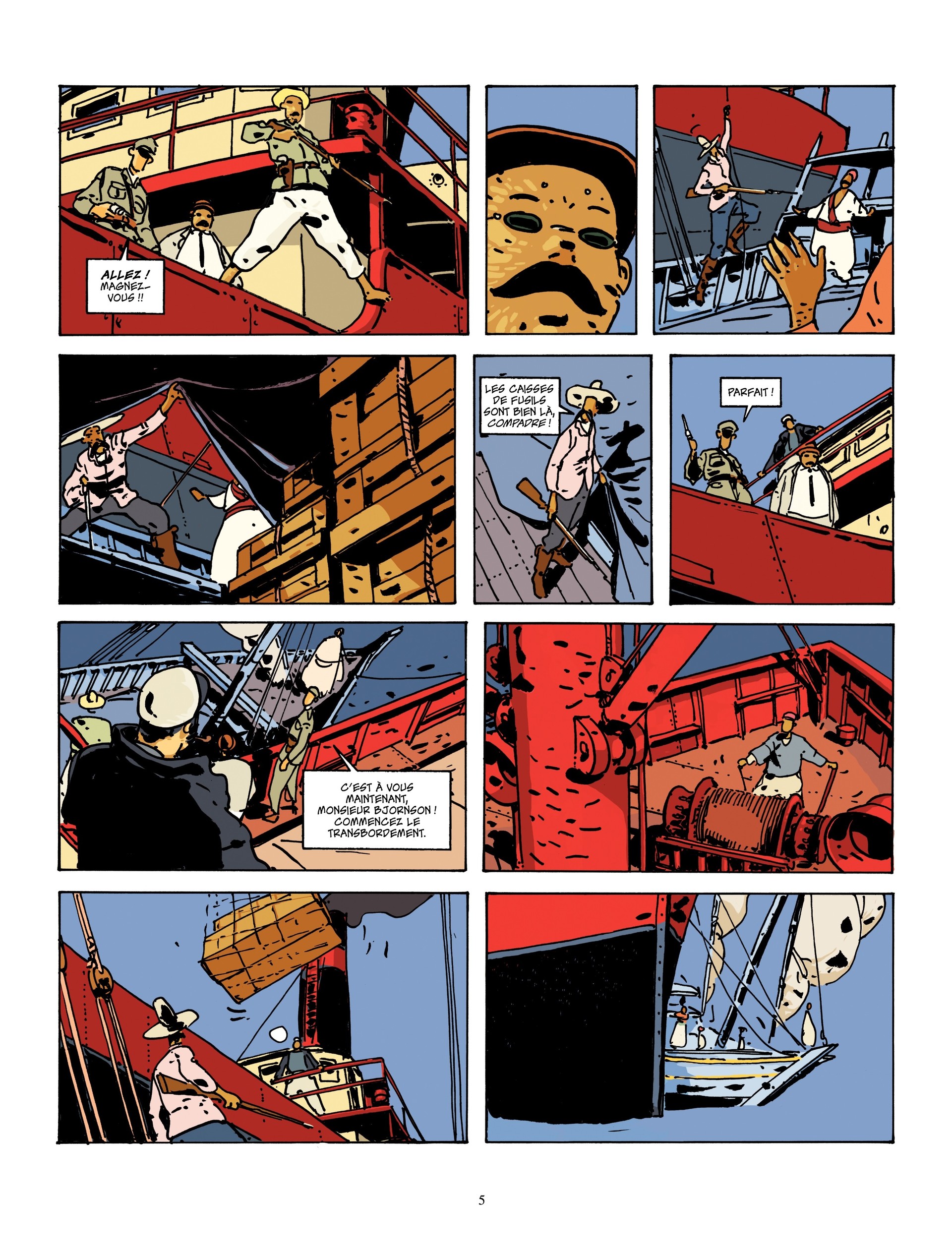 8Il y a de l’Hugo Pratt dans le dessin et dans l’ambiance ambigüe, un côté Corto Maltese assumée dans le personnage de Mr Bjornson, et dans la retenue du capitaine Tana, dans ses récits désabusés. De l’inventivité dans la mise en page, qui frappe, transfigure le récit, pour lui donner une valeur d’épopée mais aussi de critique de la violence de l’époque (p14-15) Mêlant intrigue de contrebande, ré...