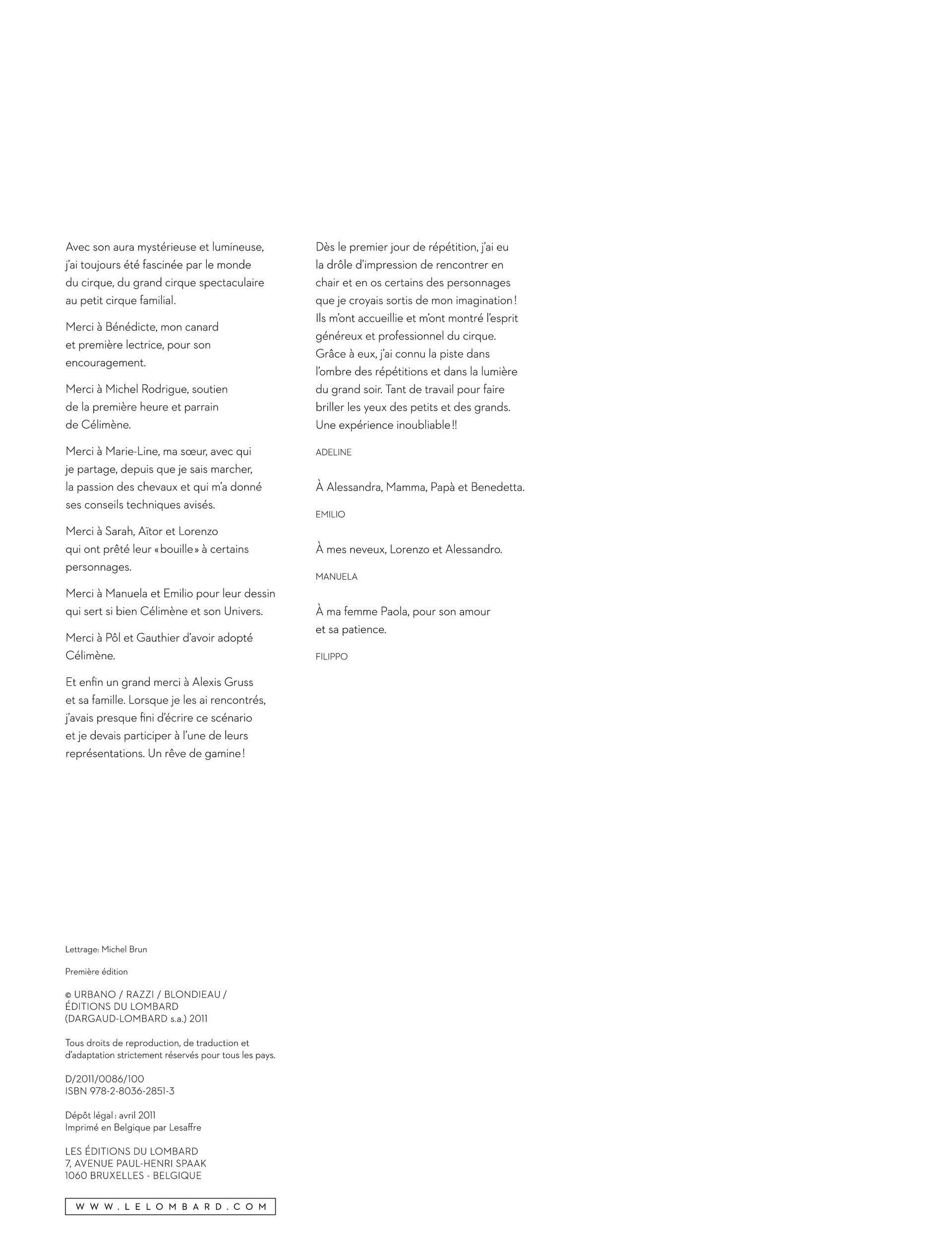 5Oyez, jeunes adolescentes romantiques…cette BD est pour vous ! Bien que la couverture nous présente Célimène à cheval, il ne s’agit pas d’un énième Horseland ou Grand Galop. Marie-Cécile, alias Célimène, est une orpheline de 16 ans, sous la tutelle de ses grands-parents maternels propriétaires d’un haras. Lolie, tante de Célimène, jumelle de sa défunte mère, lui offre pour son anniversaire une...