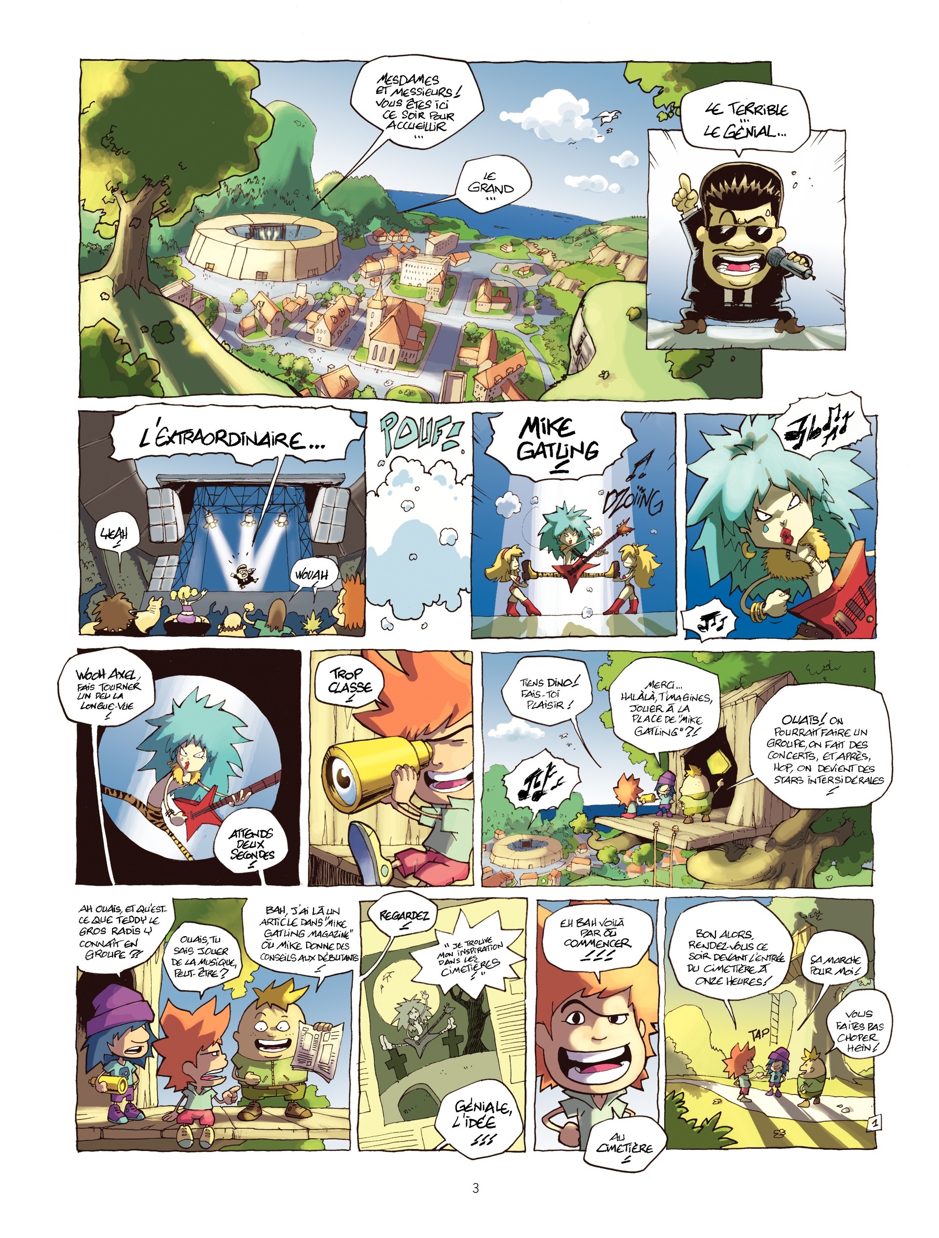 Dans Des stars dans les étoiles, premier tome d'Axel Rock, Moustey et Loyvet mettent en scène l'histoire d'Axel, Dino et Teddy, un trio qui rêvait de devenir... le plus grand groupe rock de l'univers !