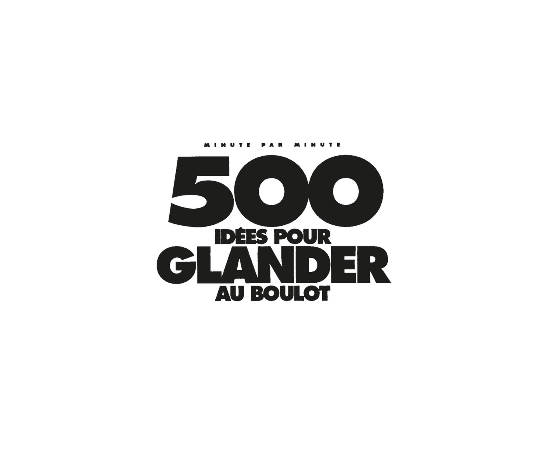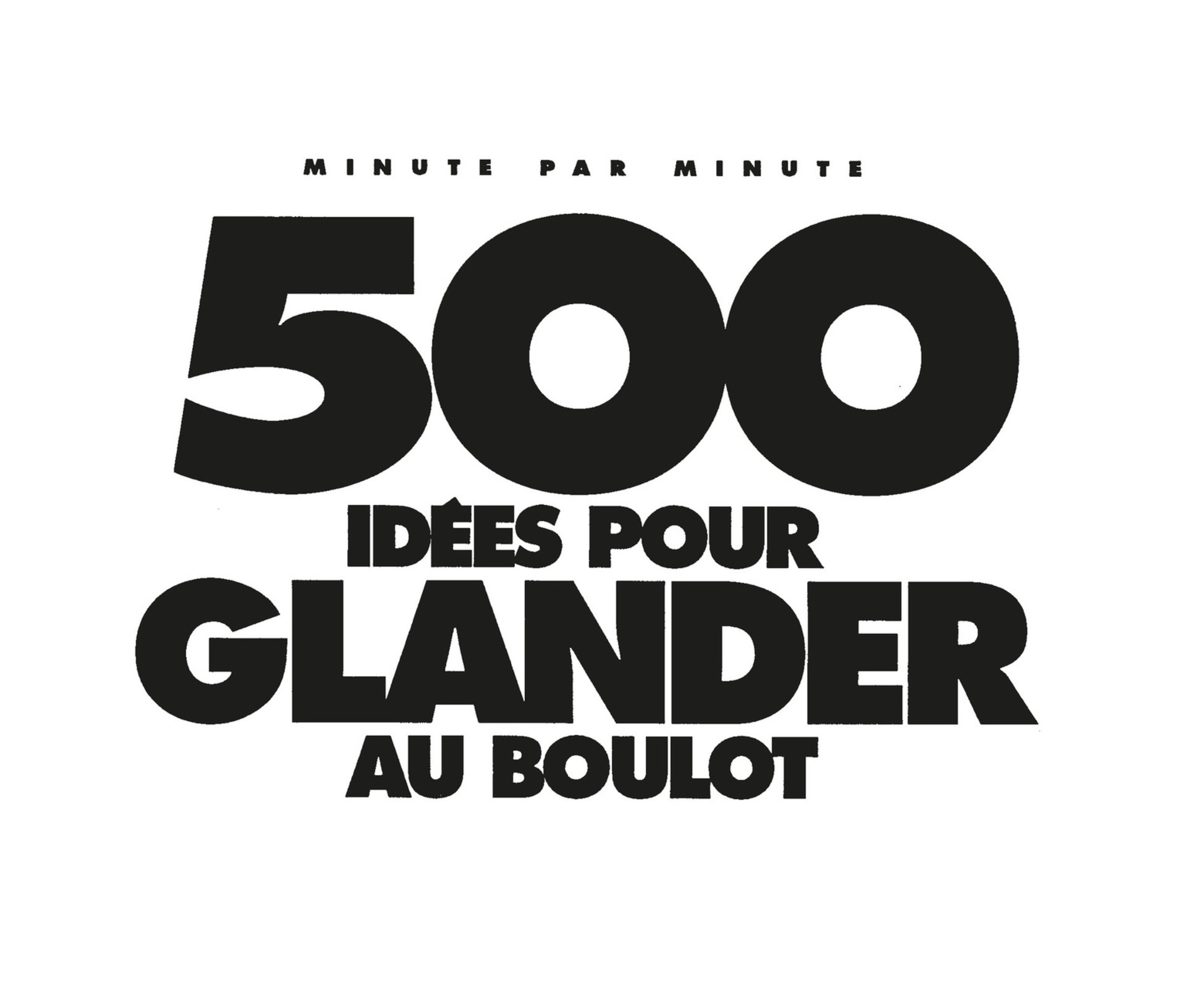 Heureusement, voici 500 idées pour glander au boulot, qui propose, minute par minute, des idées infaillibles pour buller en toute tranquillité. À raison d'une page par minute, ce sont des centaines d'astuces qui sont proposées, toutes illustrées par un dessin explicatif. Cet ouvrage de plus de 500 pages, vendu seulement 78 FF, est une bible pour le flemmard salarié et s'imposera vite comme un des éléments indispensables d'un tiroir de bureau, au même titre qu'un stylo, une gomme, et le calendrier des vacances...
