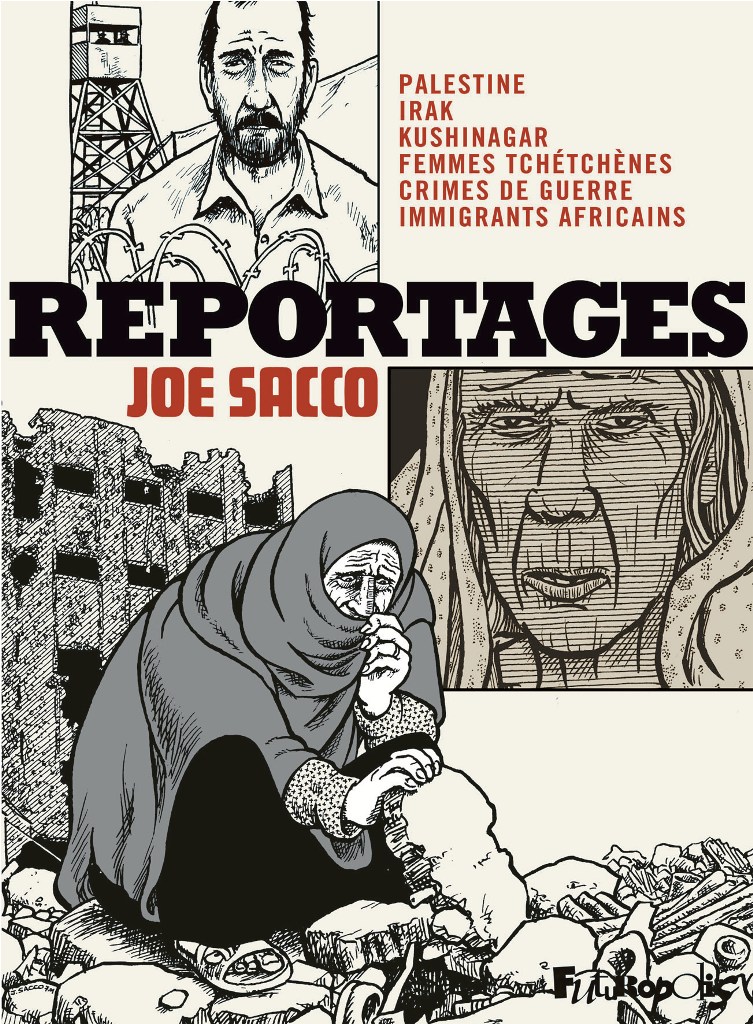 En parallèle de ses livres documentaires, Joe Sacco travaille régulièrement pour la presse internationale. Reportages est le premier recueil de ses différents articles. Il nous conduit en Irak, auprès des soldats américains et Irakiens, en Palestine, au tribunal pénal international pour l’ex-Yougoslavie de la Haye pour le procès d’un docteur Serbe accusé de génocide, et pour des récits plus longs, auprès des immigrés clandestins débarquant sur l’île de Malte, des intouchables en Inde, et des réfugiés Tchétchènes en Ingouchie. Ce livre est aussi pour Joe Sacco l’occasion de revenir sur son travail, d’expliquer ses méthodes d’investigation, et de replacer la bande dessinée reportage dans le contexte journalistique.