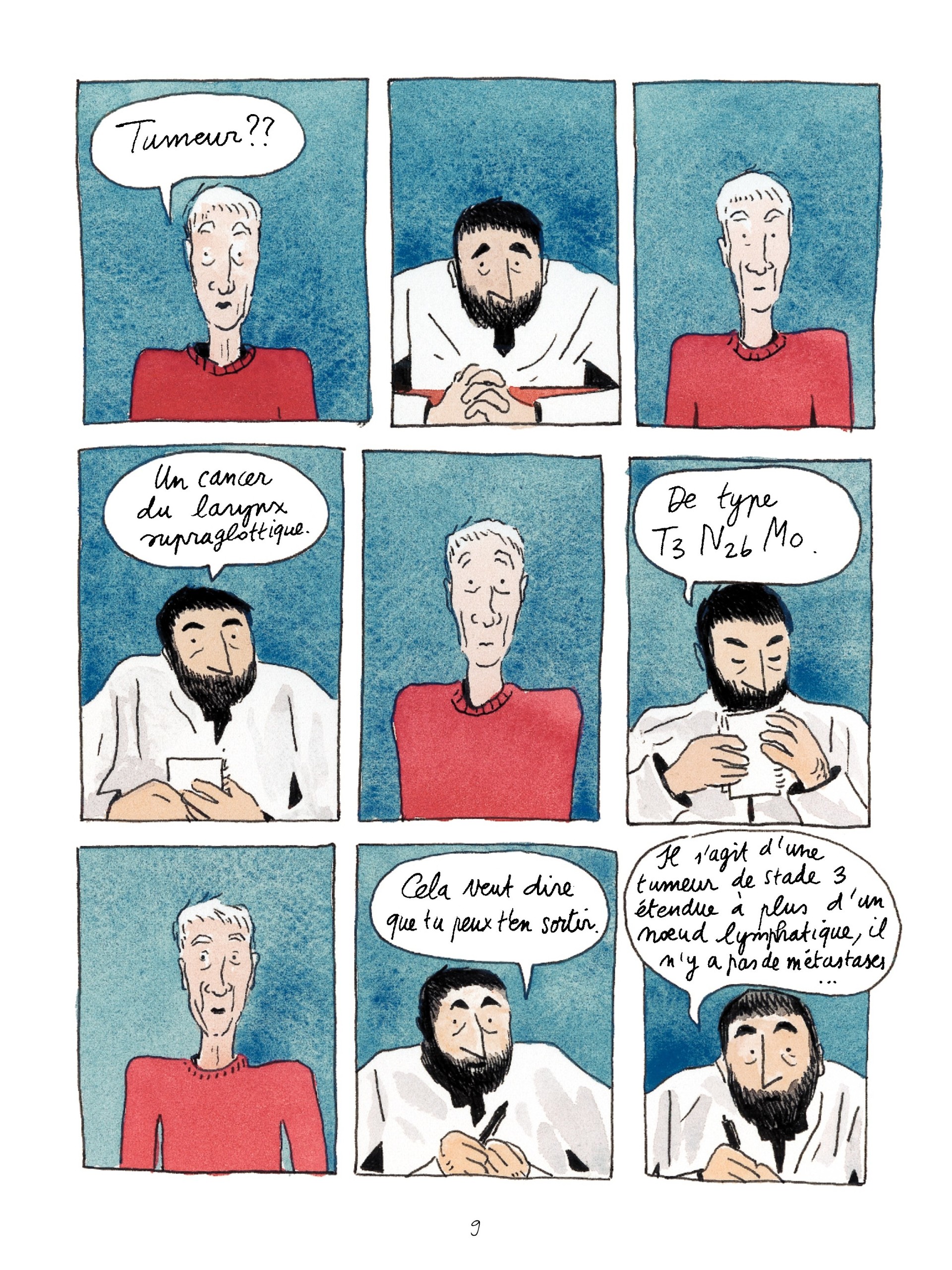 8Le silence est-il d'or ou de plomb? Judith Vanistendael nous livre un roman graphique très juste sur l’impuissance révoltante qu’on peut éprouver à regarder cet homme qu’on aime de tout notre être mourir. Notre père, notre époux. Celui qui choisit d’assumer jusqu’au bout son rôle social de protecteur, de roc, que rien ne semble atteindre : ni la peur de l’inéluctable issue, ni la douleur parce ...