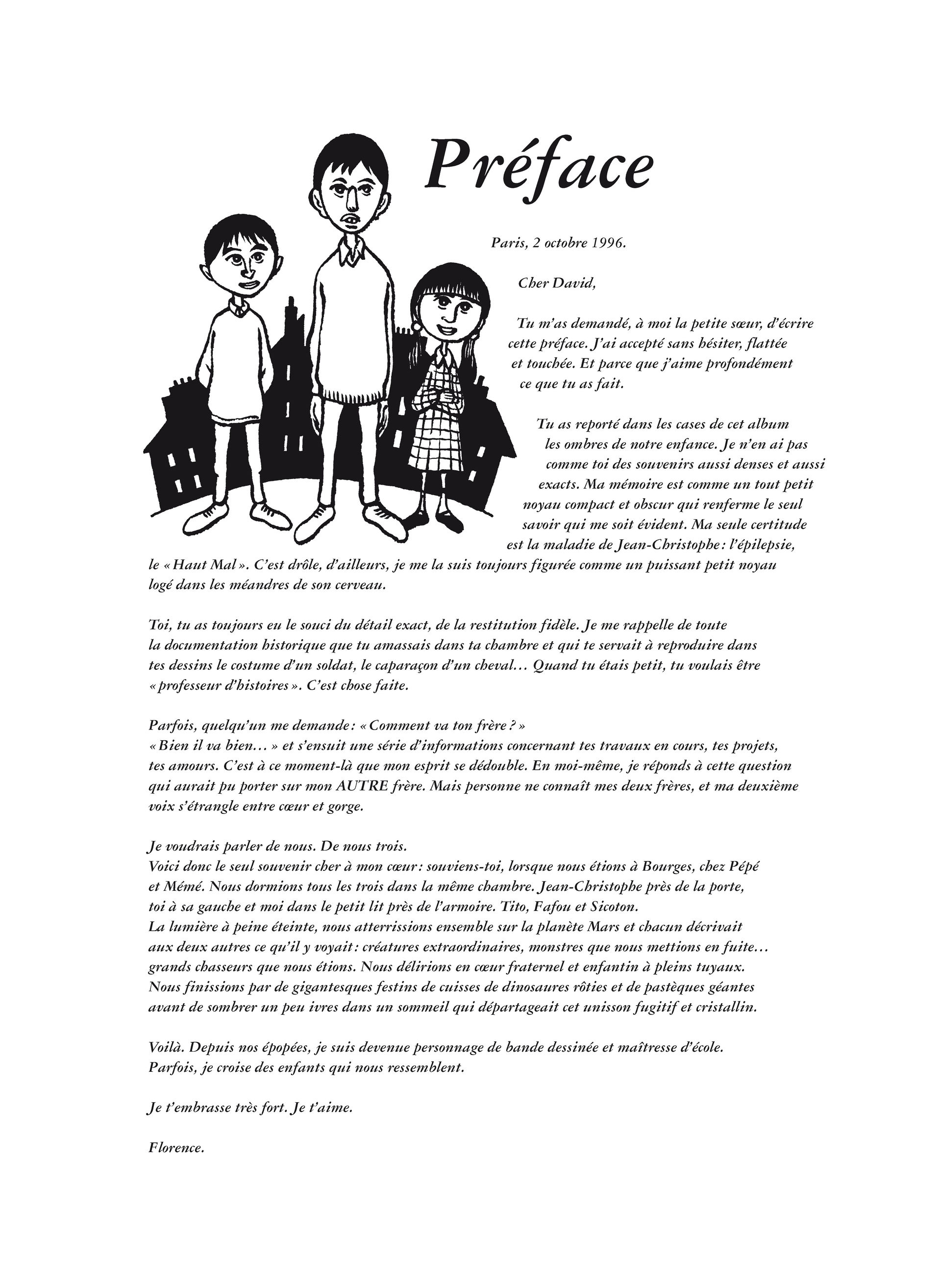 10Cette intégrale reprend les 6 volumes originellement édités séparément. Elle est dense, foisonnante, de noir et de blanc, de dessins oniriques qui se fondent dans un présent étouffant, angoissant, rythmé par les crises d’épilepsie du fils aîné, le frère d'un immense auteur: David B. Aucun artifice narratif. Il ne cache pas ses sentiments aussi forts et violents soient-ils à l'encontre de cette ...