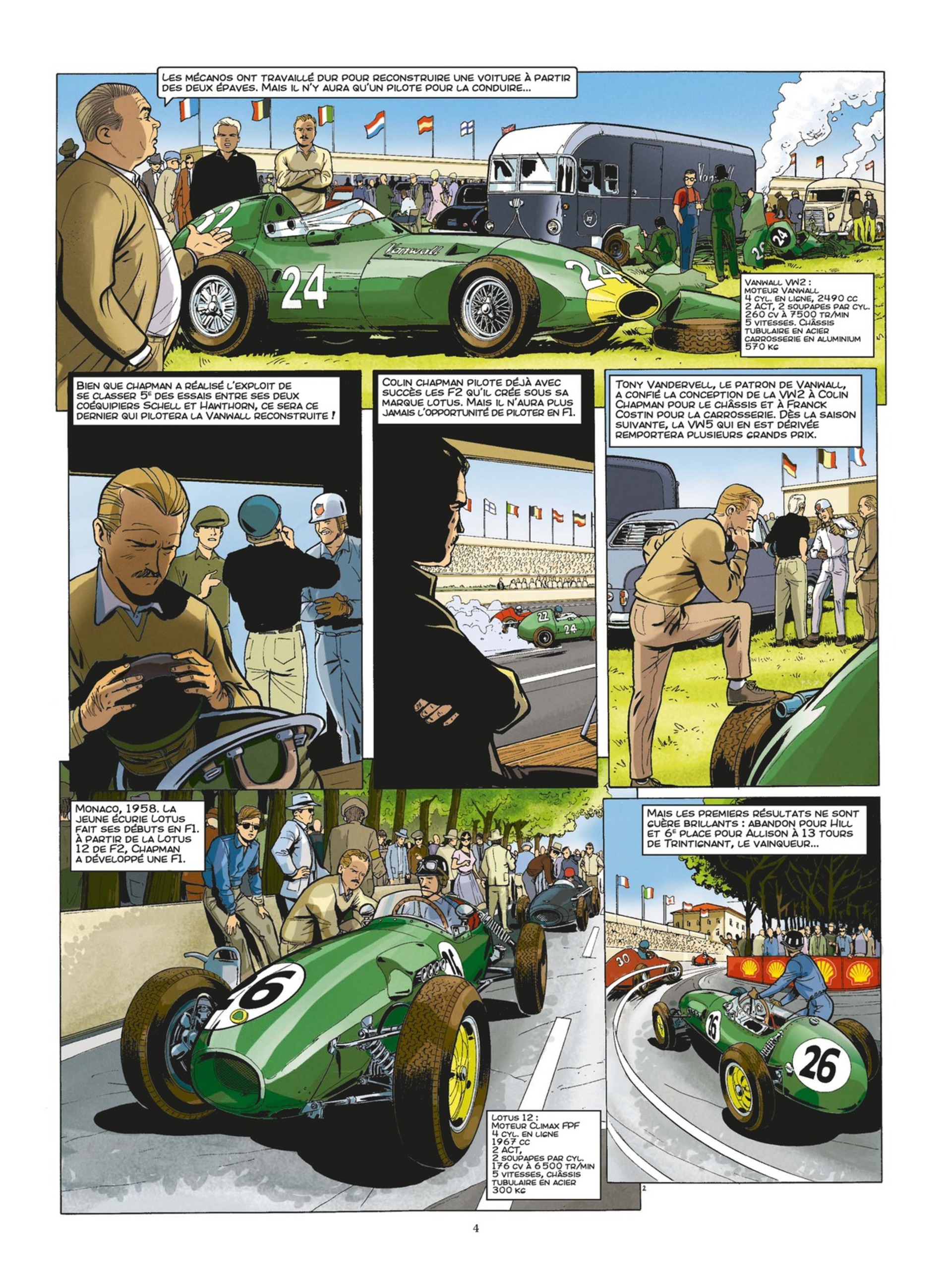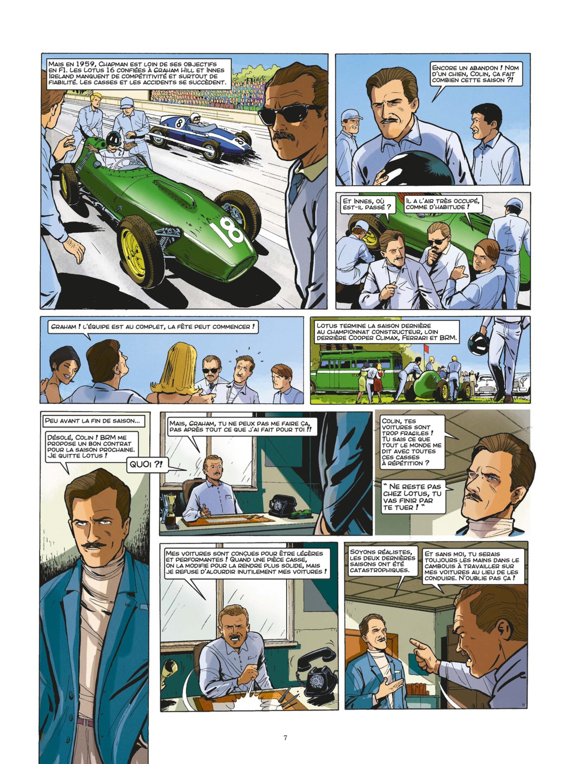 De la naissance des premières voitures artisanales au couronnement suprême au championnat du monde de Formule 1 avec Jim Clark, en passant par la première victoire d'une voiture à moteur arrière à Indianapolis, ce premier volume retrace l'ascension fulgurante de la marque Lotus et de son inventeur que certains considèrent comme le Enzo Ferrari britannique.