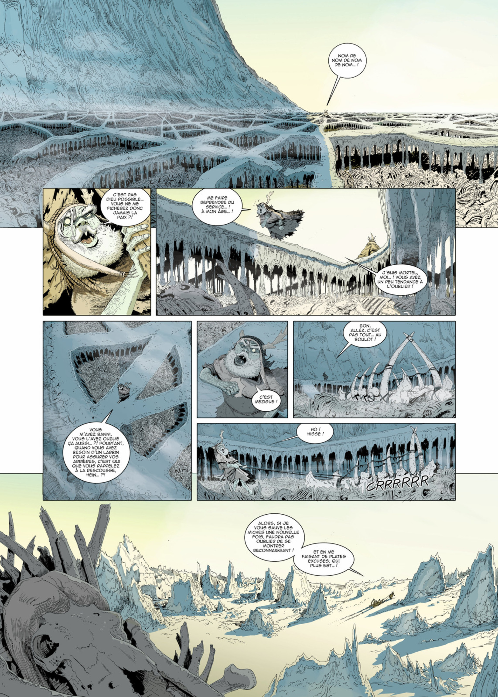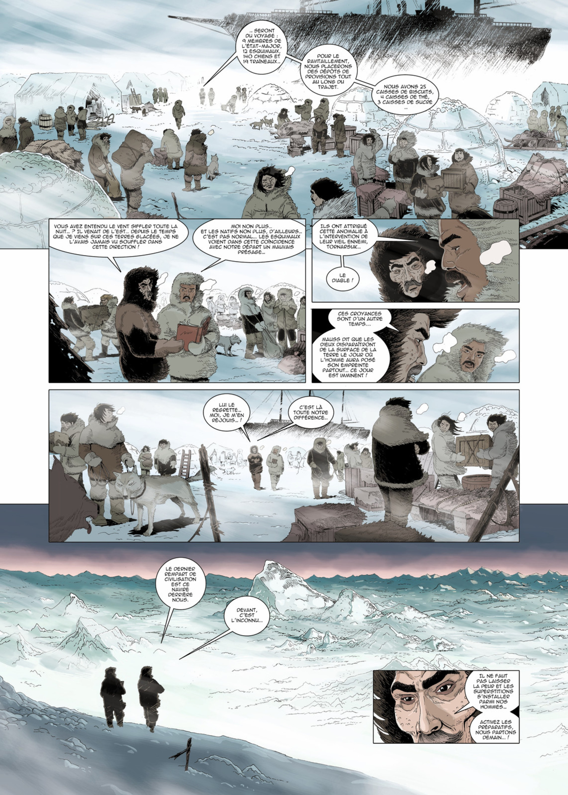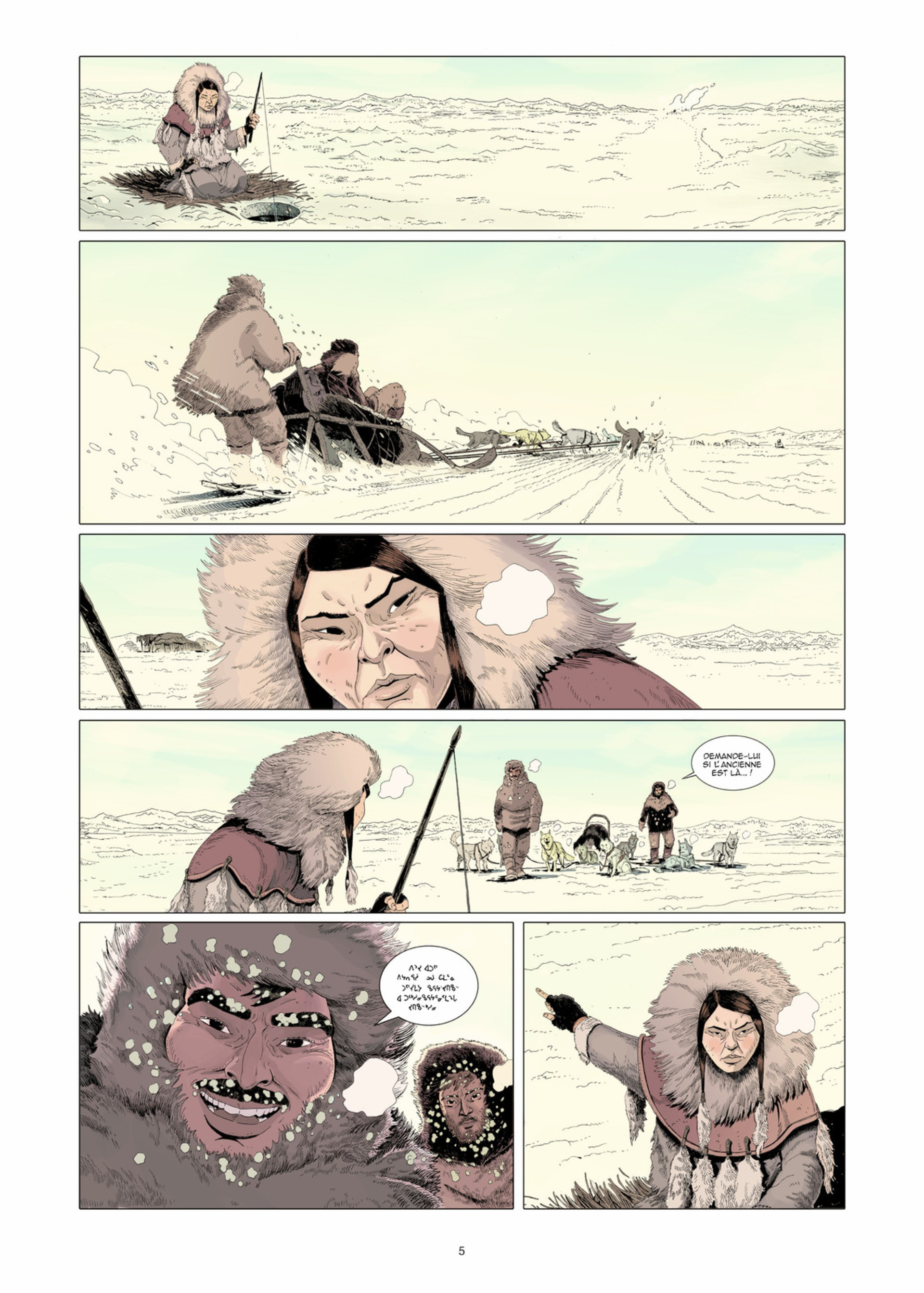 7Quand un album s’habille de bleu, m’entraîne sur la banquise et me raconte une légende aussi envoûtante que celle de ce premier opus, je me laisse gagnée par l'histoire. Les dessins expressifs sont certes statiques et sans fioritures mais collent parfaitement à la froideur qui ressort de ce paysage épuré, de couleurs froides vêtu... Au commencement des mondes, les dieux vivaient dans la Mer et ...