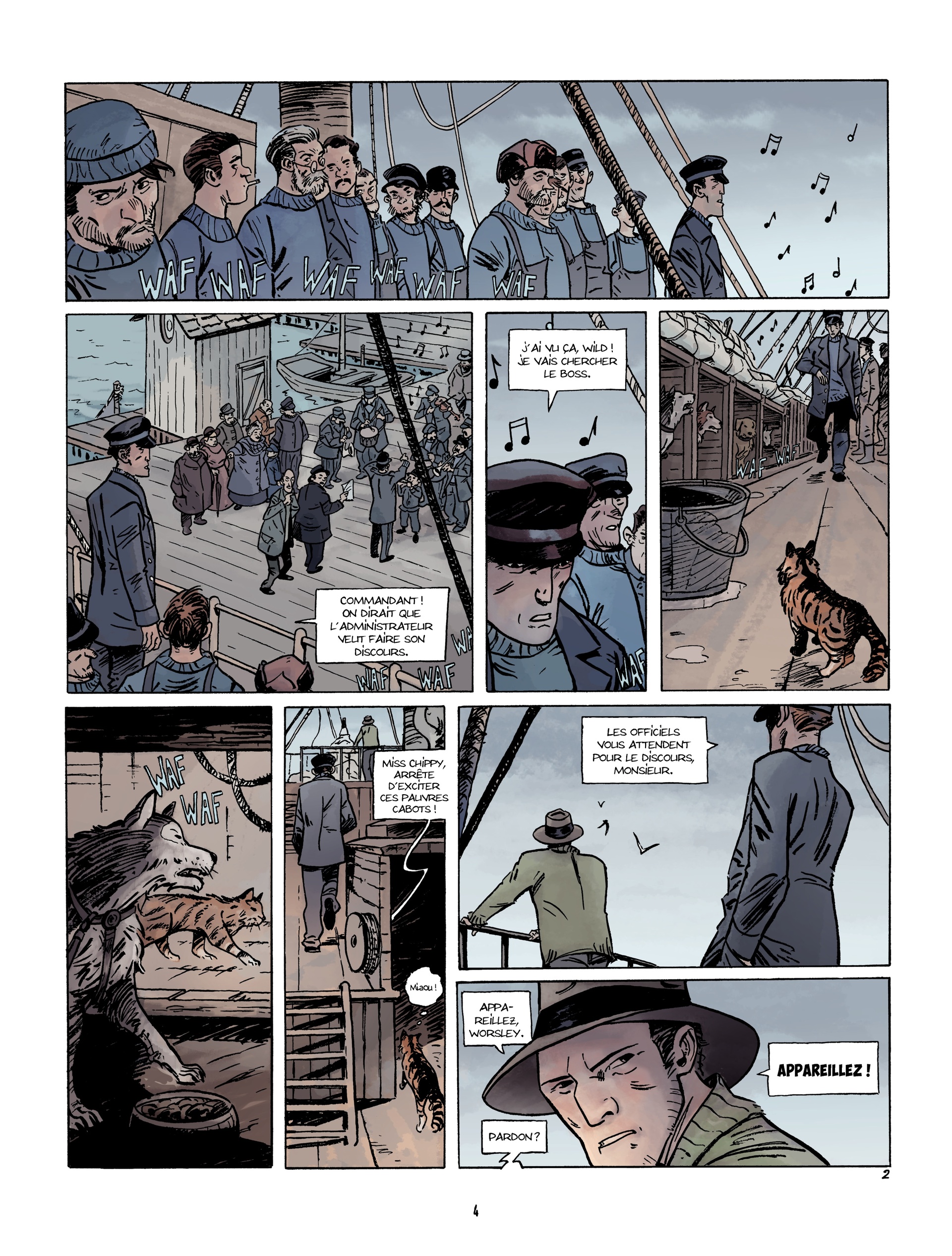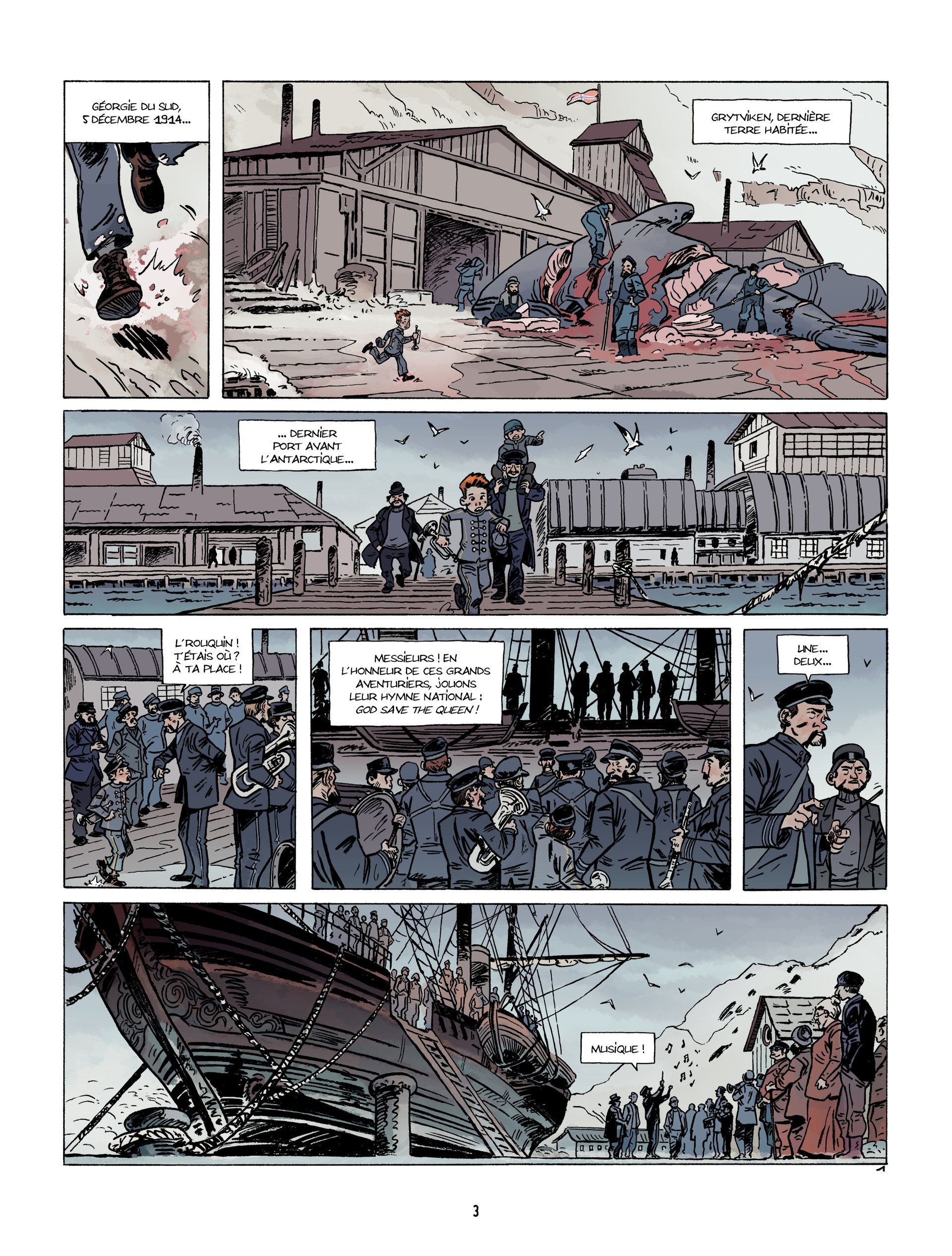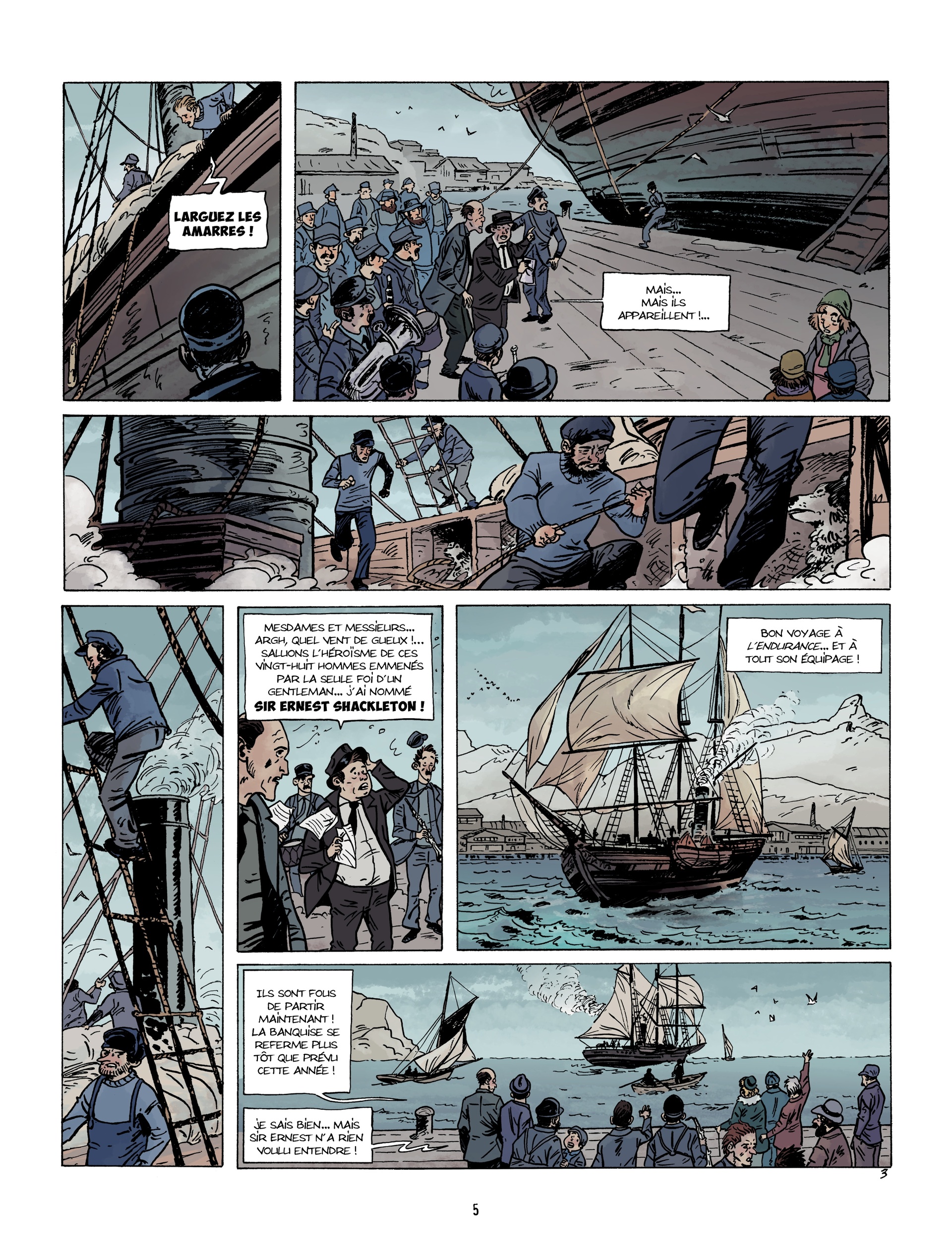 Le 5 décembre 1914, Géorgie du Sud, dernière terre habitée avant l’hostile Pôle Sud. Un navire, nommé L’Endurance, quitte le quai avec à son bord vingt-sept hommes sous le commandement de l’explorateur Sir Ernest Shackleton. C’est le coeur chevillé au ventre et l’appel du blanc au fond de leur âme qu’ils partent rejoindre l’Antarctique et traverser pour la première fois le continent glacé ! Mais un froid exceptionnel les rend prisonniers des glaces. Isolés du monde, sans moyen de communication et avec des ressources limitées, ils devront se serrer les coudes pour survivre.