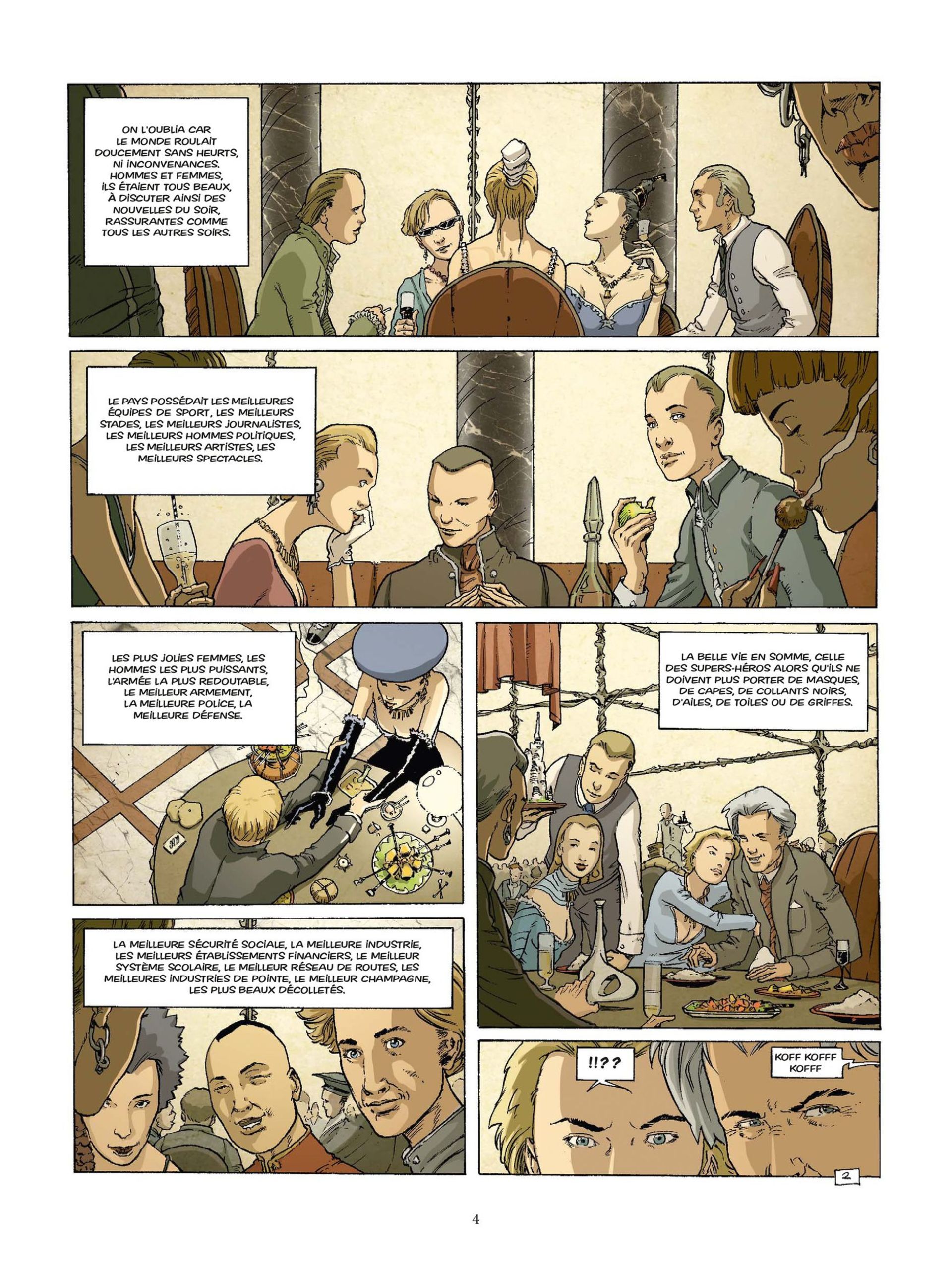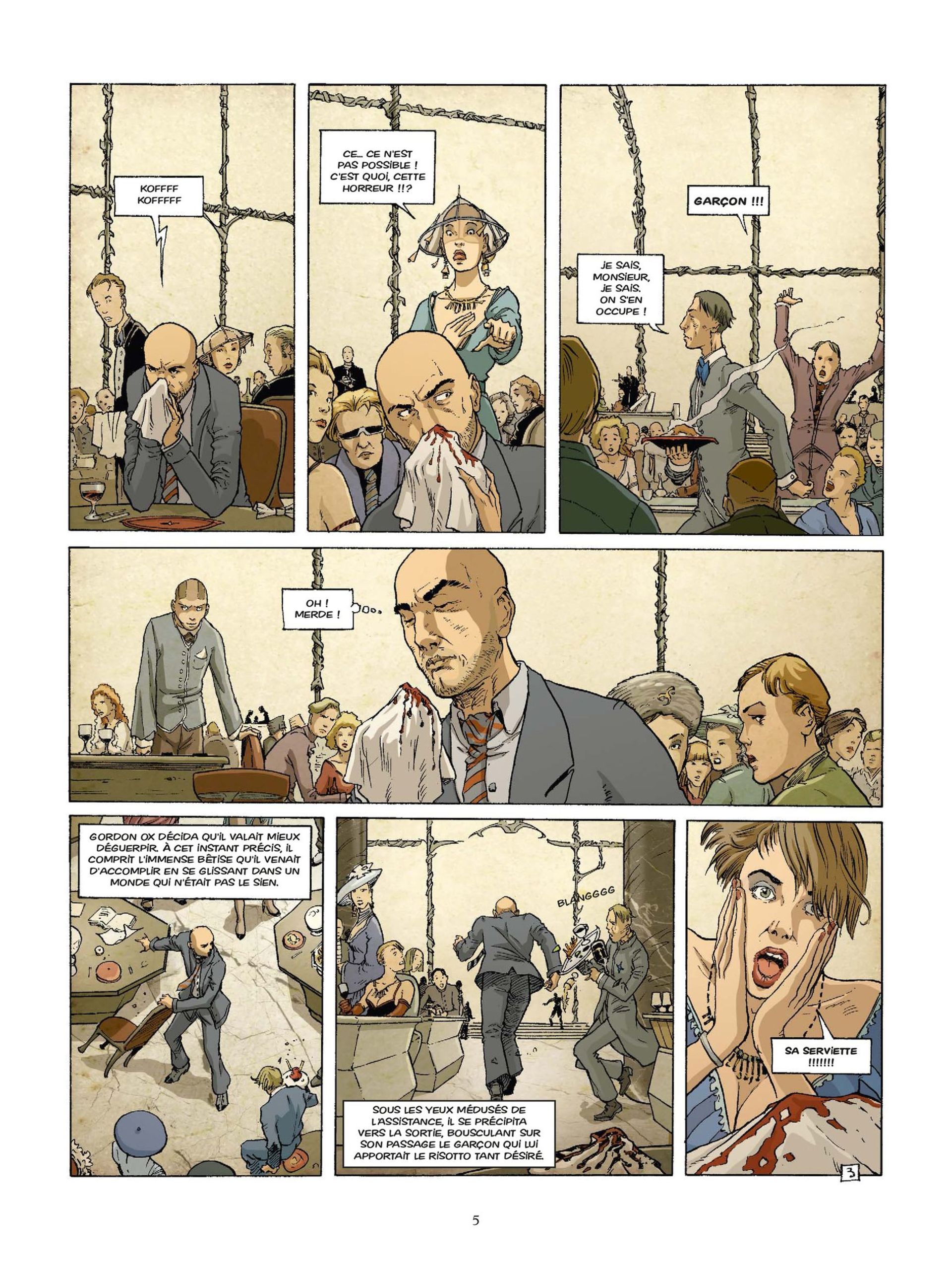 C’est un vendredi soir que Gordon Ox fut pris d’une envie irrésistible de déguster un délicieux risotto dans un restaurant interdit à ceux de sa condition, les « collapses ». Il a d’abord été regardé de travers, imparfait au milieu de ces gens beaux, jeunes, impeccables. Réussissant à se faire oublier, il faillit réussir à savourer son plat, jusqu’au moment où il commit un acte inconcevable : Gordon Ox toussa. Or, dans les sphères où il a osé s’introduire, tout un chacun dispose bien entendu de supers pouvoirs, et la maladie a été depuis longtemps éradiquée ! Déclenchant la panique, Ox est forcé à fuir. Un agent spécial est mis sur sa piste : c’est la belle et froide Dakota...