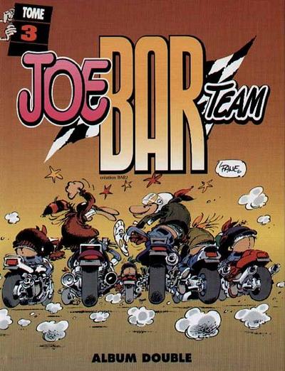 Ils sont 7 cinglés à moto prêts à tout. Champions des tours chronométrés du pâté de maison, ces rois de l'arsouille cumulent les gamelles. Quand ils ne sont pas sur leurs motos, on les retrouve au comptoir du Joe Bar en train de commenter leurs derniers exploits avec une mauvaise foi de rigueur ... Cette BD qui pétarade, sent l'huile bouillie et le radar cramé, est plus qu'un succès phénoménal. Tous les motards en herbe se sont réveillés à la lecture de ces gags pour, à l'unisson, chanter la gloire du Joe Bar Team... refrain repris en coeur par les lecteurs de BD du monde entier.