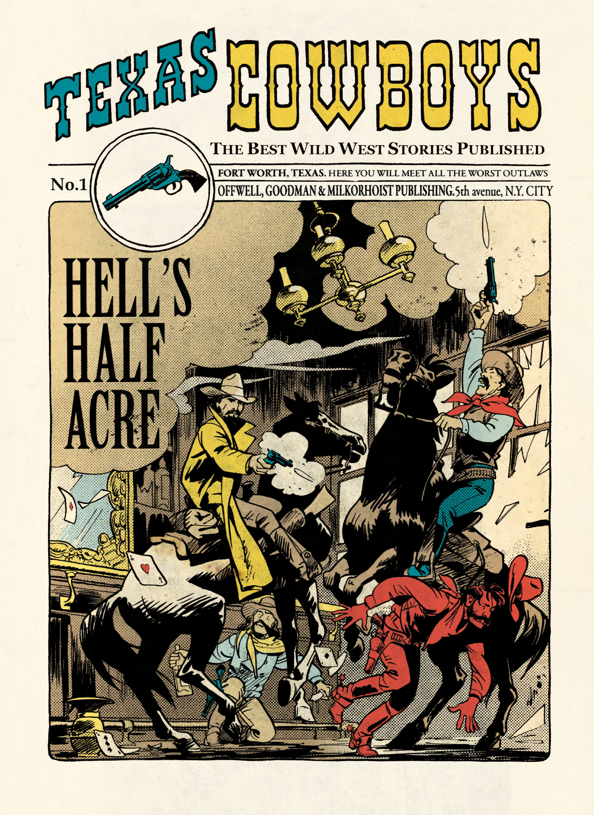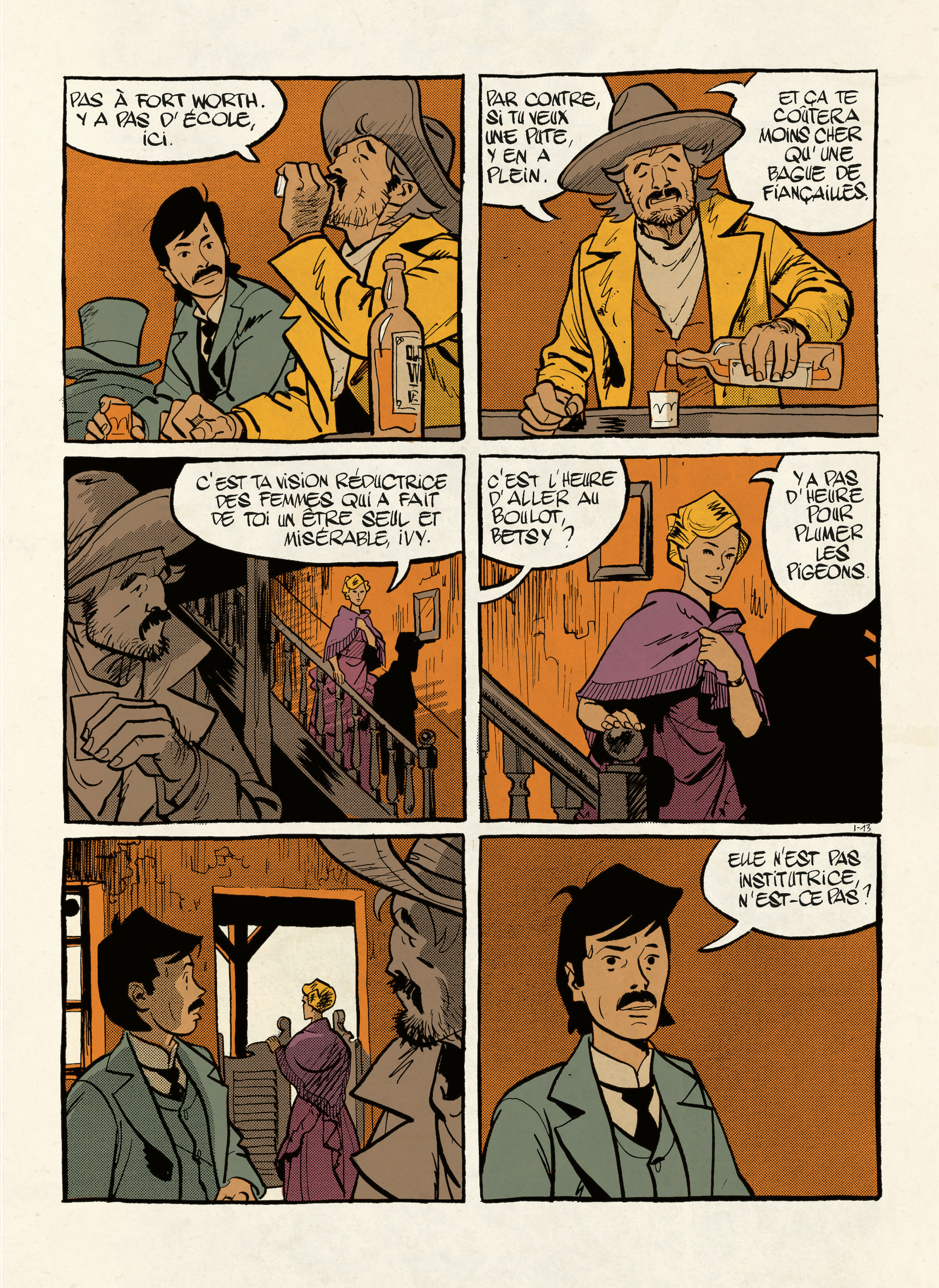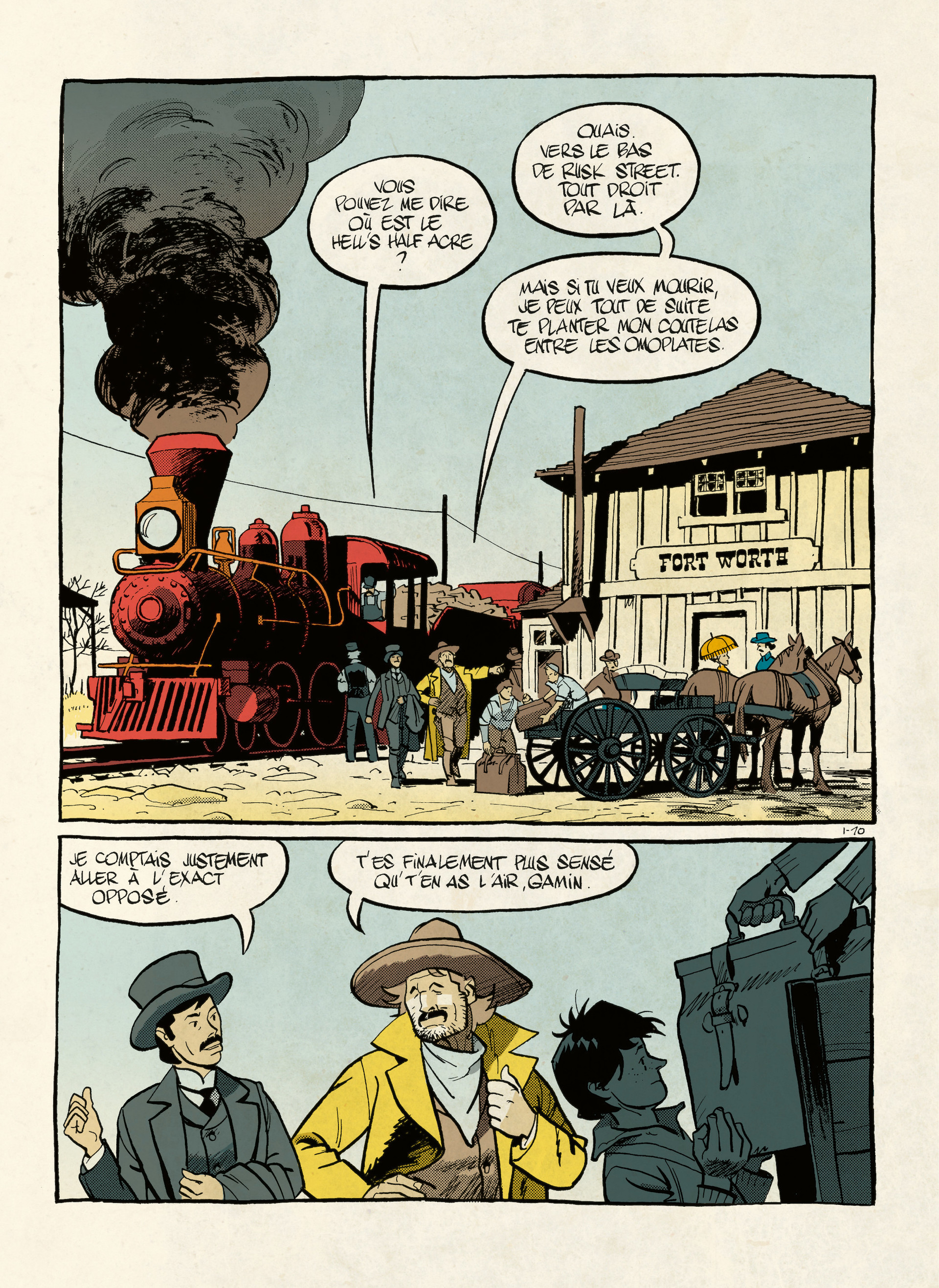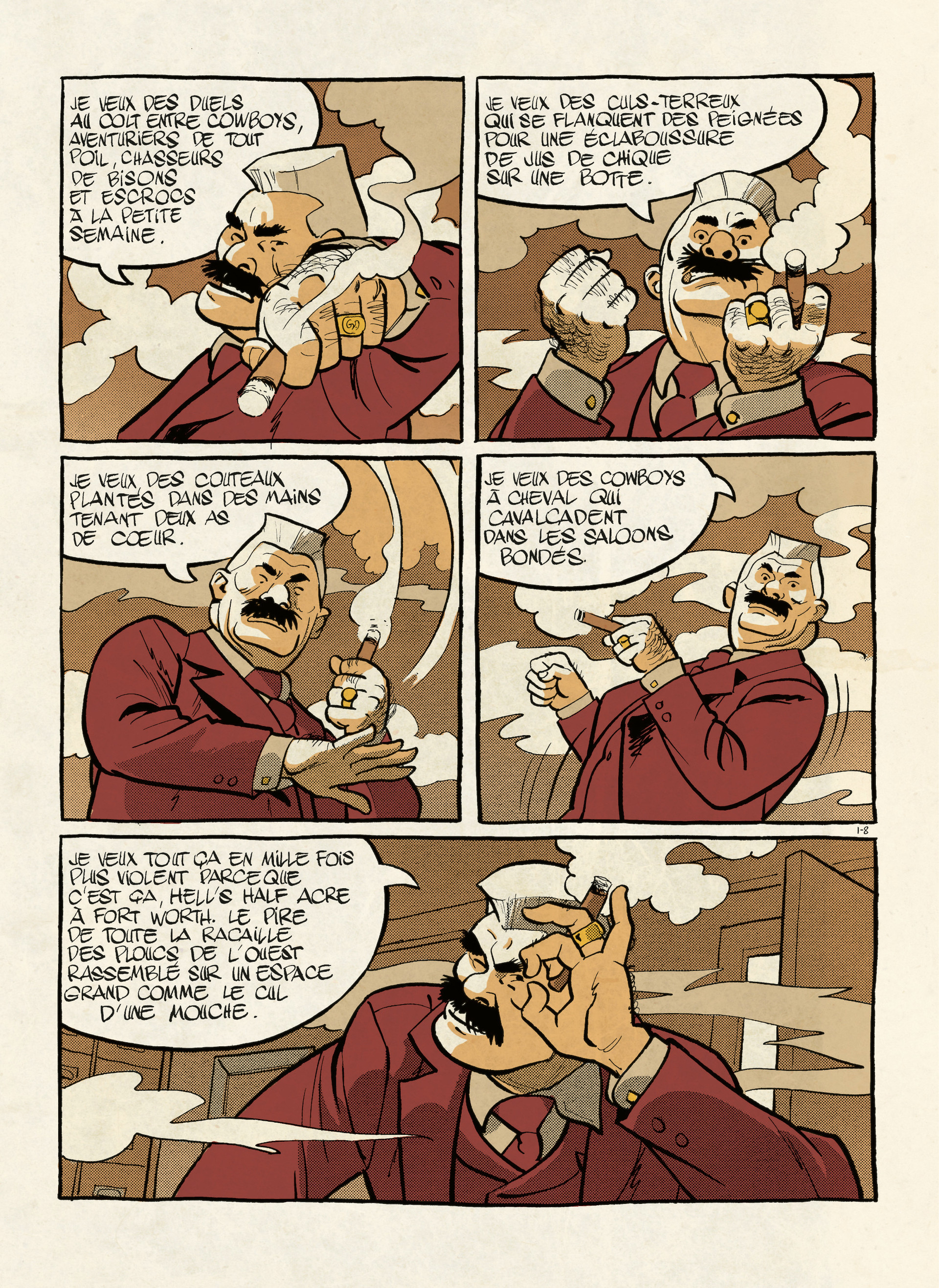 7Cela ressemble aux vielles BD de cowboys de notre enfance, style Kit Carson, au format agenda souple de poche, plein de coups de feu, de villes du far West et de bandits très méchants que le bon finissait toujours par vaincre. Nous suivons les aventures de Harvey Drink Water (au nom un rien décalé dans ce monde de soiffards) dans le lieu où il va faire son métier de journaliste remplaçant : un qu...